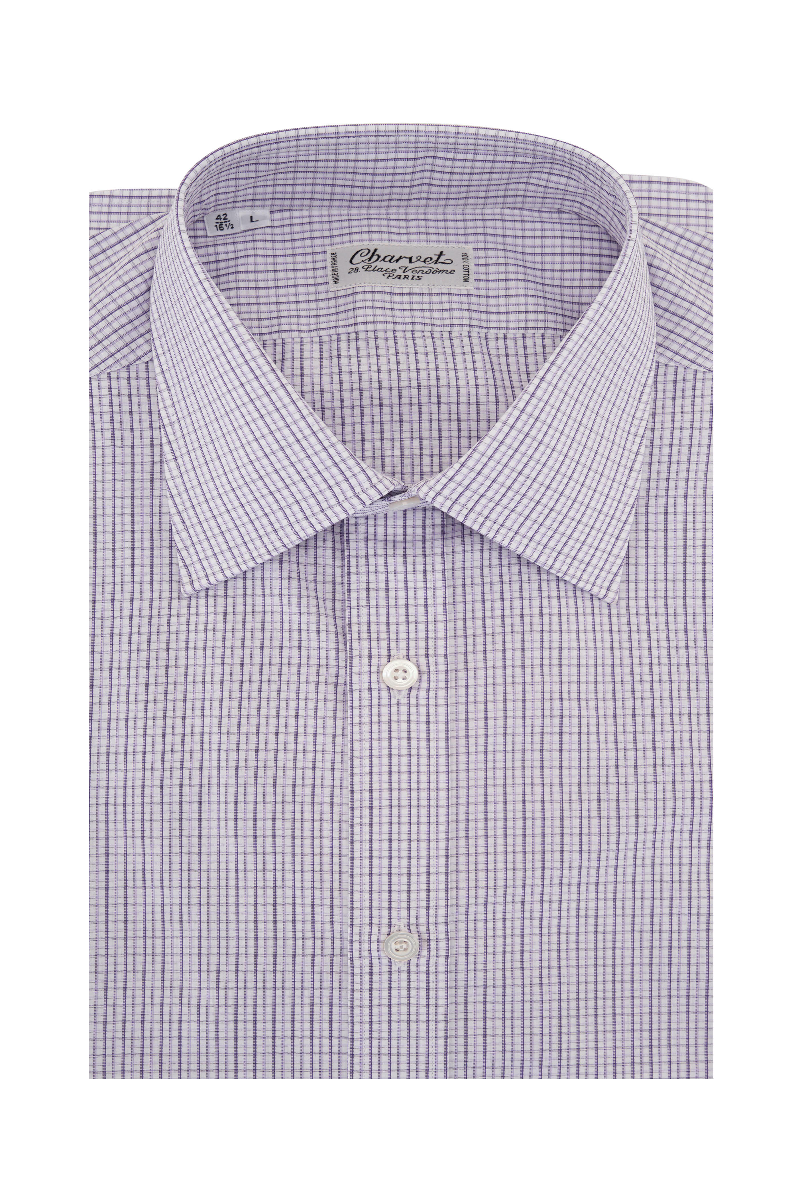 Spread collar. Front button placket. Single button cuffs. Made in Italy. 100% cotton. Machine wash.
