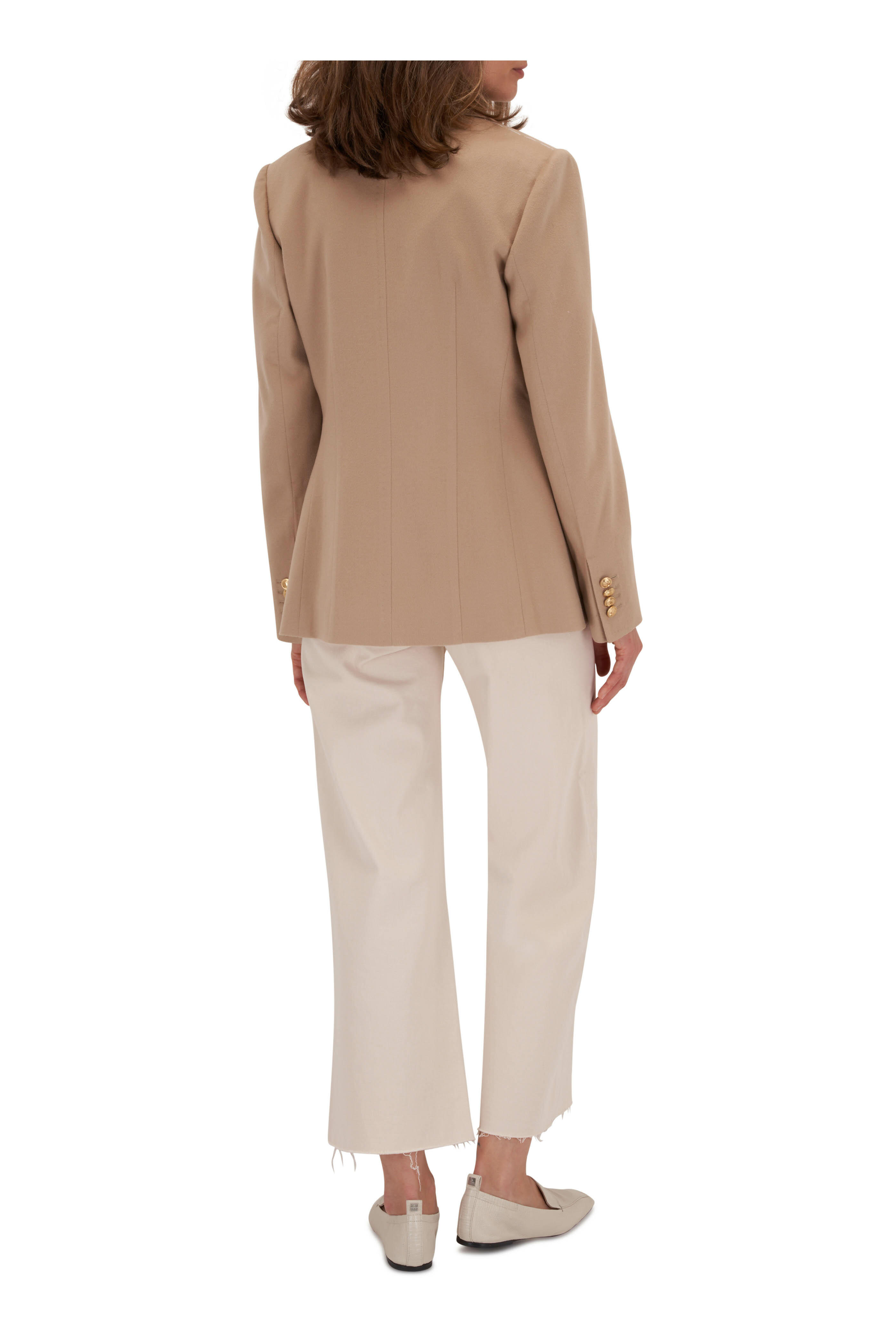 - Zip fly; button closure