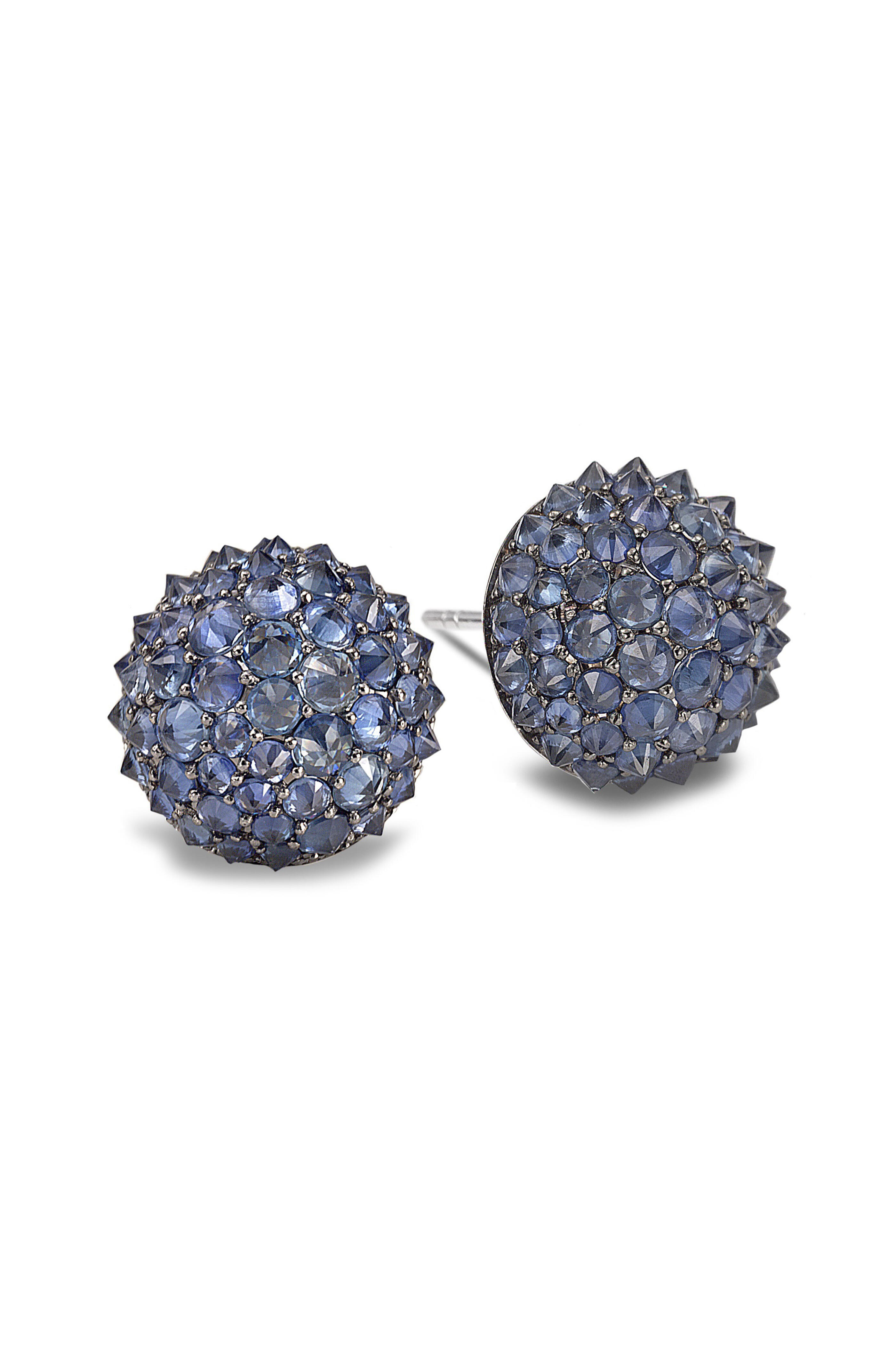 7.51 ct blue sapphires. 18k white gold. Black rhodium. 15mm.