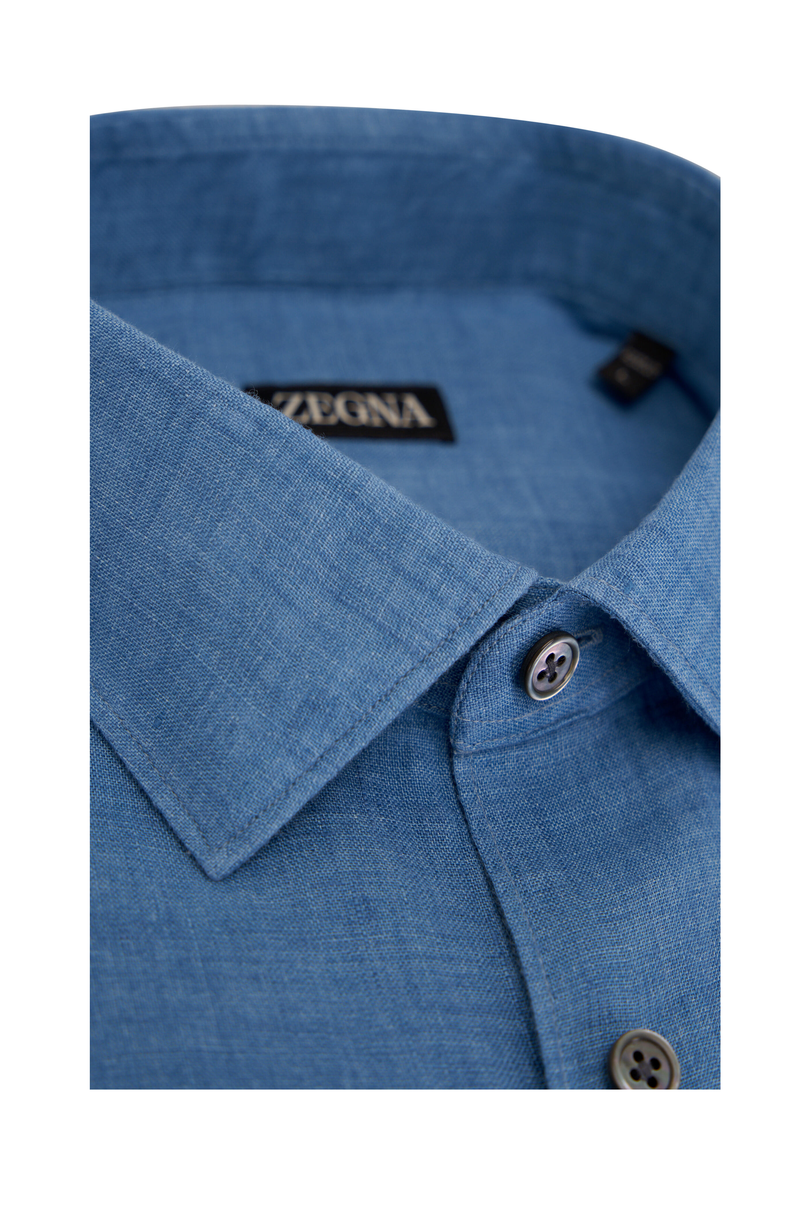 Spread collar. French placket. Single button barrel cuffs. Made in Italy. 100% linen. Machine wash.