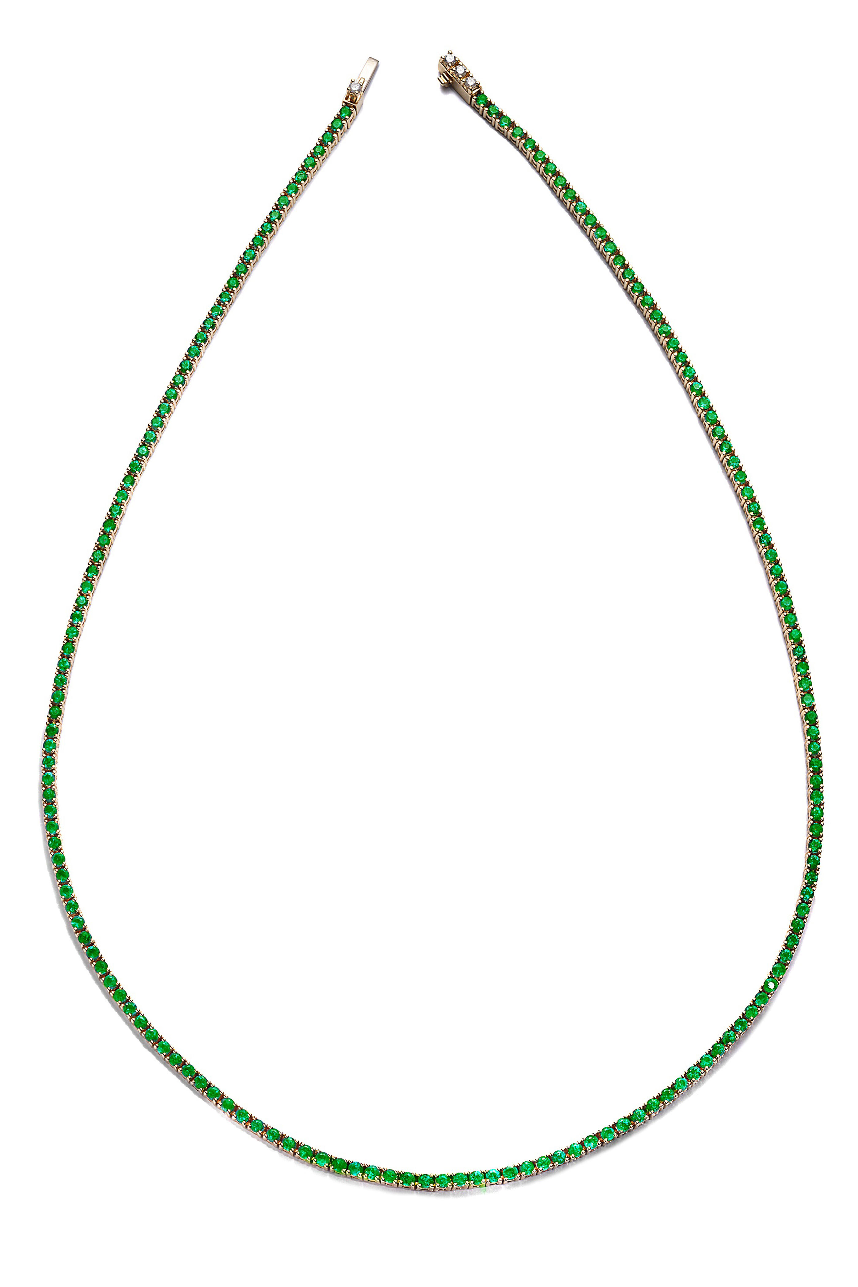 18k Yellow gold. 4.40 ct Emerald. .09 ct Diamond. 16" length. designer will customize length upon request.