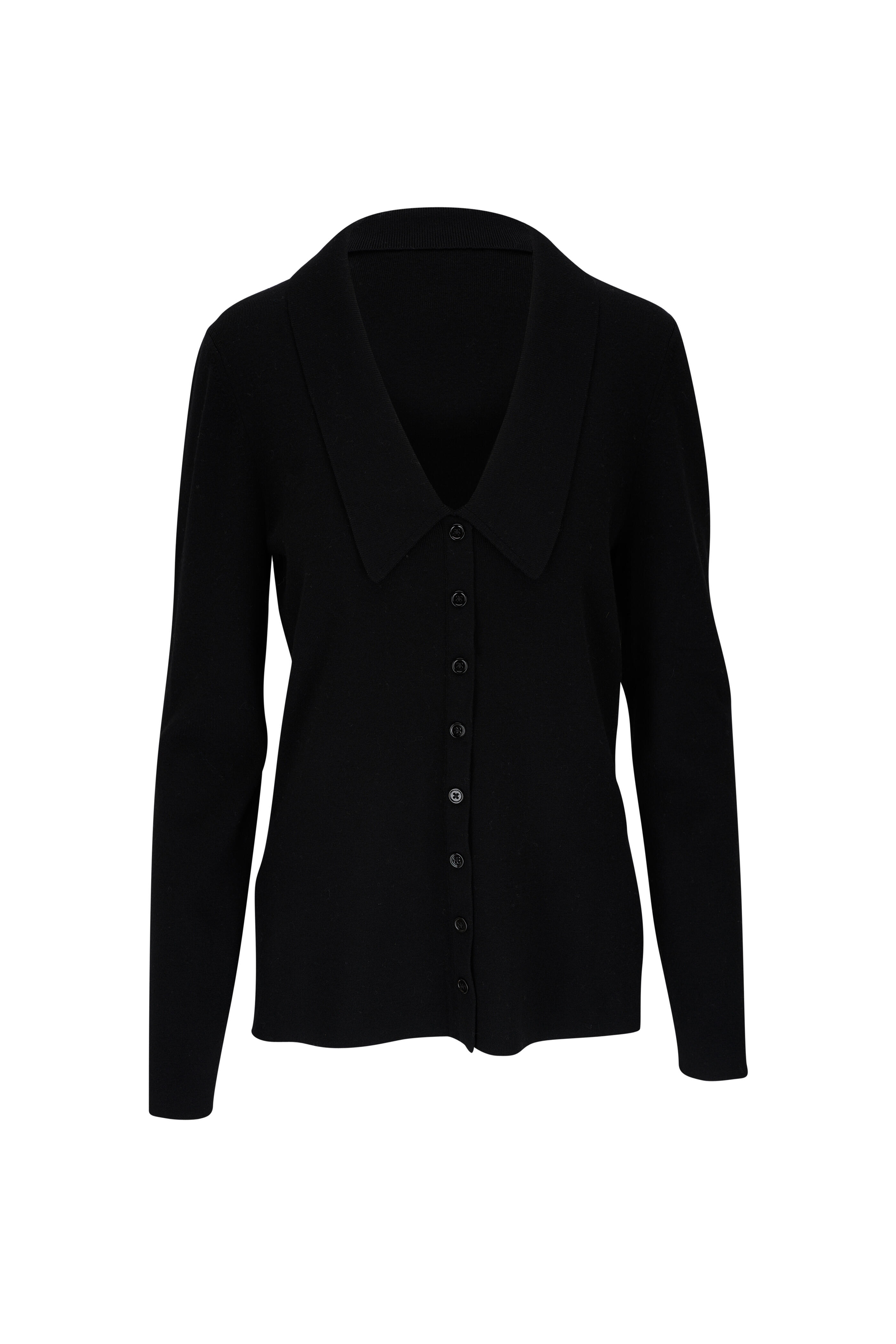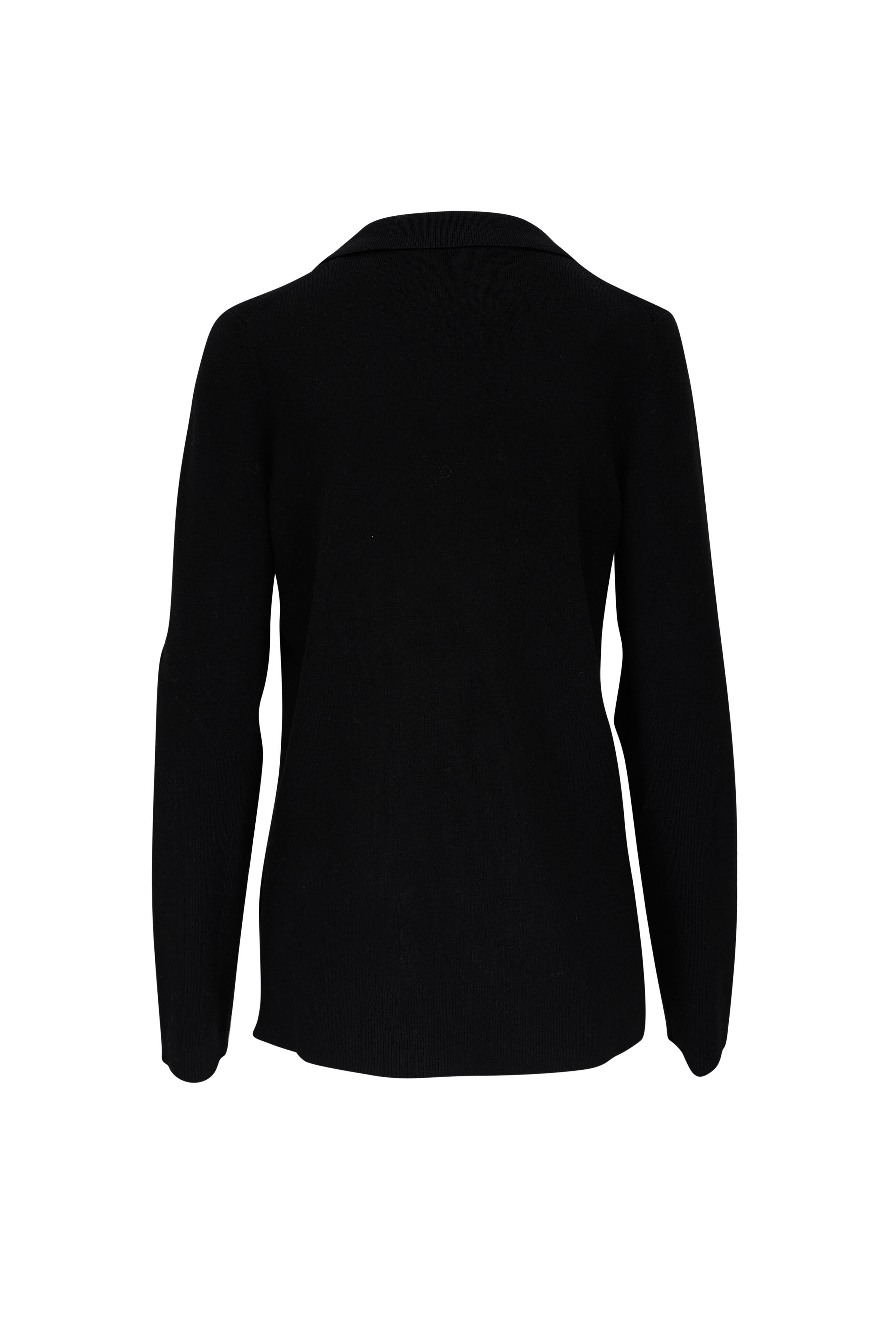 Merino Elegance Black Wool Collared Pullover