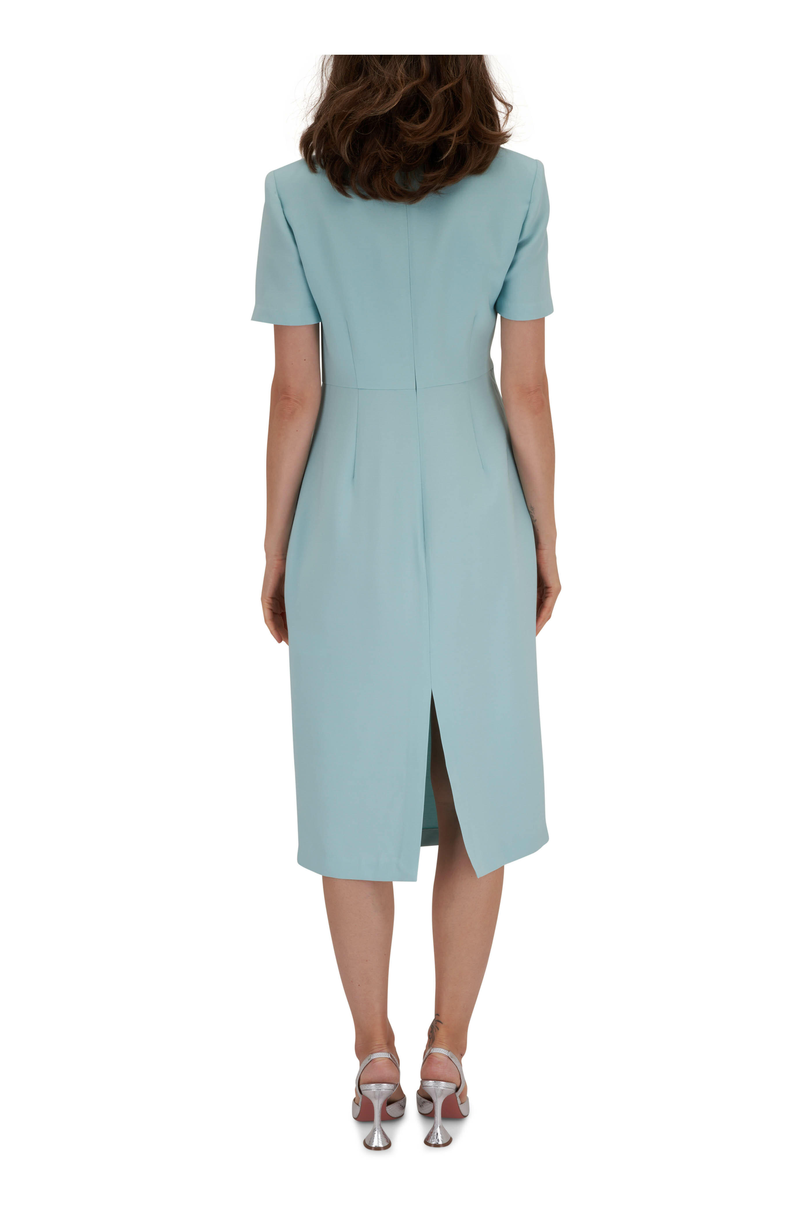 Light Blue Silk & Wool Short Sleeve Midi Dress