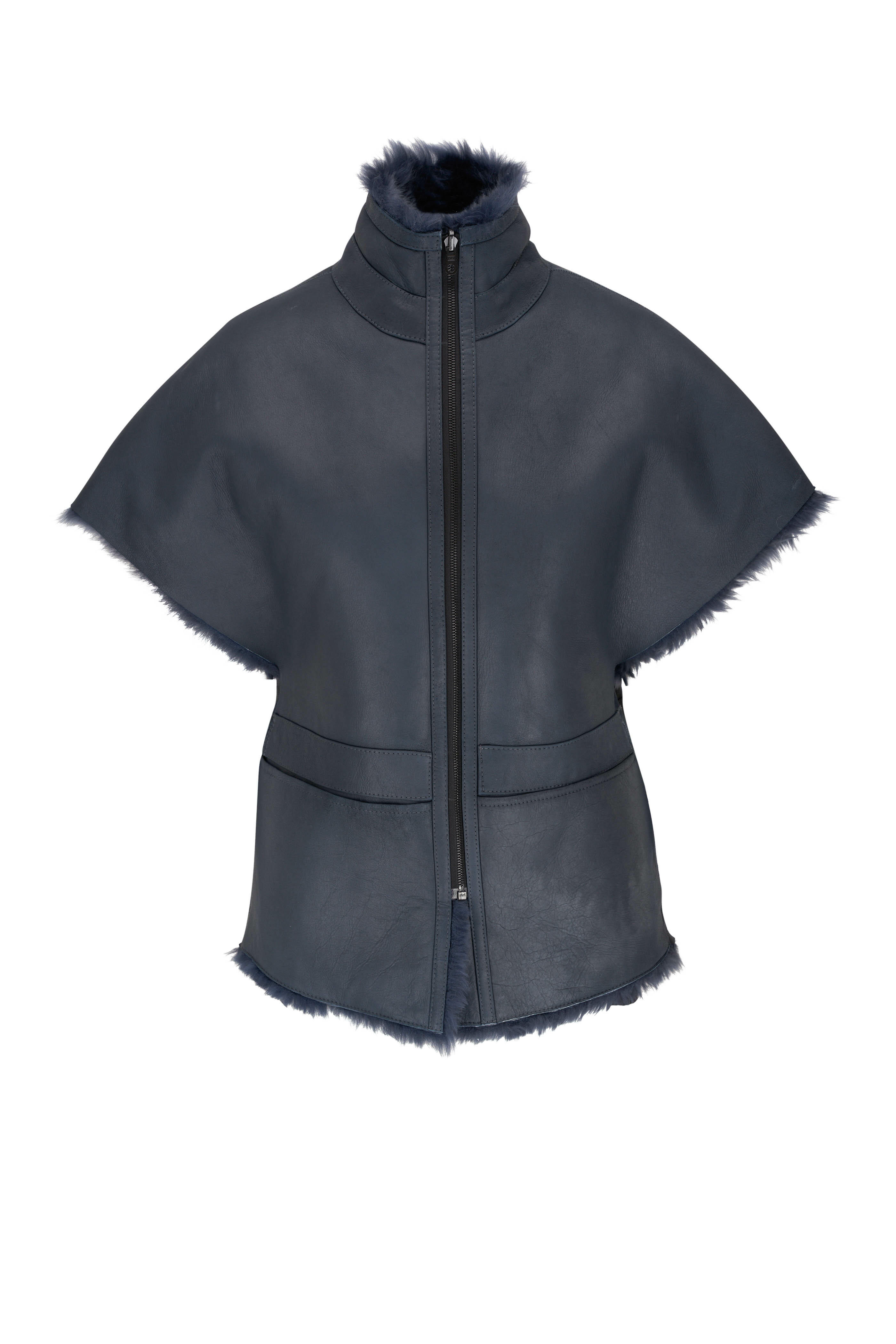 Specialist clean. Stand collar. Concealed front zip. Fastening at sides and neckline. Concealed side pockets. Straight hem. Made in the USA. 100% lambskin.