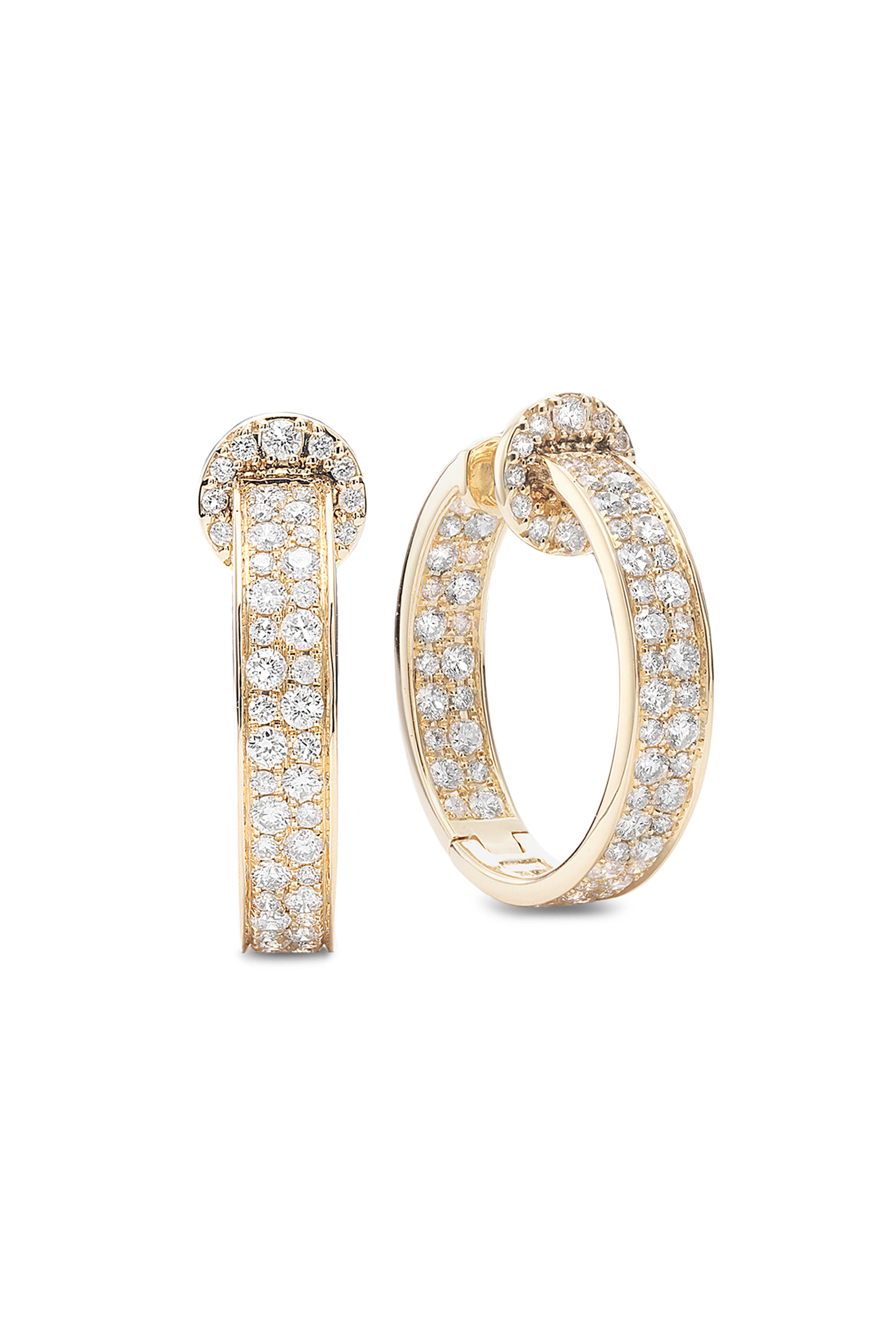 18K Yellow Gold. Brilliant Round Cut White Diamonds: 2.25tcw. Measures: 0.85" diameter.