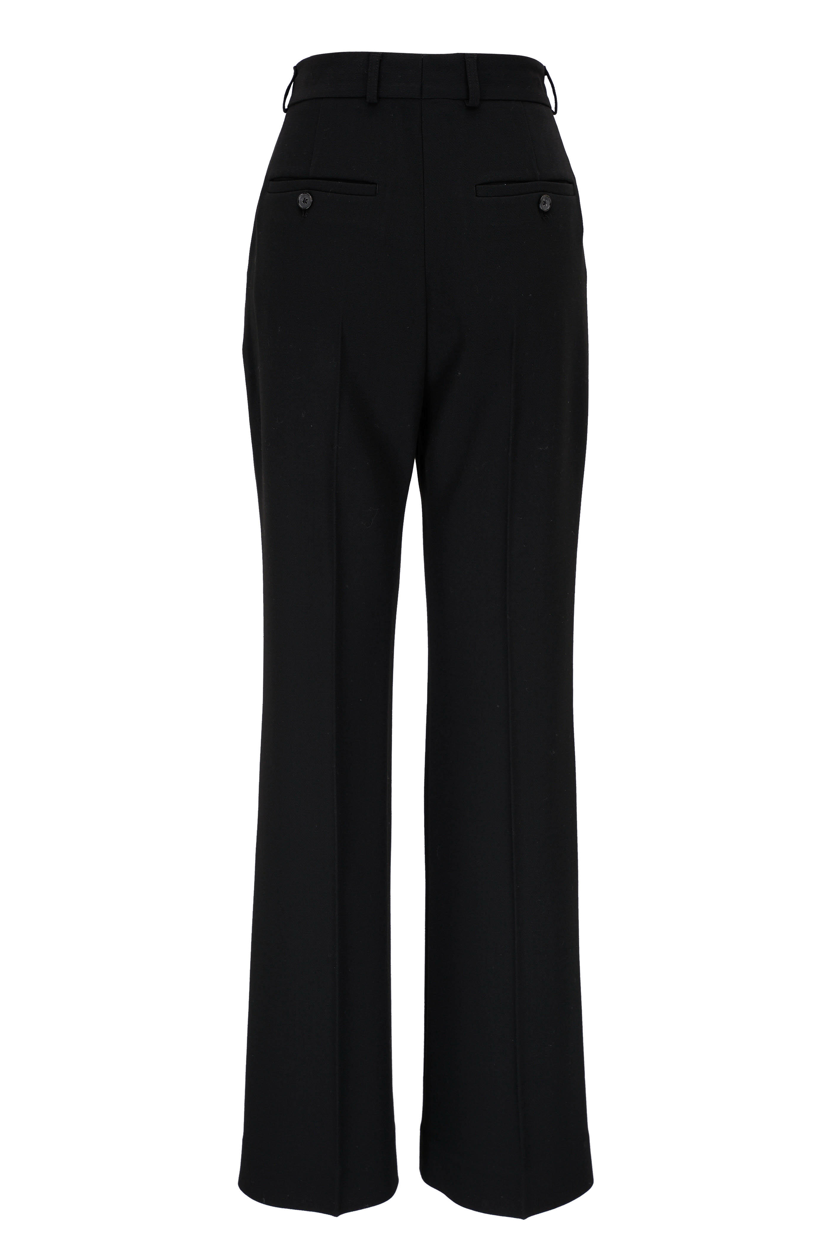 Zip fly with double hook-and-eye closure. Banded waistband; Belt loops. Side slash pockets; Back welt button pockets. Imported. 70% viscose, 30% wool. Dry clean.