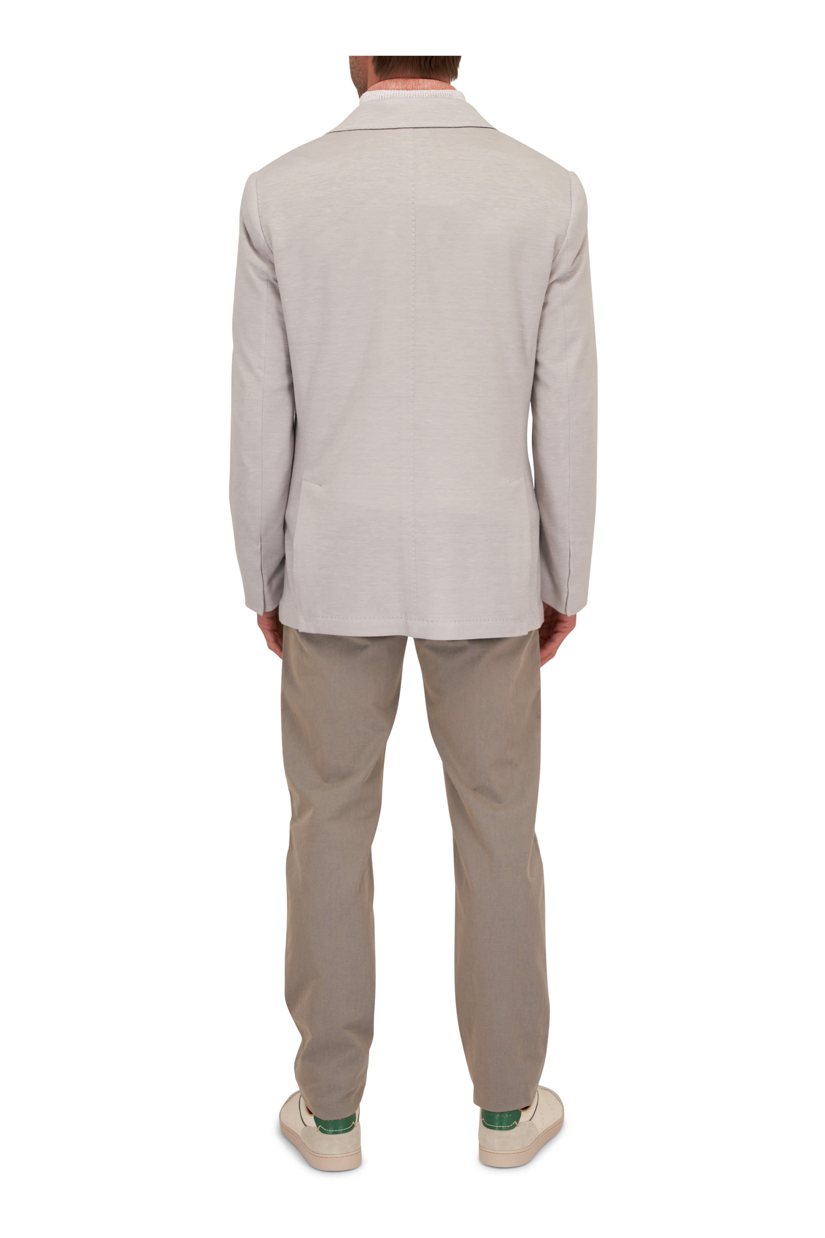 Zip fly; button closure. Banded waist; belt loops. Five pocket styling. Made in Italy. 58% cotton, 39% polyester, 3% elastane. Dry clean.