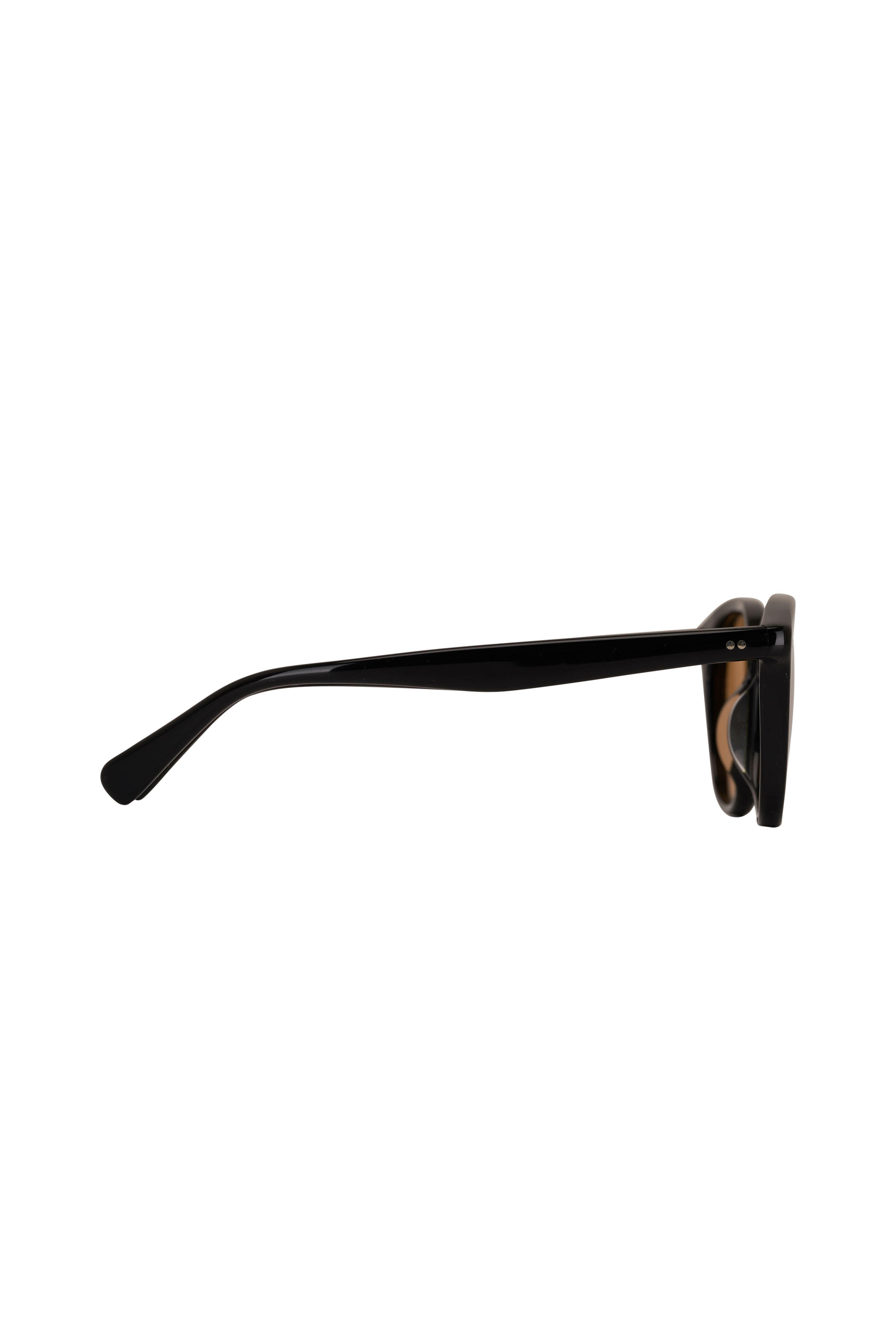 Frame material: acetate. Frame color: black. Frame shape: round frame. Lens type: glass. Lens color: yellow. Made in Italy. 100% UV protection.
