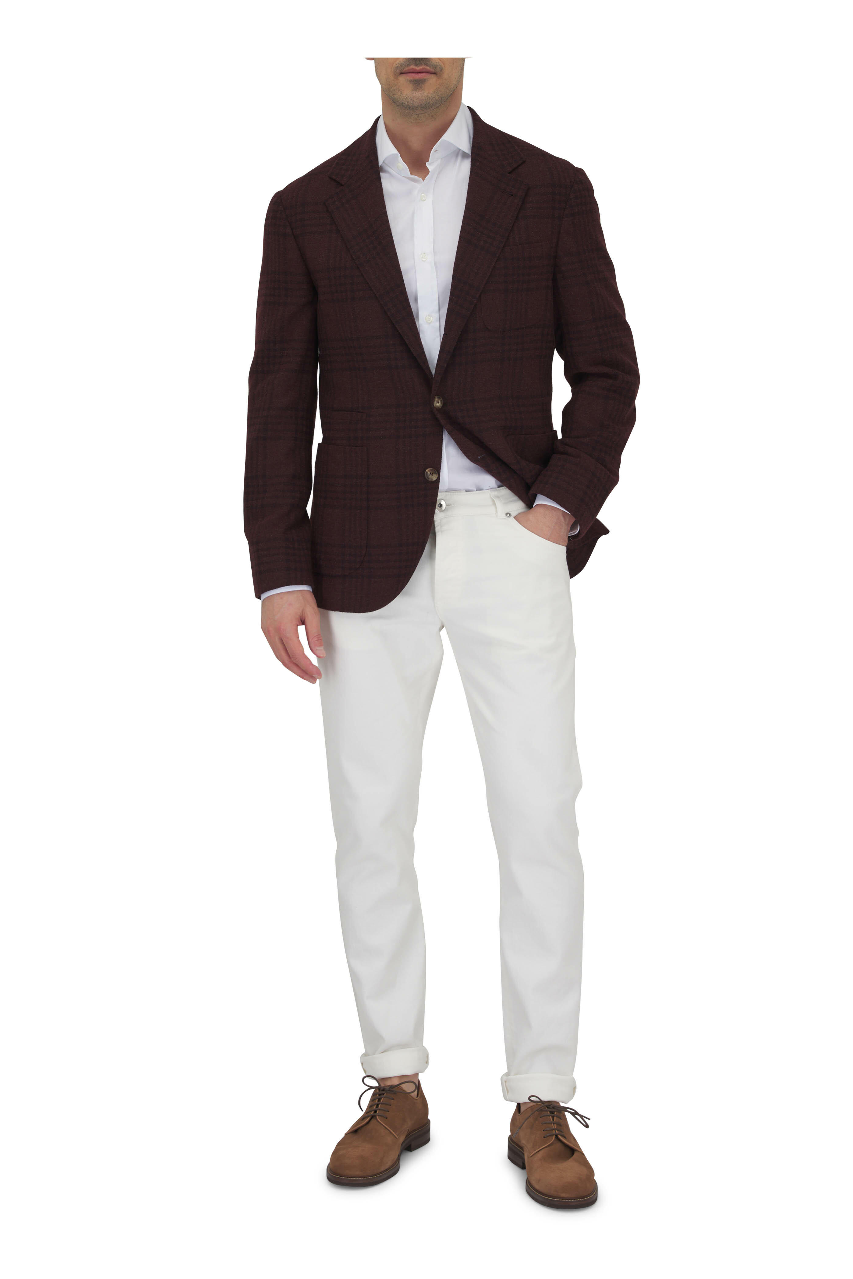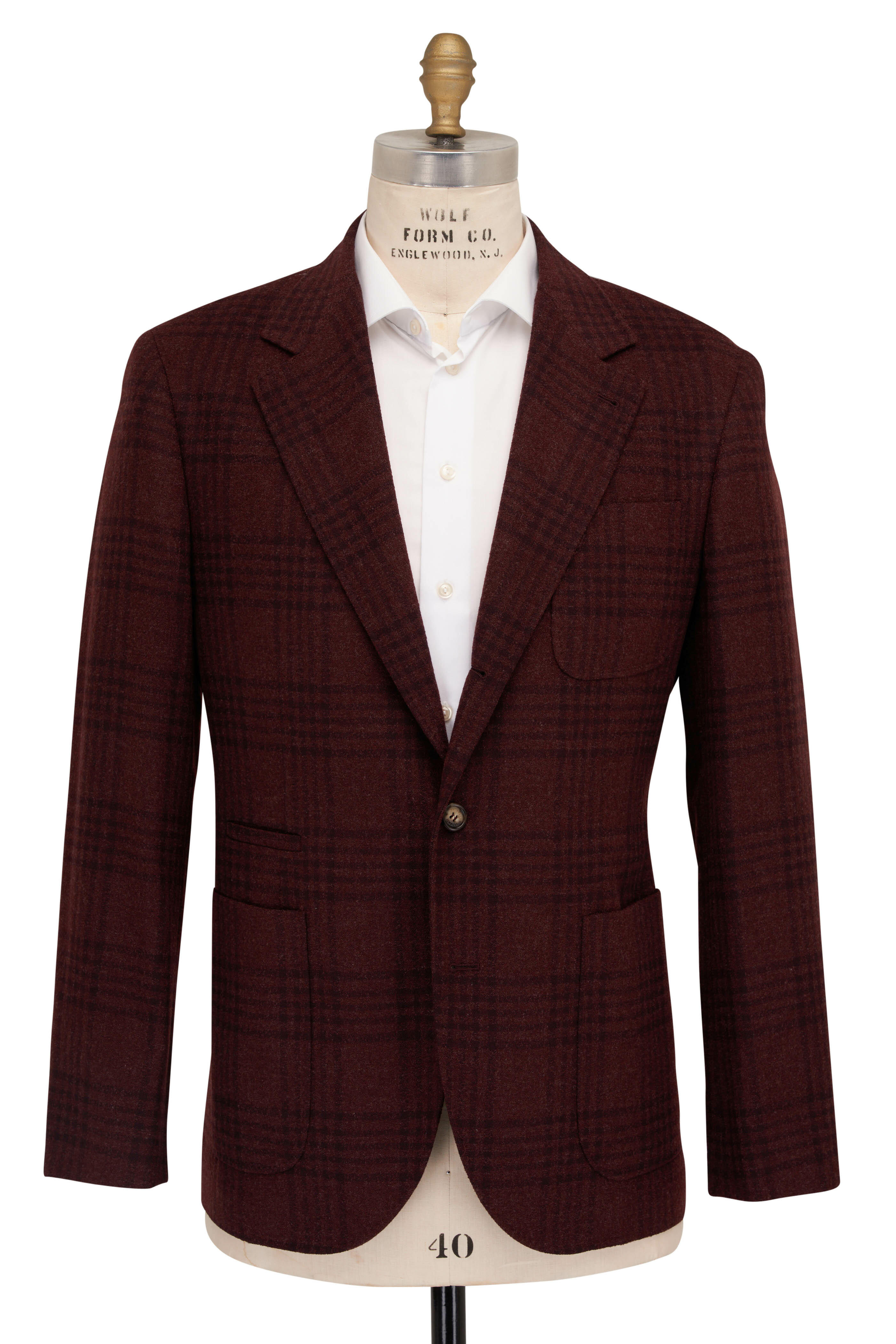 Burgundy Plaid Wool, Silk & Cashmere Sportcoat