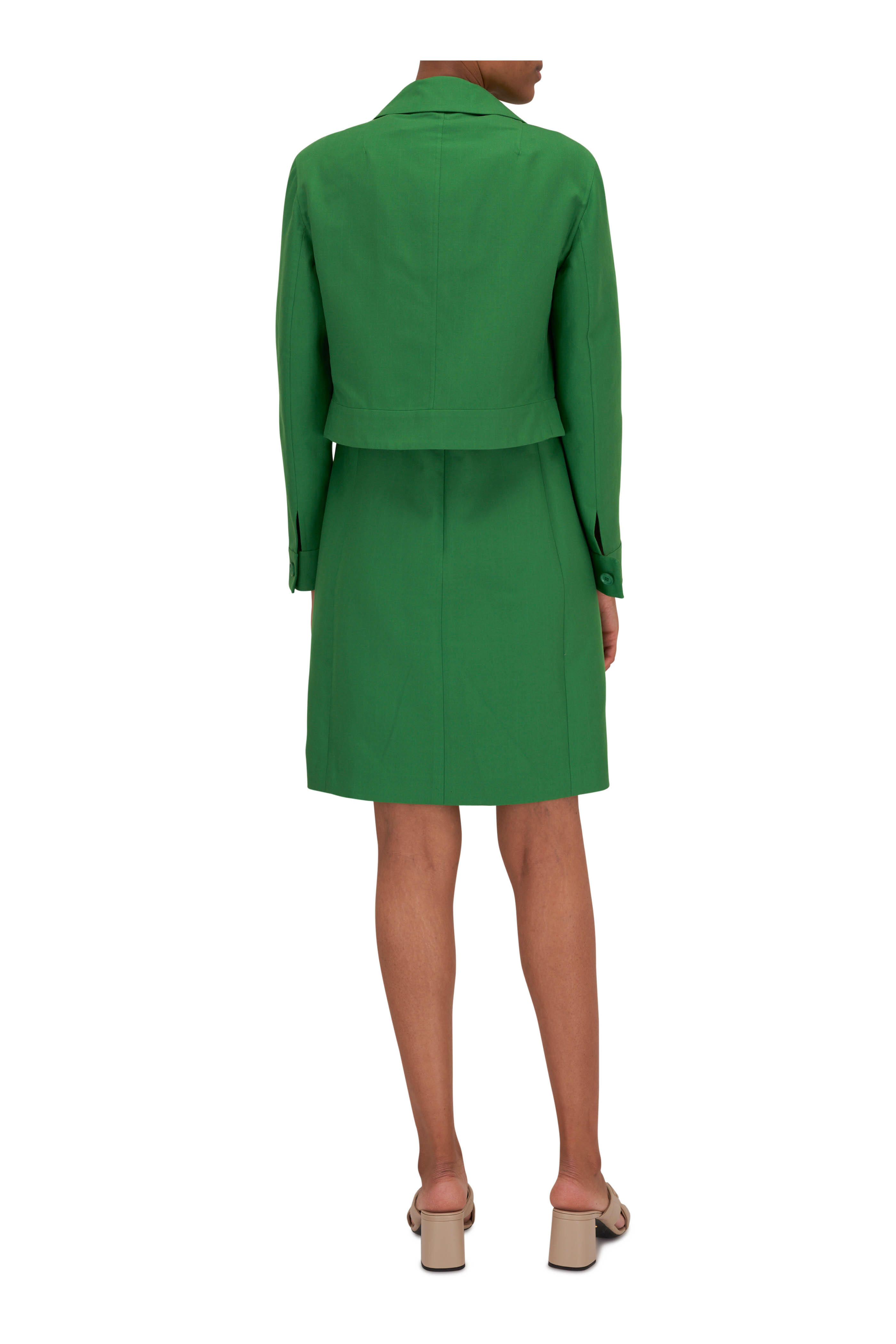 Jewel neckline. Concealed back zip. Made in Switzerland. A-line. 59% cotton, 39% silk, 2% polyamide; Fully lined. Dry clean.
