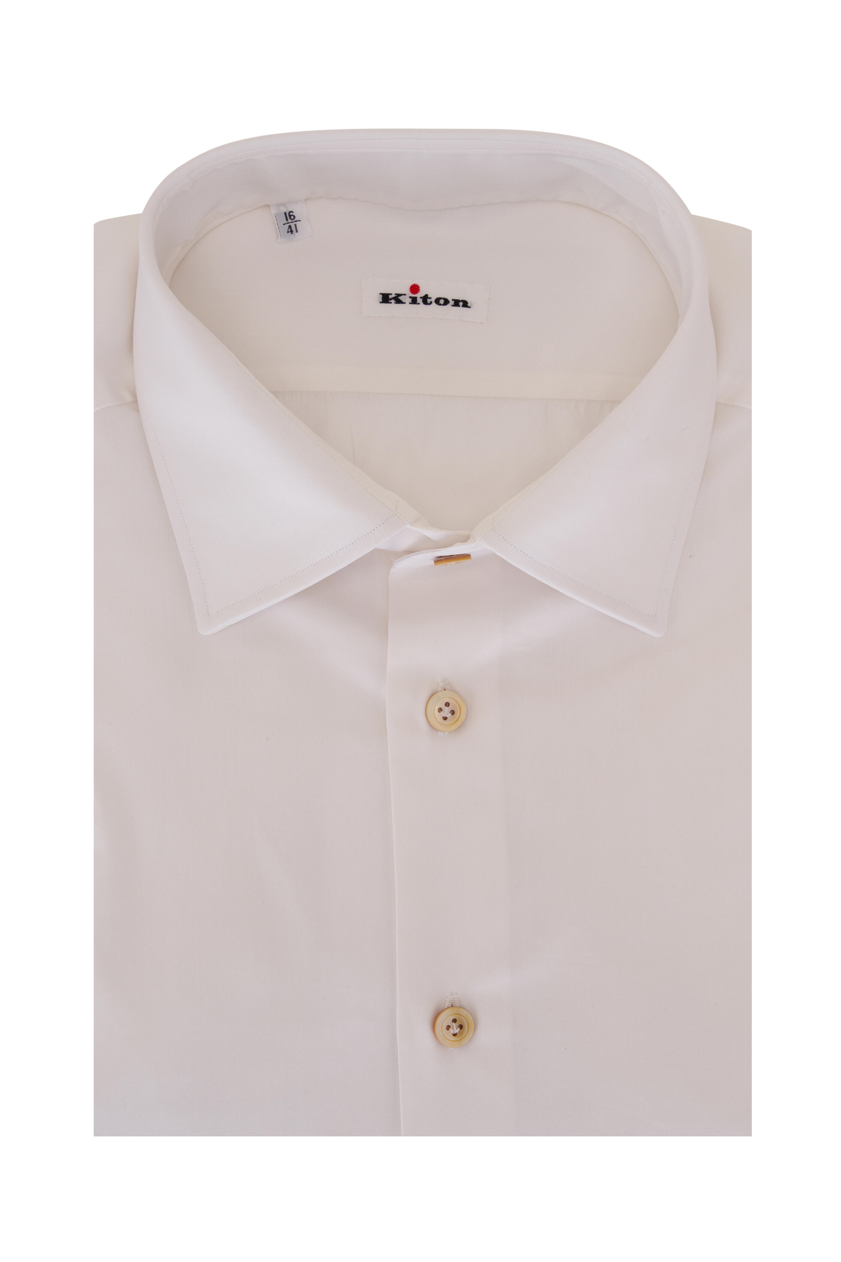 Spread collar. French placket. Single button barrel cuffs. Made in Italy. 100% cotton. Machine wash.
