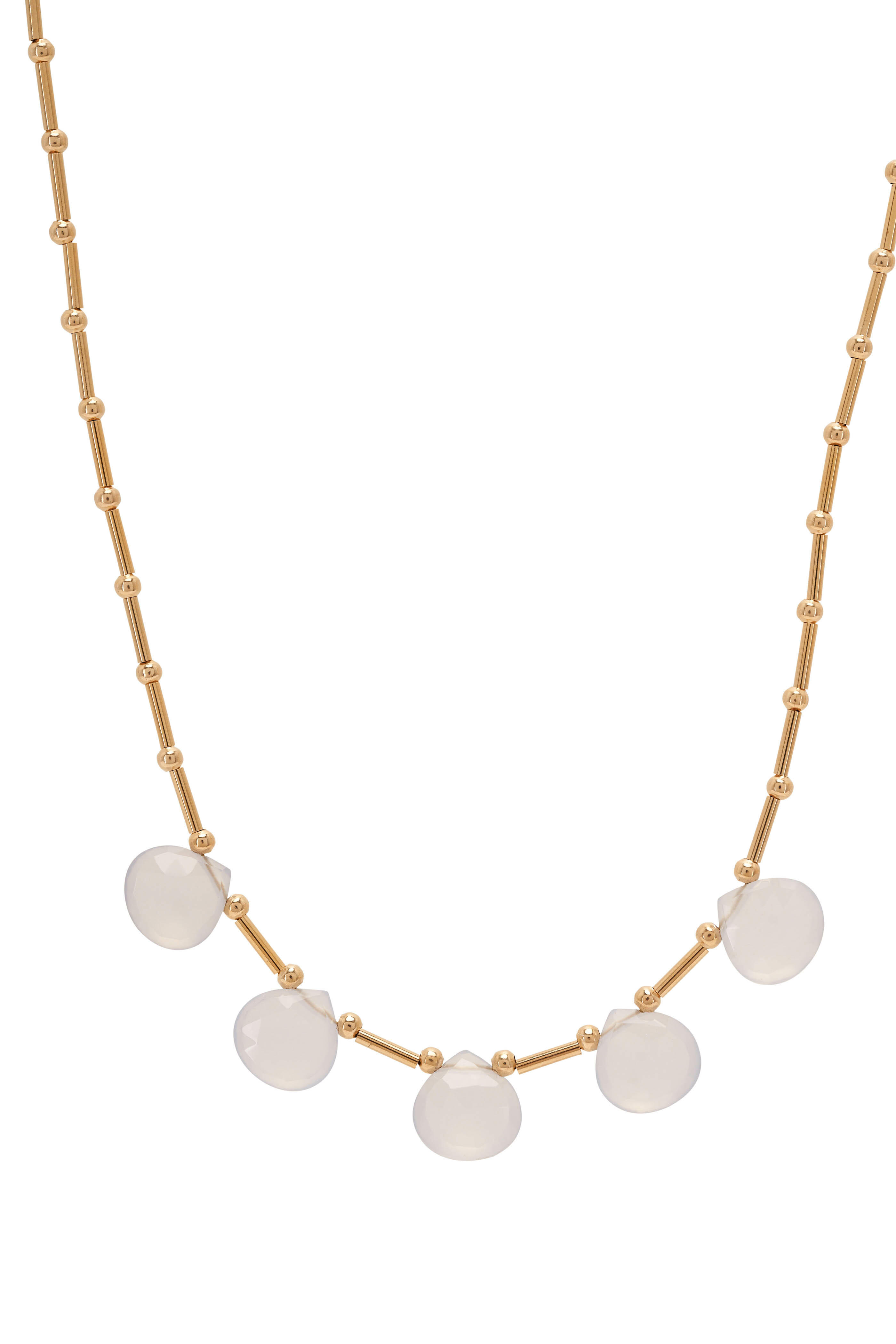 Petite Hydrangea Chalcedony Briolette Bar Necklace
