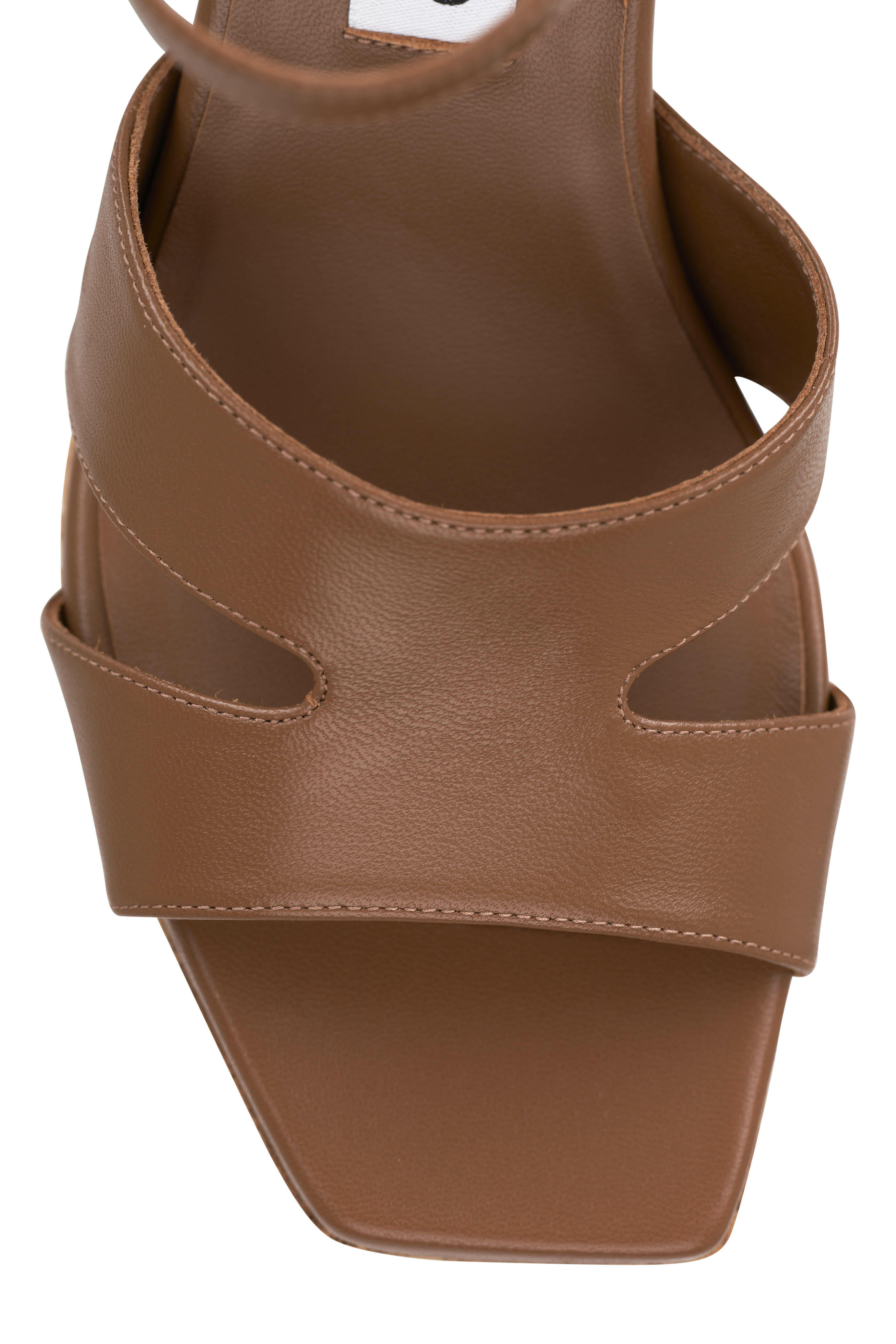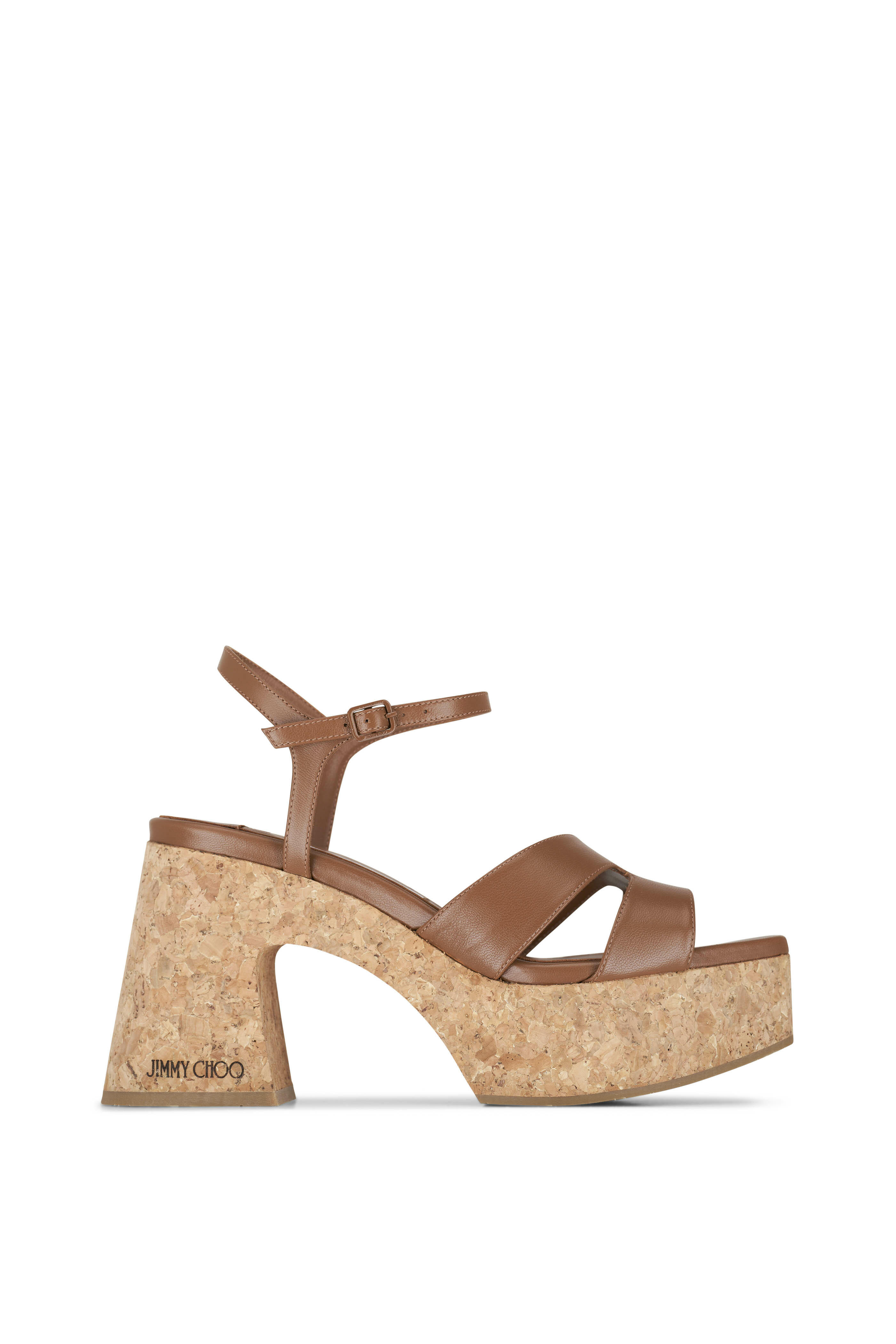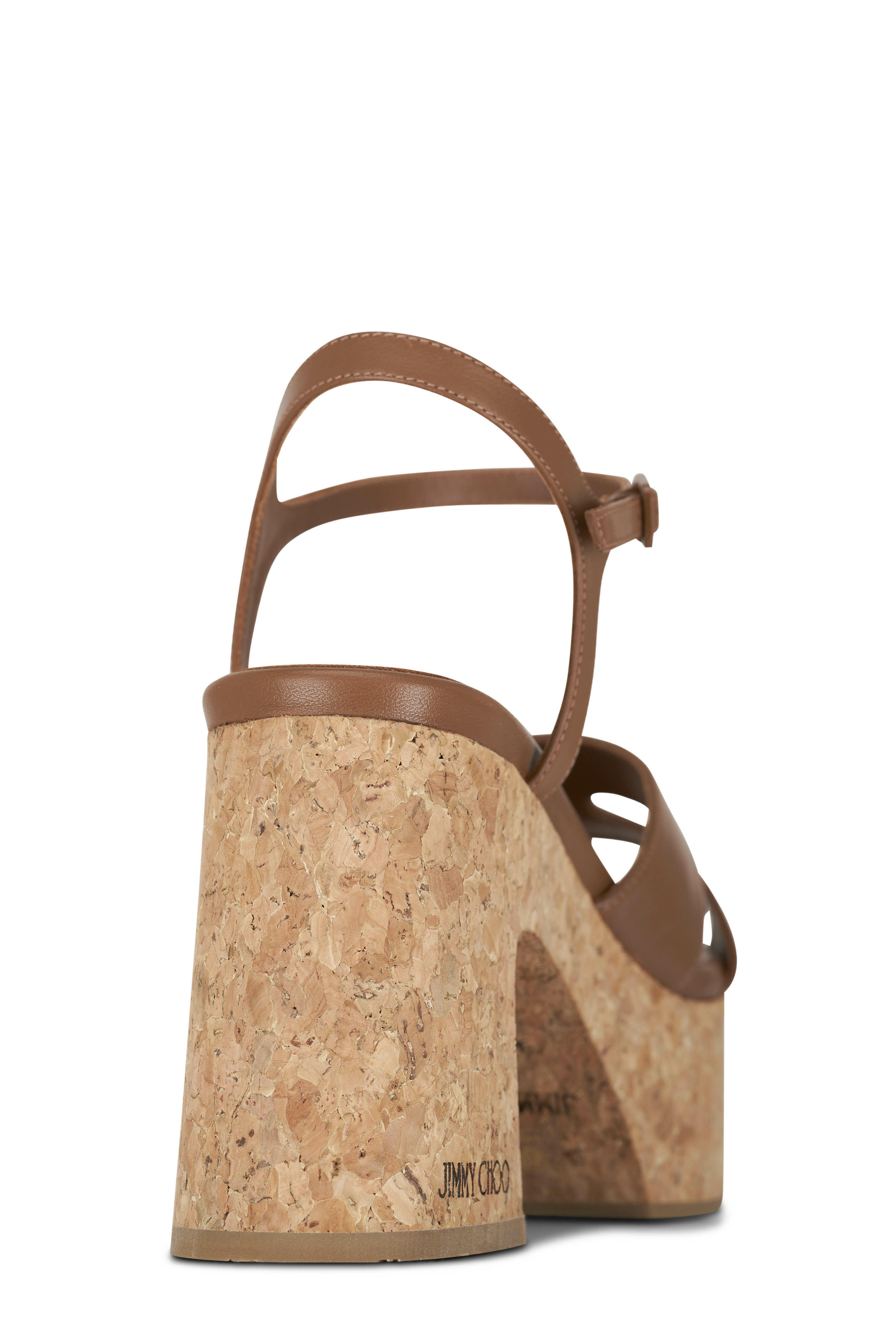 Leather upper. Tapered square toe. Ankle strap buckle. Strappy vamp. Leather insole. Cork flatform and block heel. Rubber sole. Made in Italy. Heel measurement: 95mm.