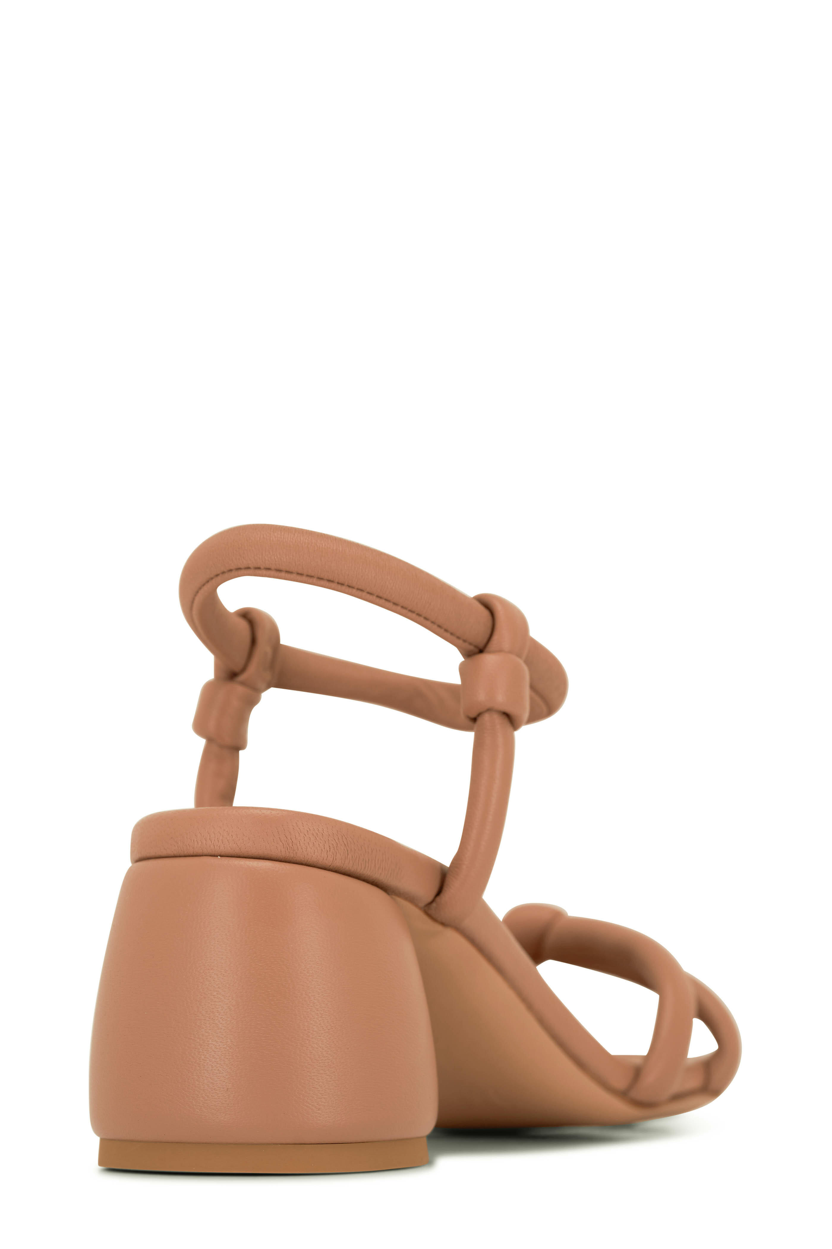 Leather upper. Round, open toe. Slip-on style. Ankle strap. Knot details. Leather lining and insole. Self-covered cylinder block heel. Leather sole. Made in Italy. Heel measurement: 60mm (approx. 2.3").