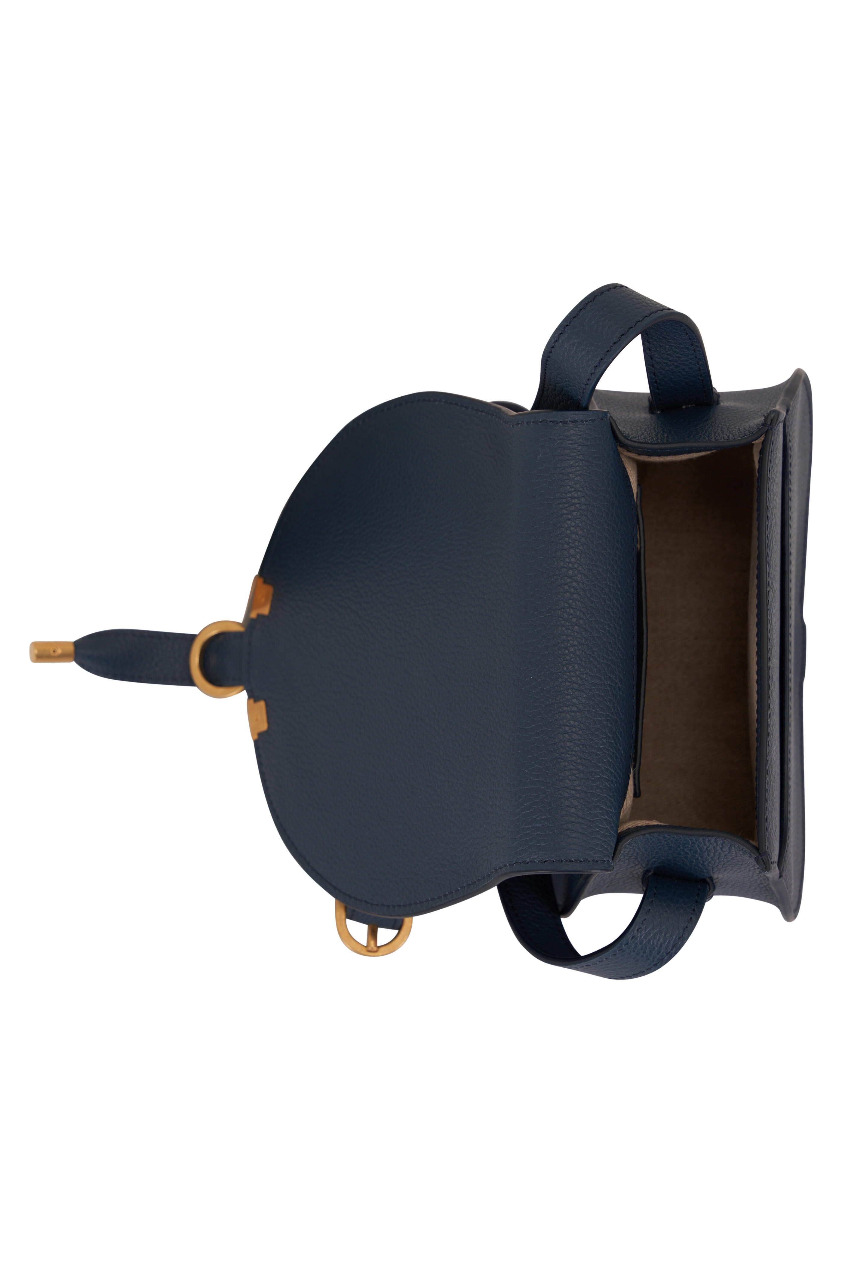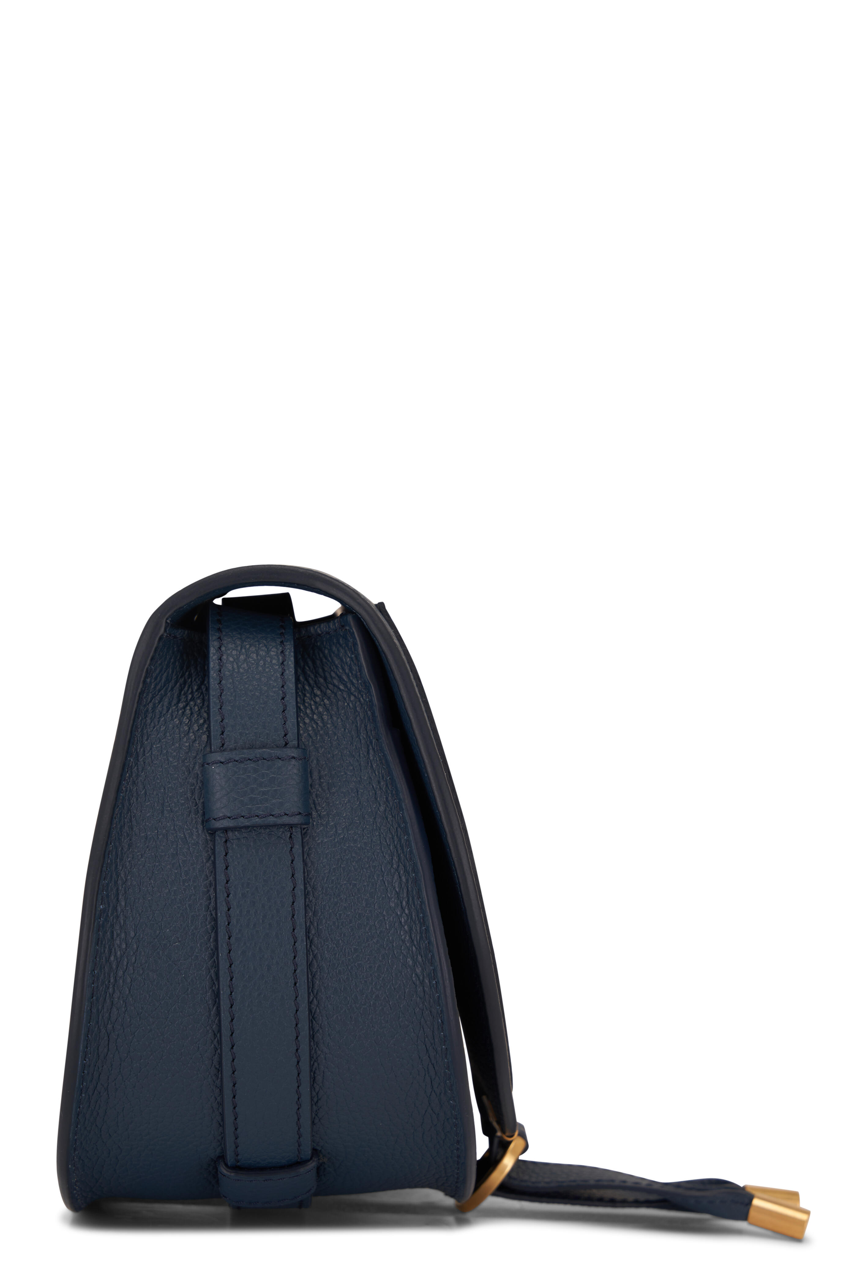 Grained calfskin leather. Adjustable flat leather shoulder strap. Flap front with loop closure; O-ring detail. One main compartment; interior card slot. External slip pocket under flap. Brass-toned hardware. Tonal top-stitching. Canvas lining. Made in Spain. Width: 7.1" (18 cm). Height: 6.7" (17 cm). Depth: 3.9" (10 cm). Min. strap drop: 19.7" (50 cm). Max. strap drop: 23.6” (60 cm).