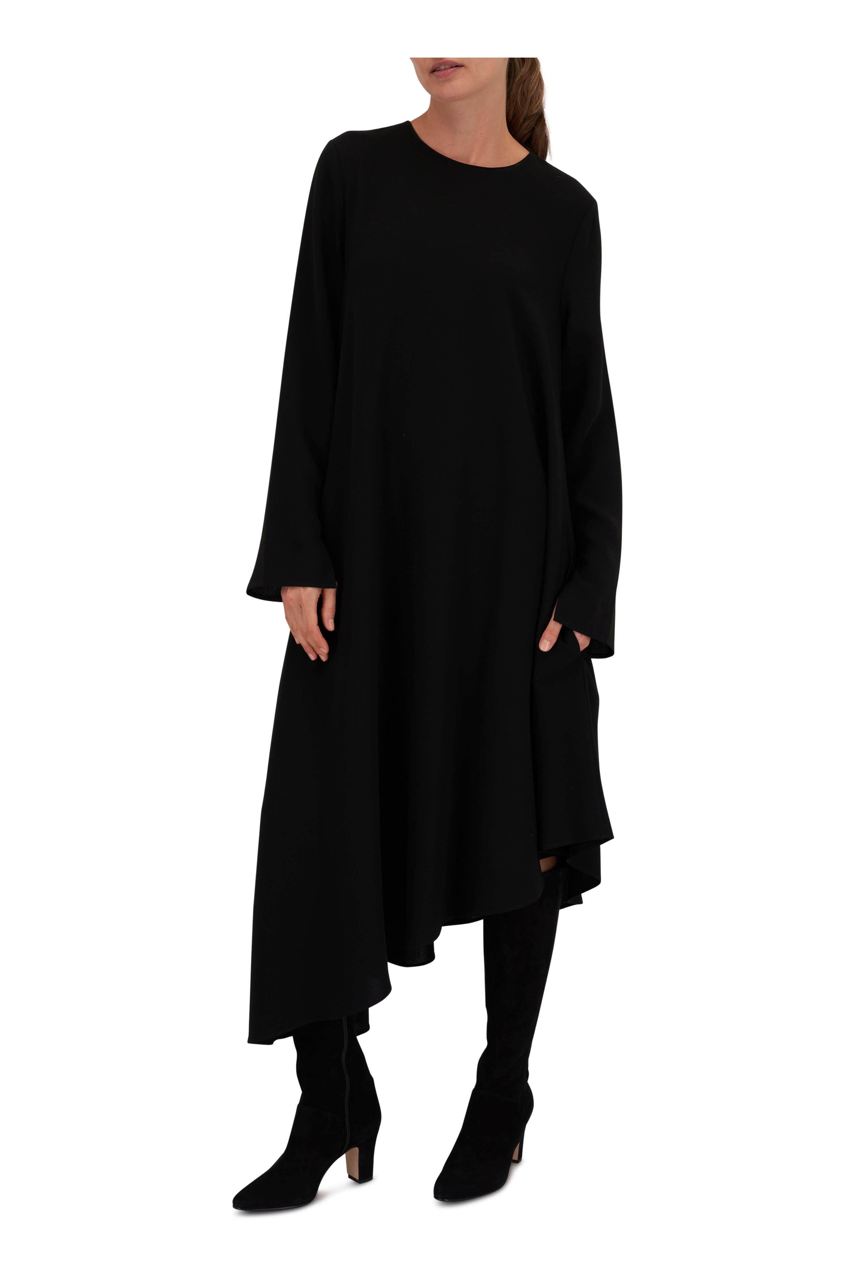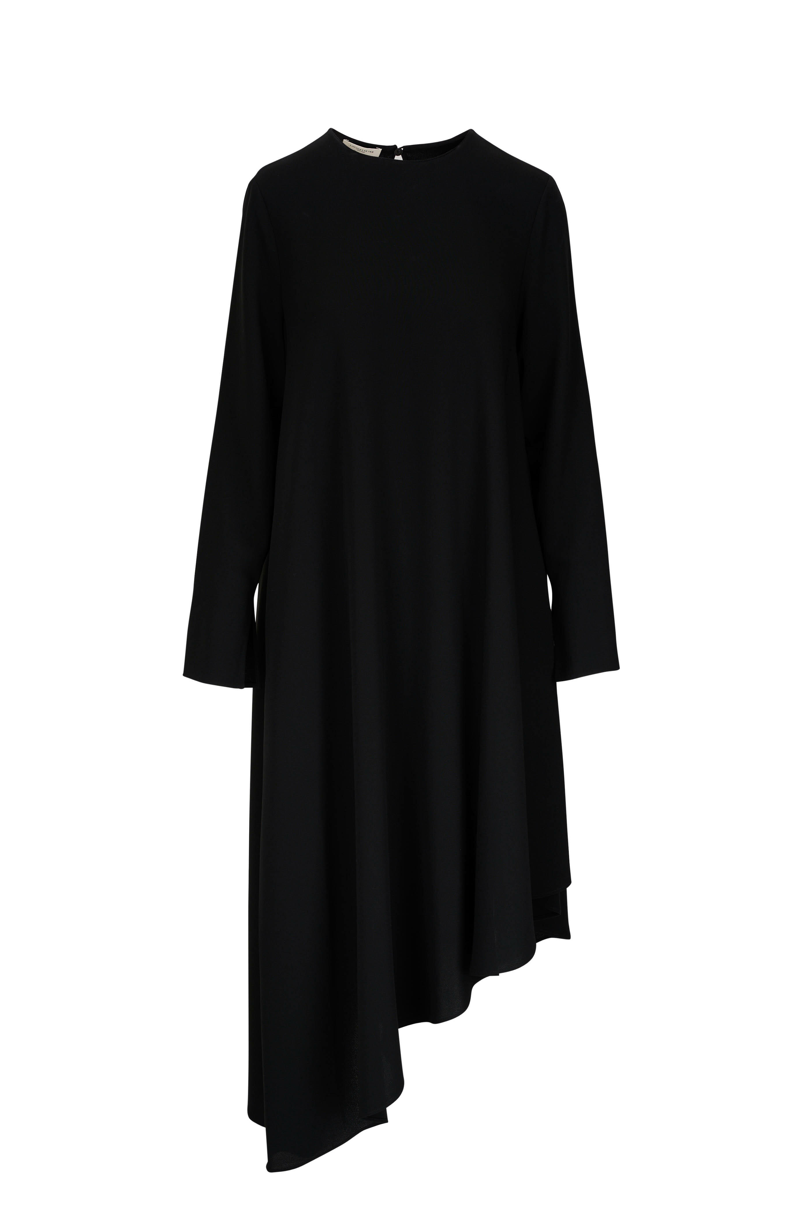 Finesse Black Crepe Asymmetric Midi Dress