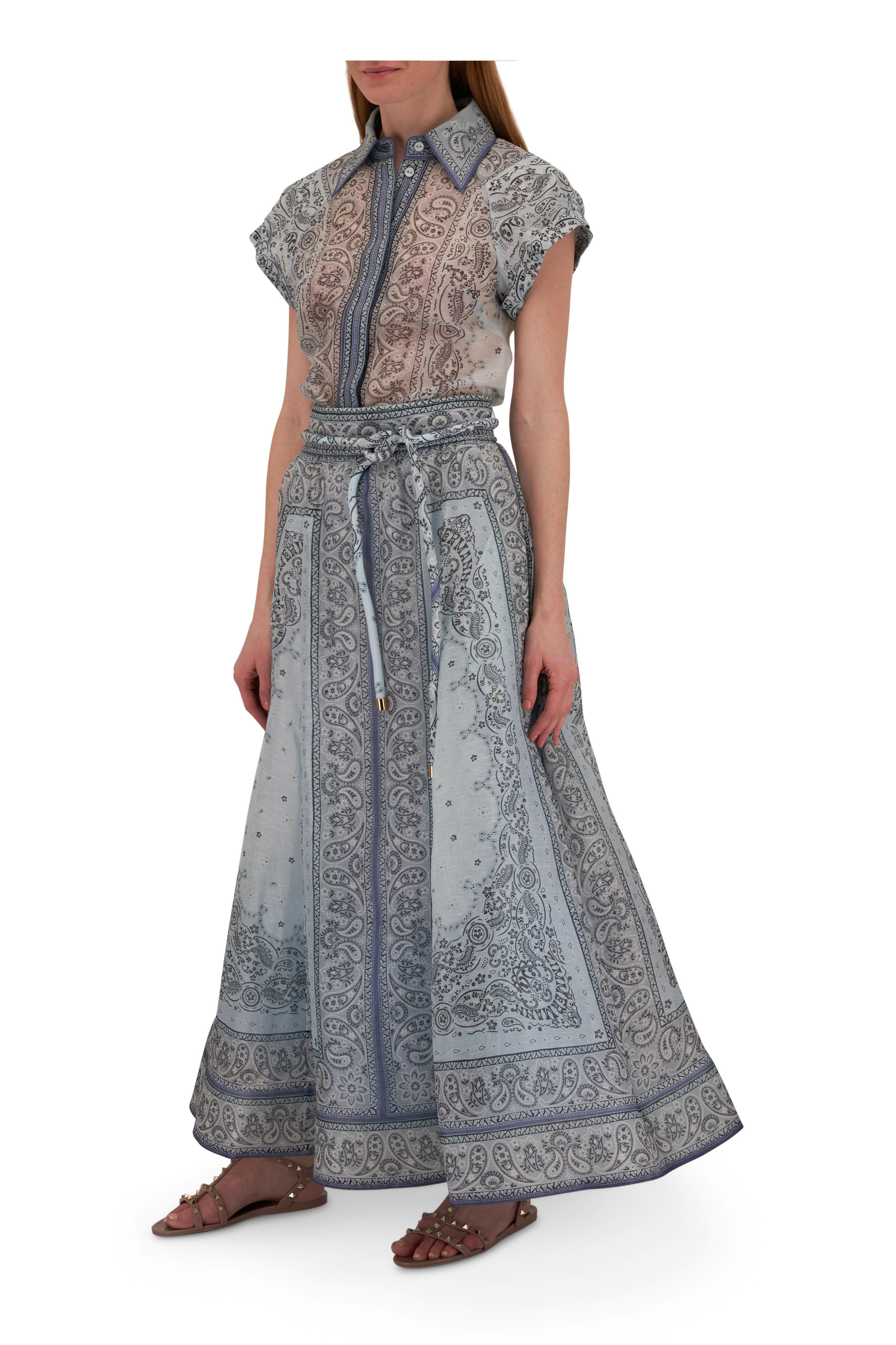 Matchmaker Blue Bandana Gathered Midi Skirt