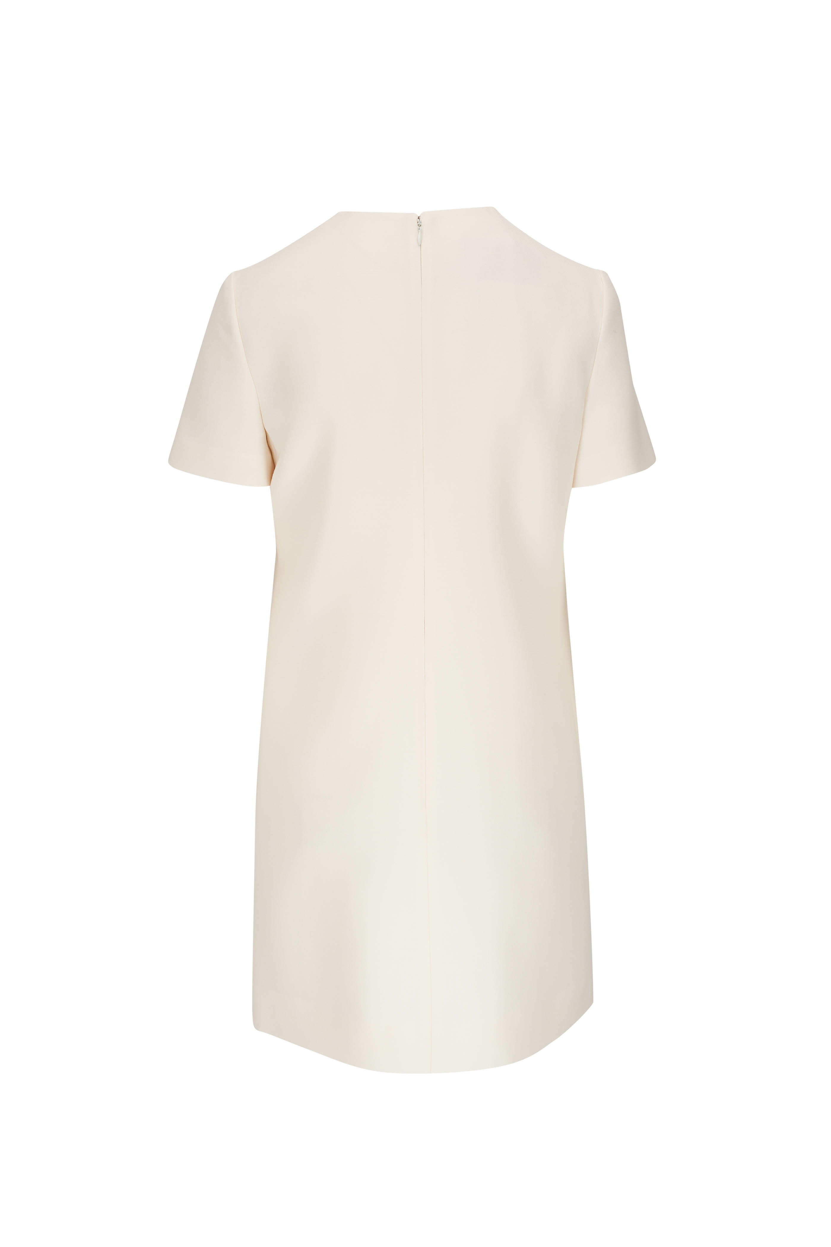 Round neckline. Concealed back zip. Straight hem. Cut-out detail at bust. Bow embellishment details. Made in Italy. Approx. 32" shoulder to hem. 65% wool, 35% silk; Lining: 100% silk. Dry clean.