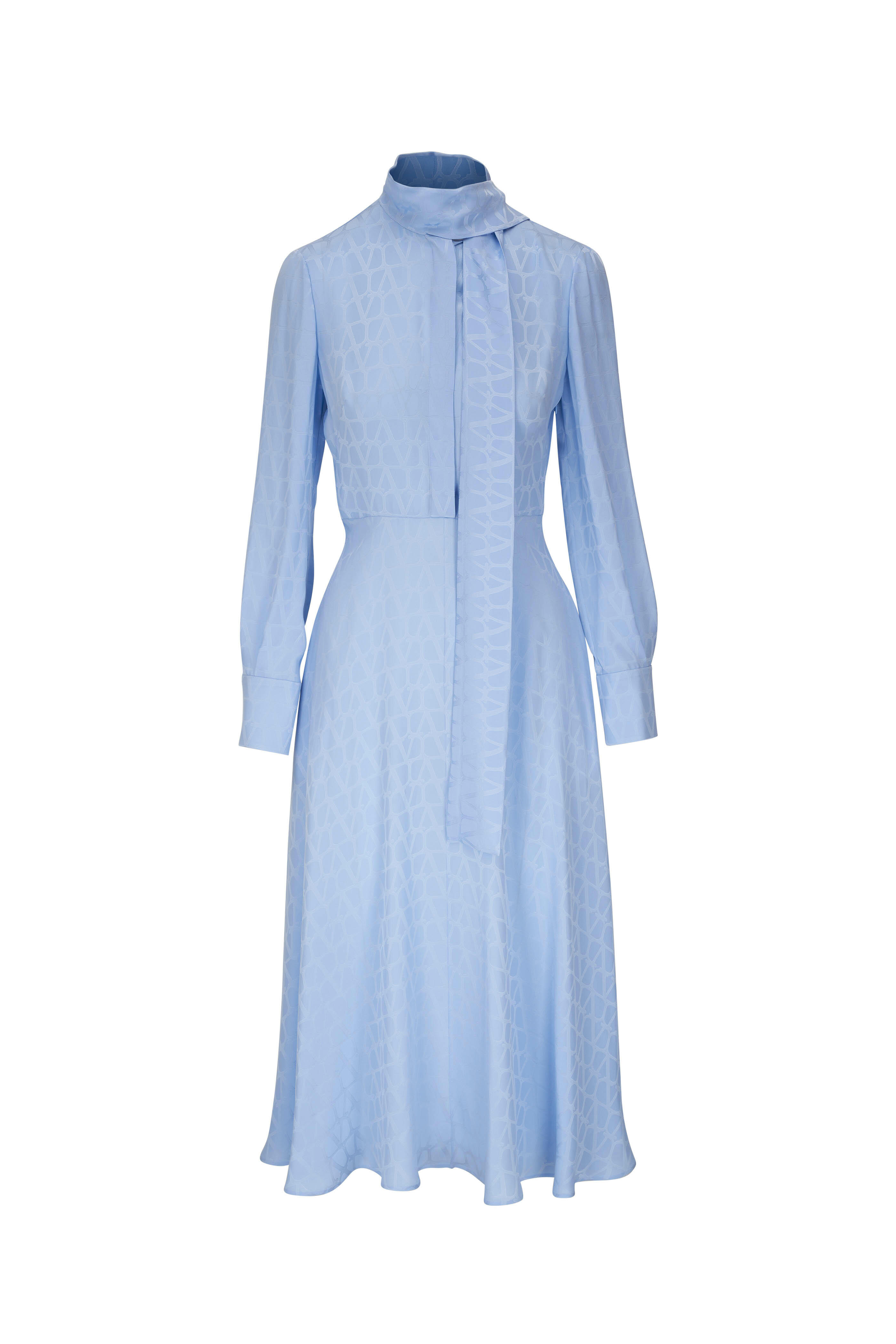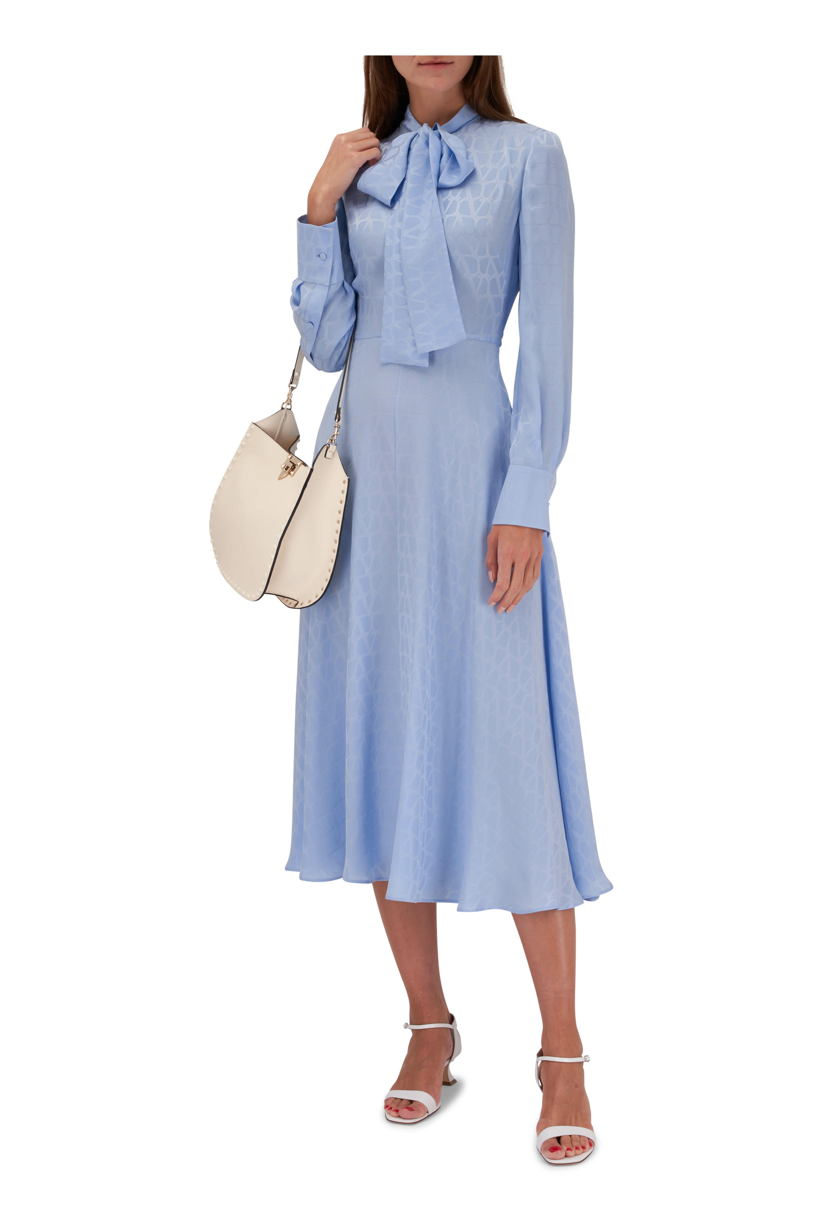Self-tie neckline. Concealed side zip. Concealed front button placket. Single button cuffs. On-seam pockets. Made in Italy. Approx. 49" shoulder to hem. 100% silk. Dry clean.