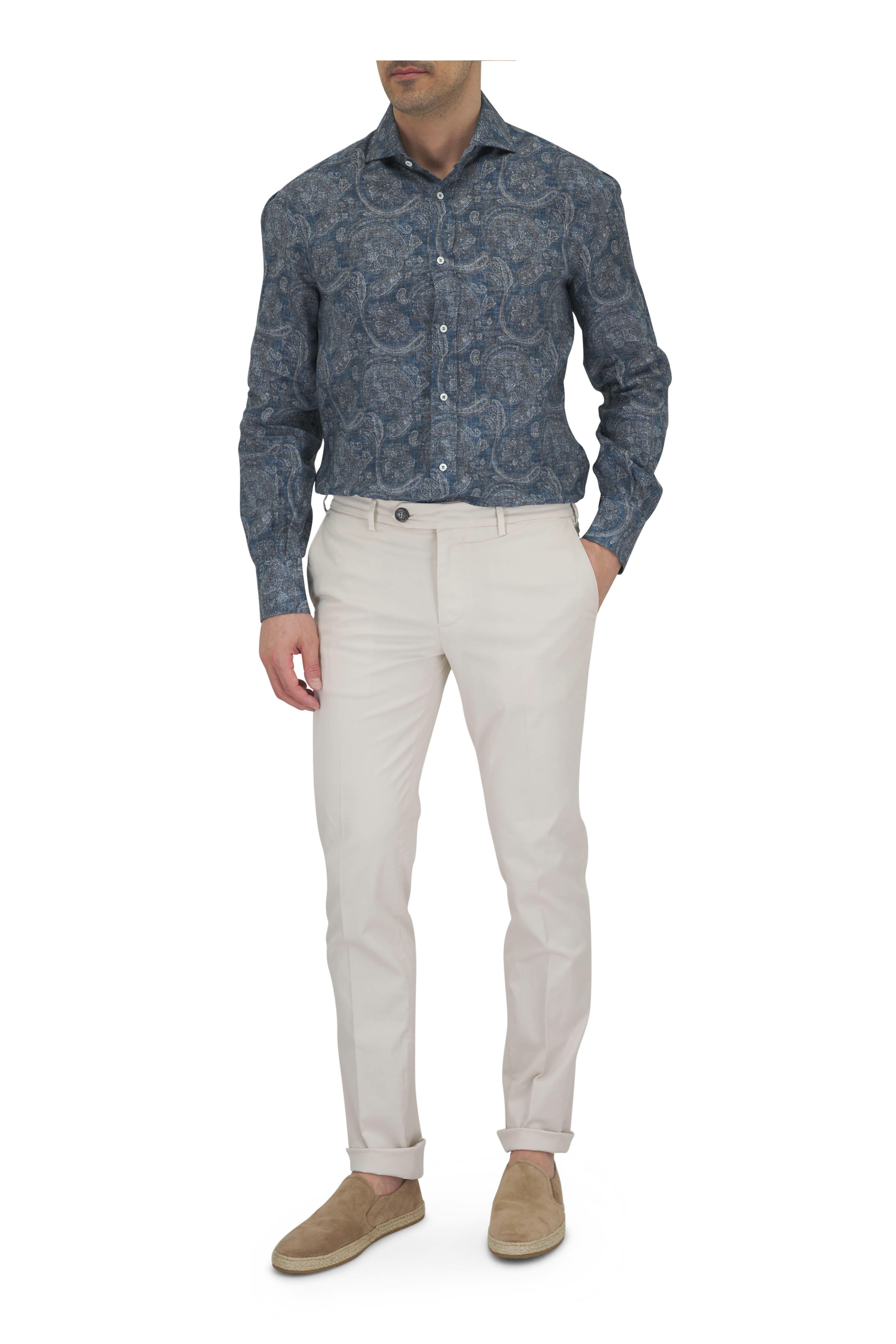 Suede upper. Moc toe. Slip on style. Leather lining and insole. Rubber pebbled sole. Made in Italy.