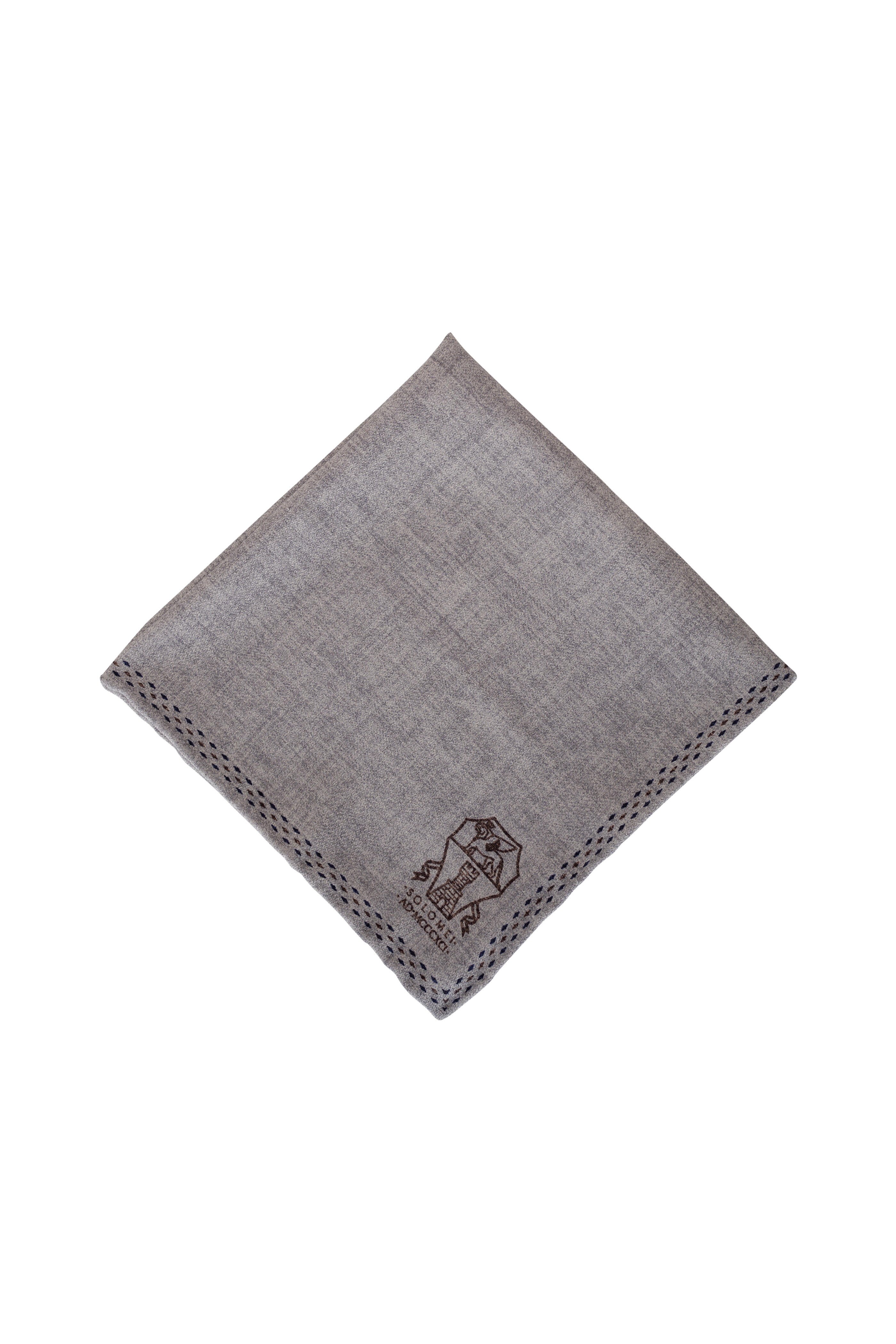 Gray Logo Print Silk Pocket Square