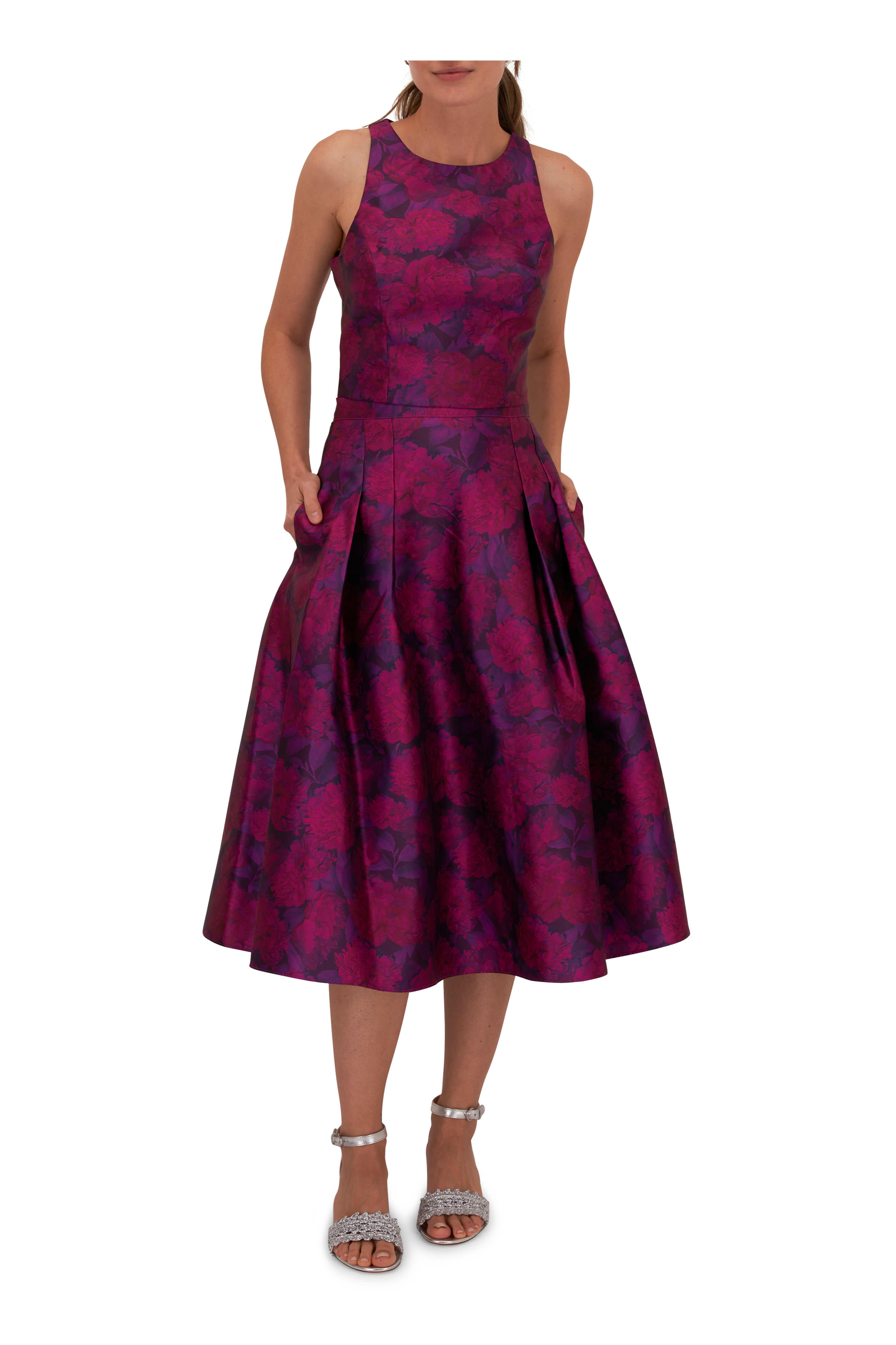 - Adjustable leather ankle strap; silver-toned buckle