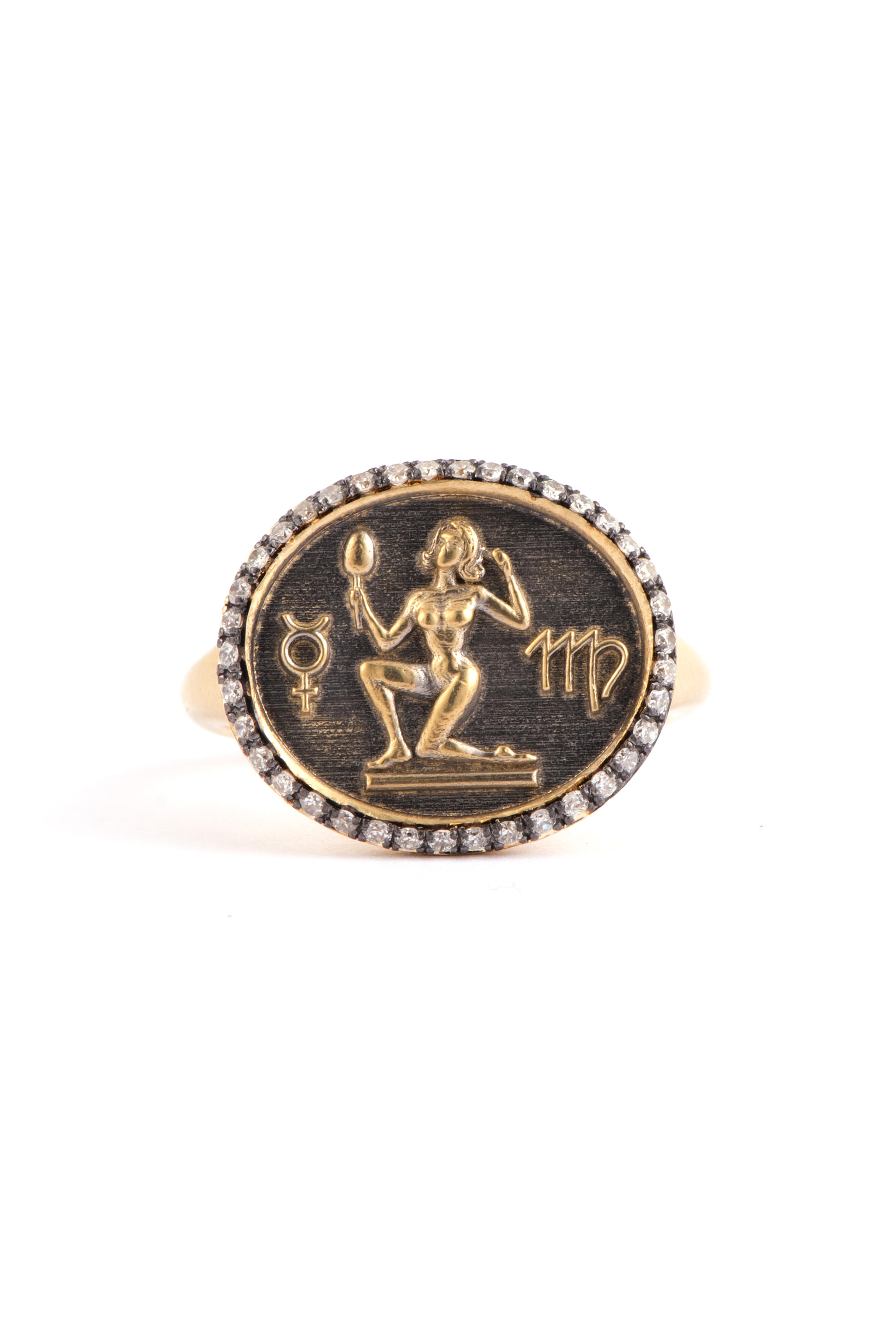 Virgo Zodiac Diamond Signet Ring
