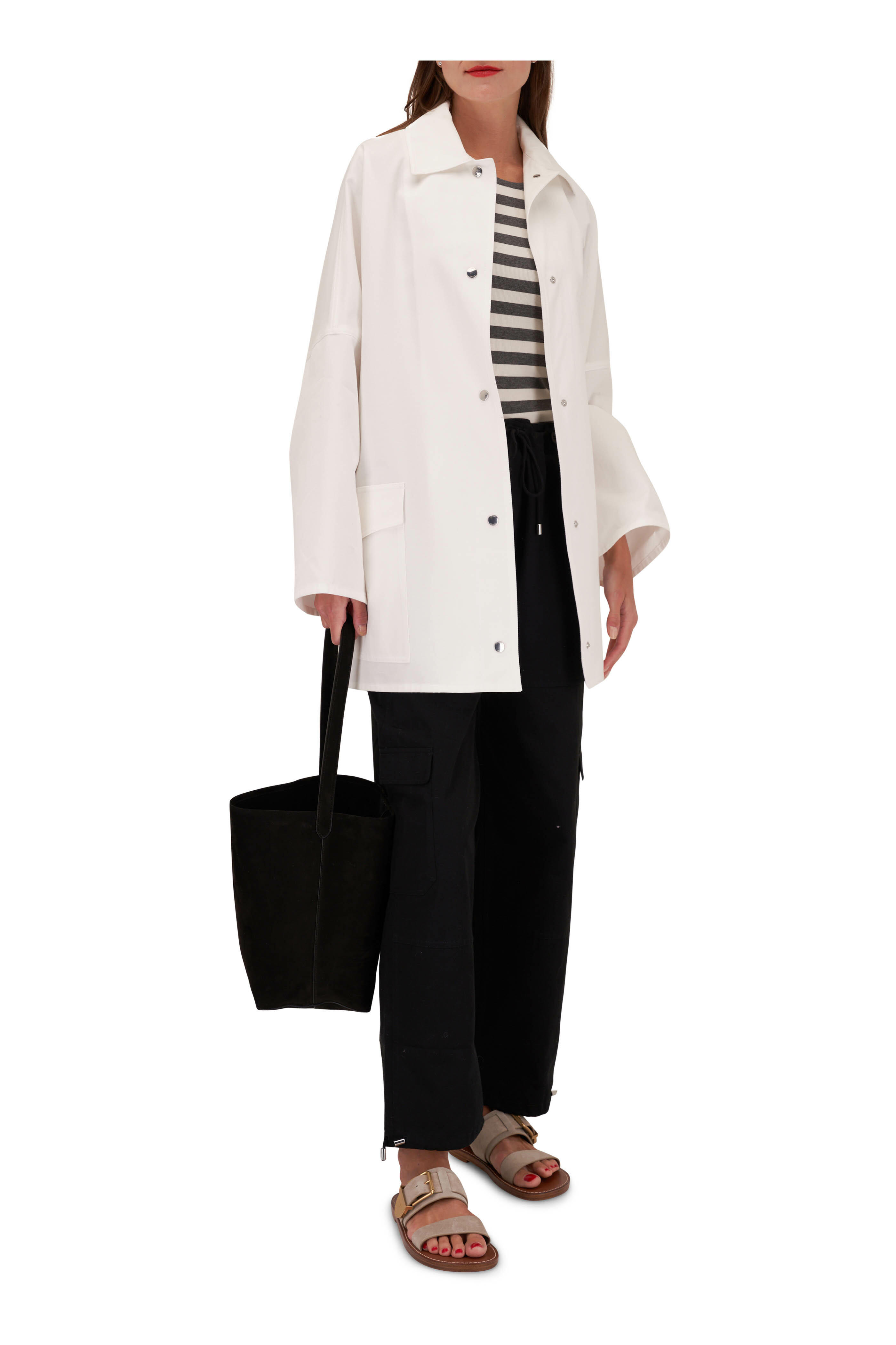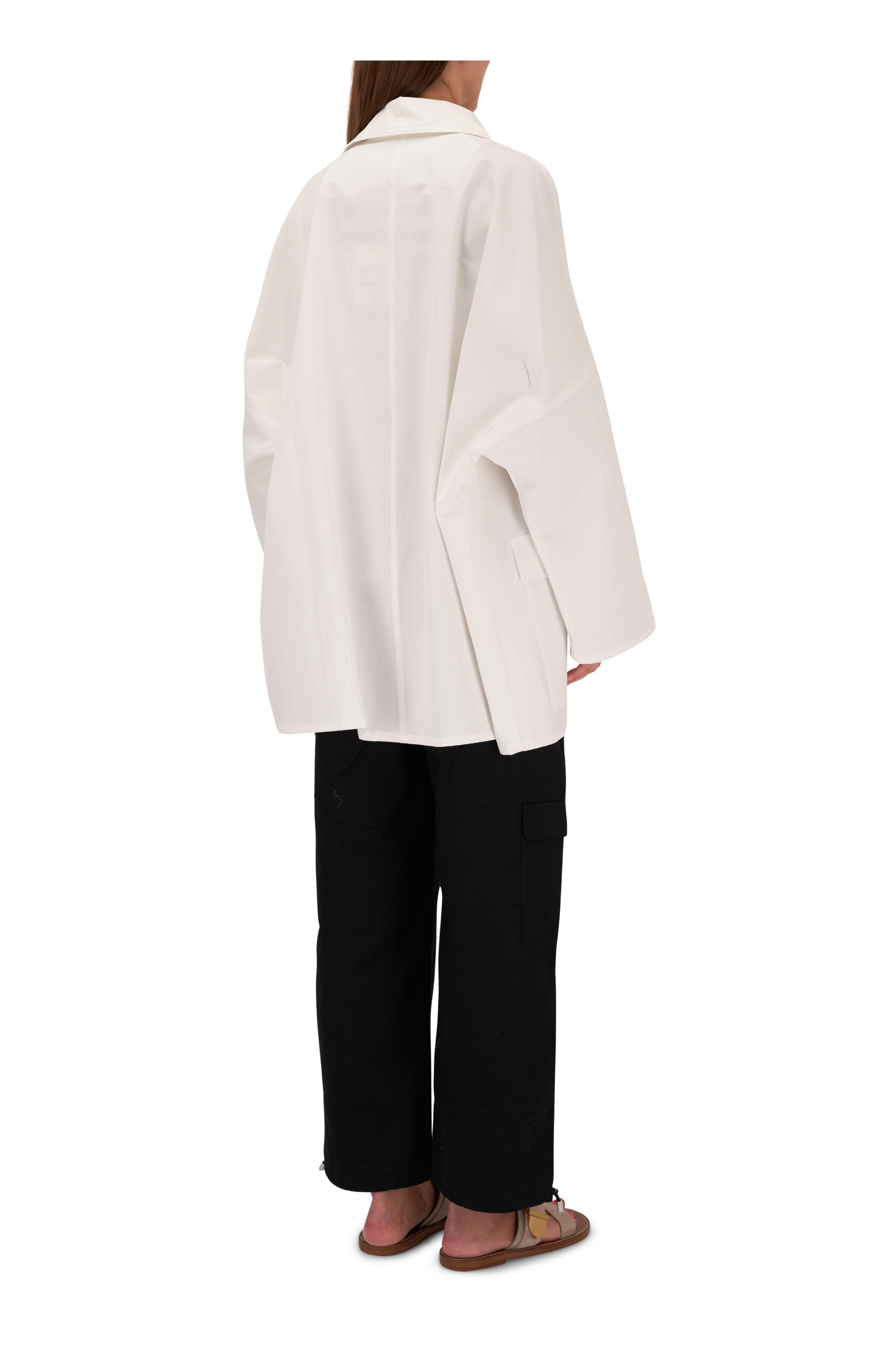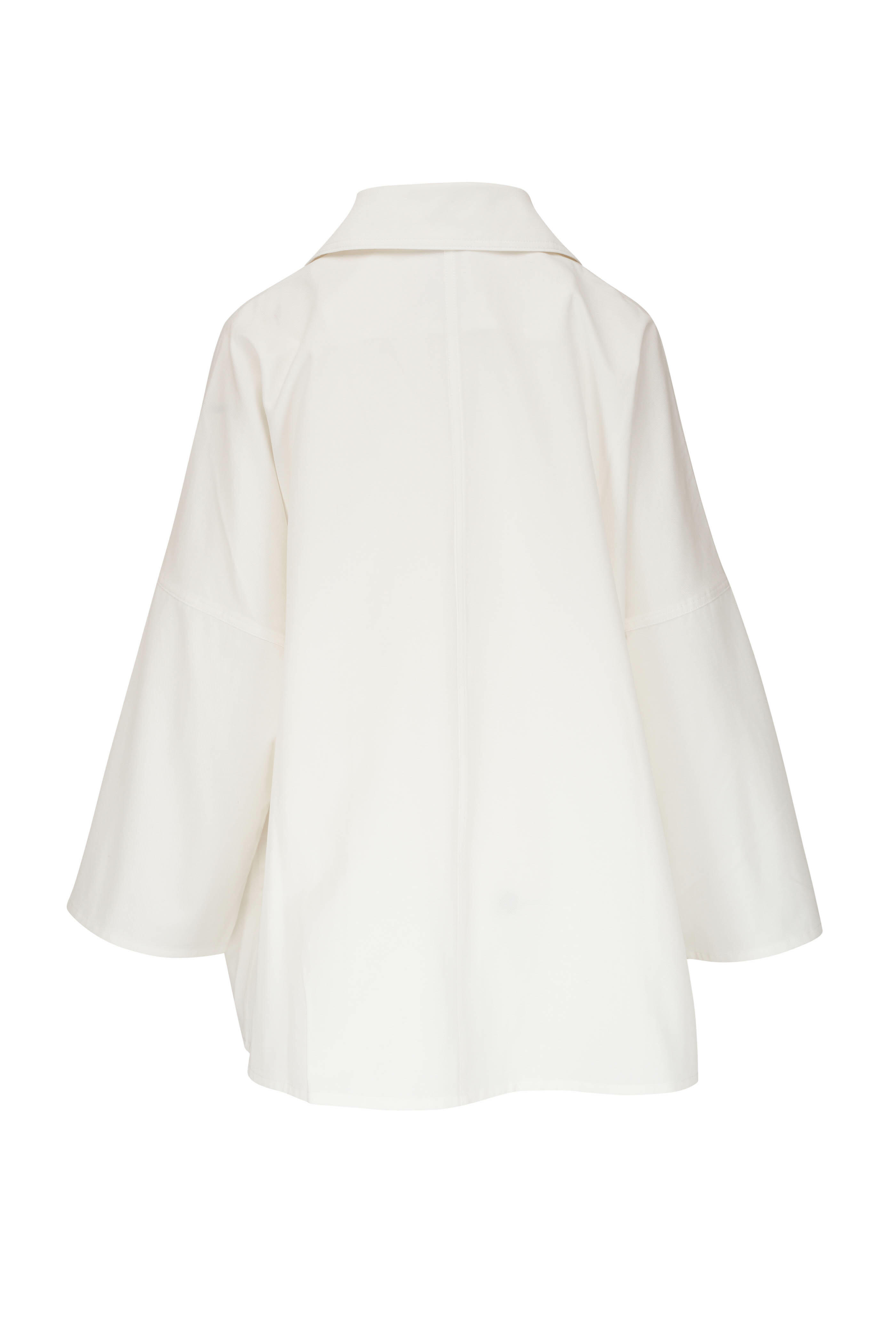 Spread collar. Front snap button placket. Drop shoulders. Lower flap pockets. Imported. 32.3" shoulder to hem. Extra oversized fit; consider taking one or two sizes down.. 100% organic cotton. Machine wash cold.