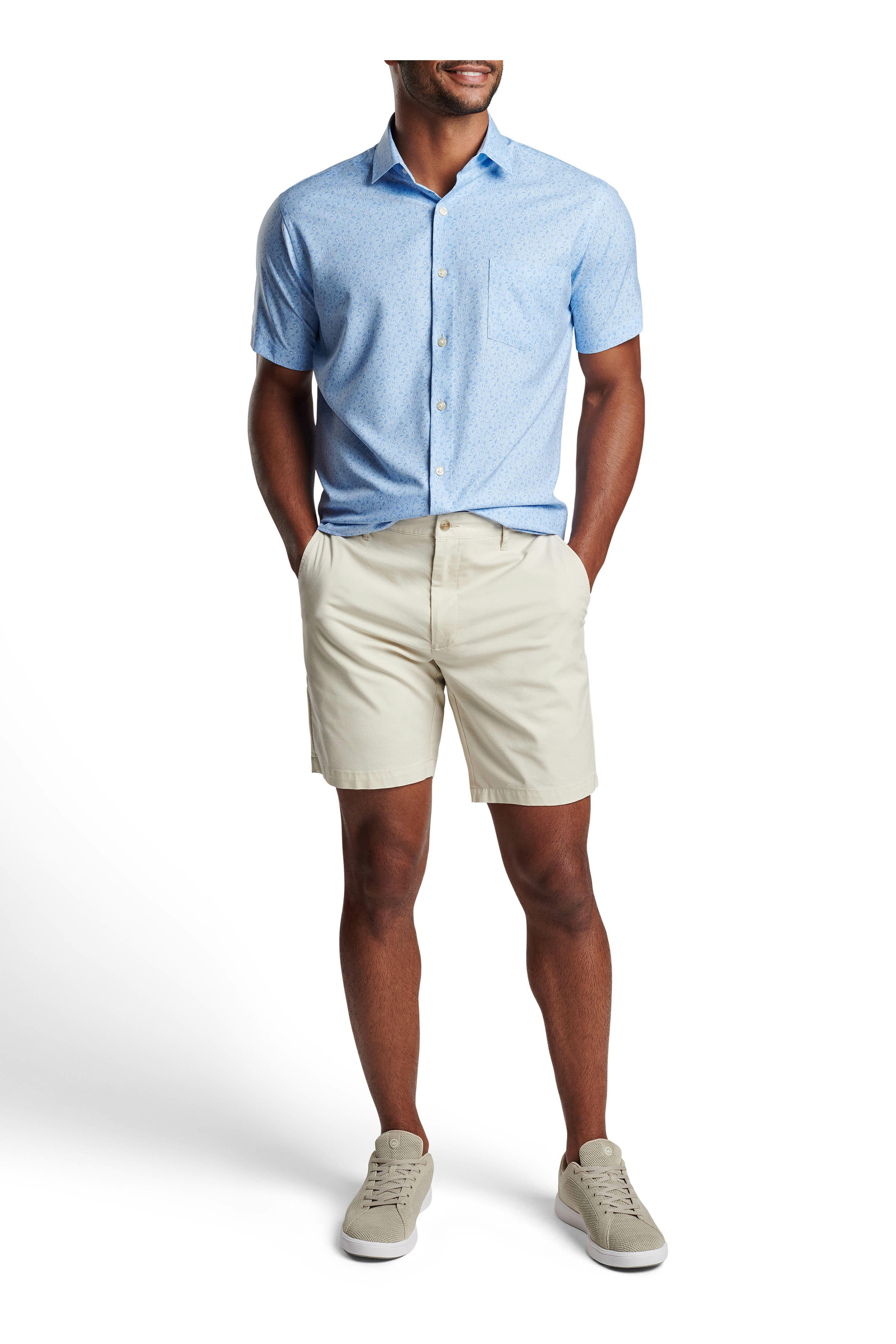 Zip fly; button closure. Two front slash pockets, two back welt pockets. Imported. Inseam 8". 26% cotton, 29% modal, 42% polyester, 3% spandex. Machine wash.