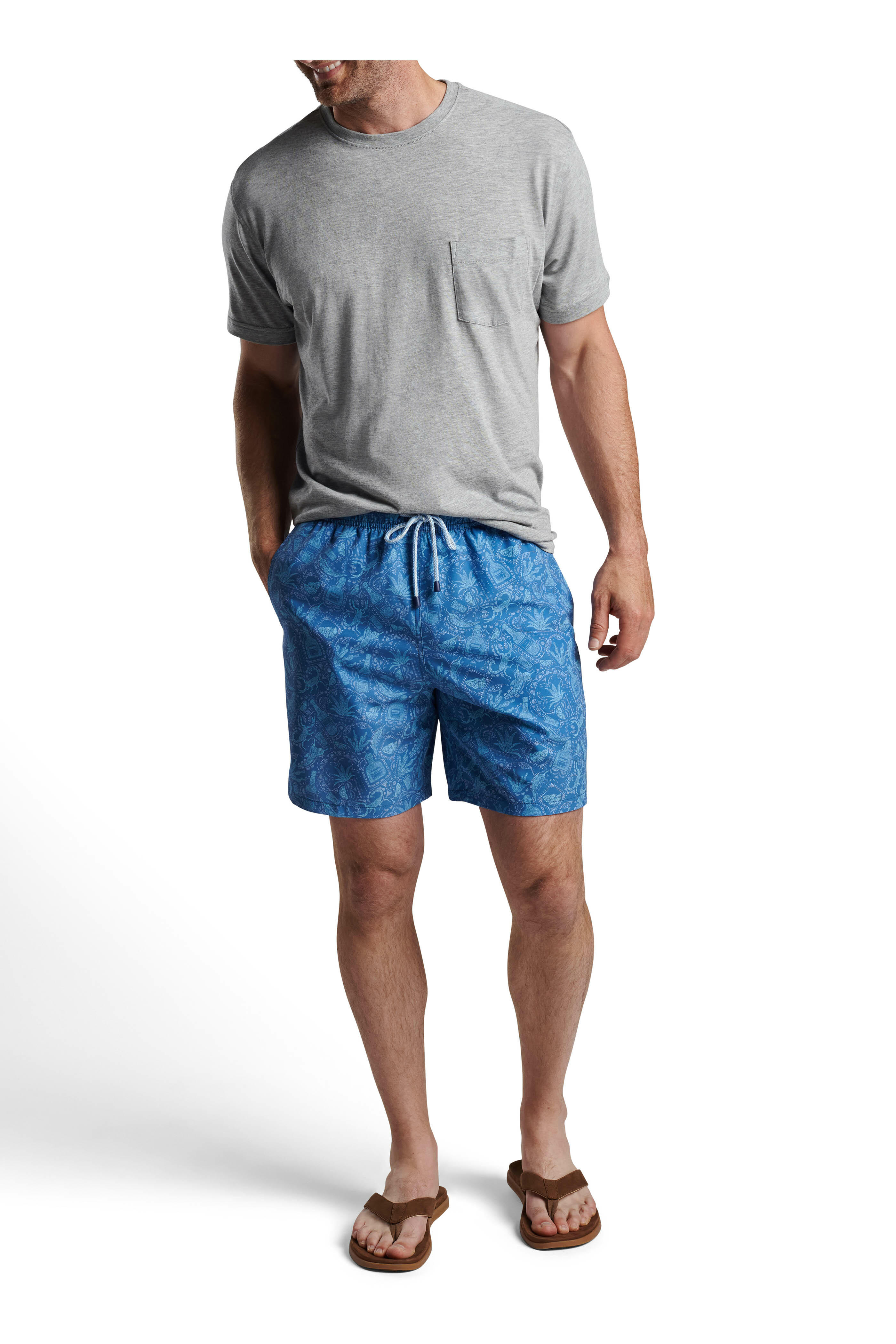 Drawstring waist. Lower waist side pockets. Back snap button pocket. Interior waist small pocket. Imported. 7" inseam. 88% polyester, 12% spandex. Machine wash.