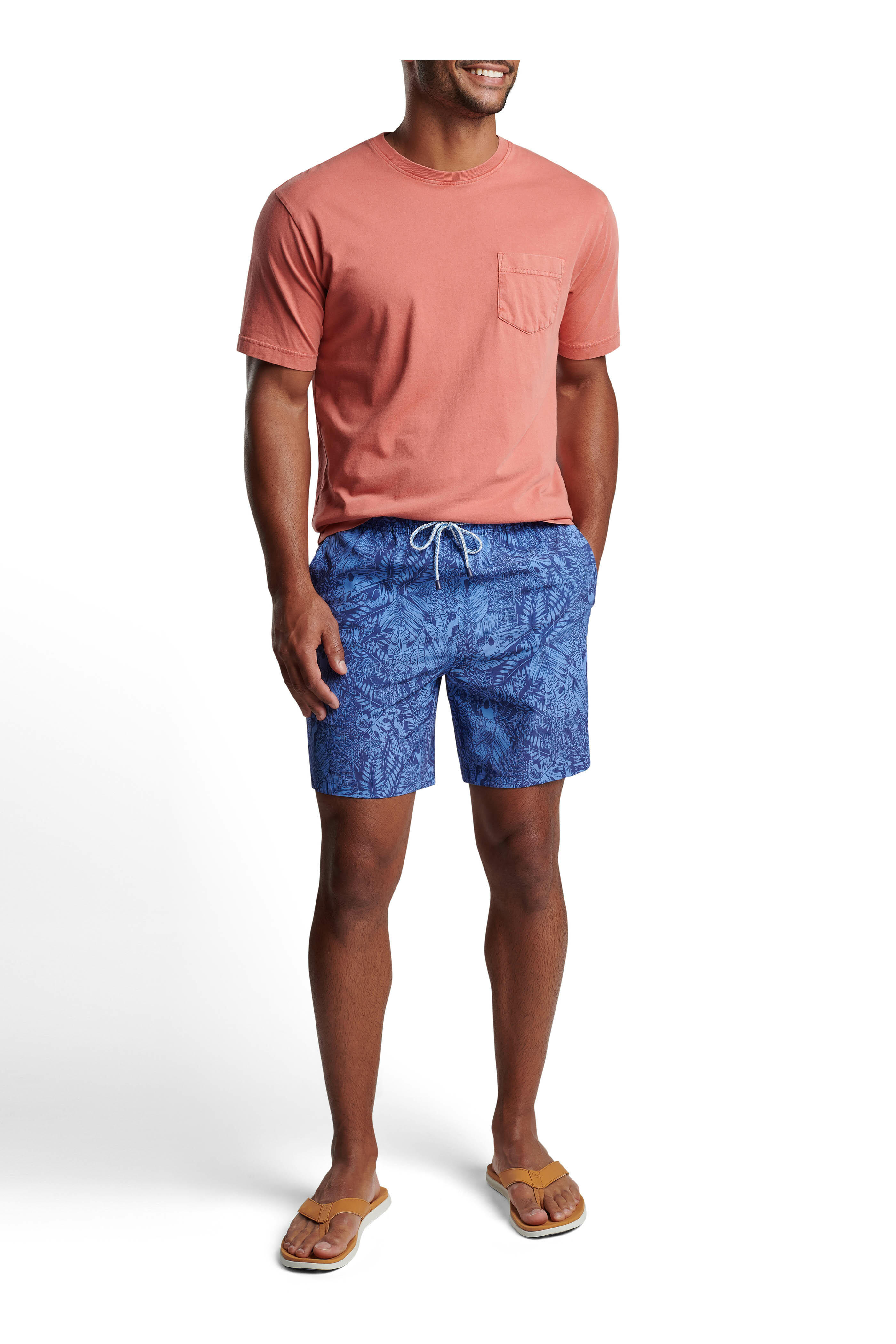 Atlantic Blue Tropical Leaf Print Swim Trunks