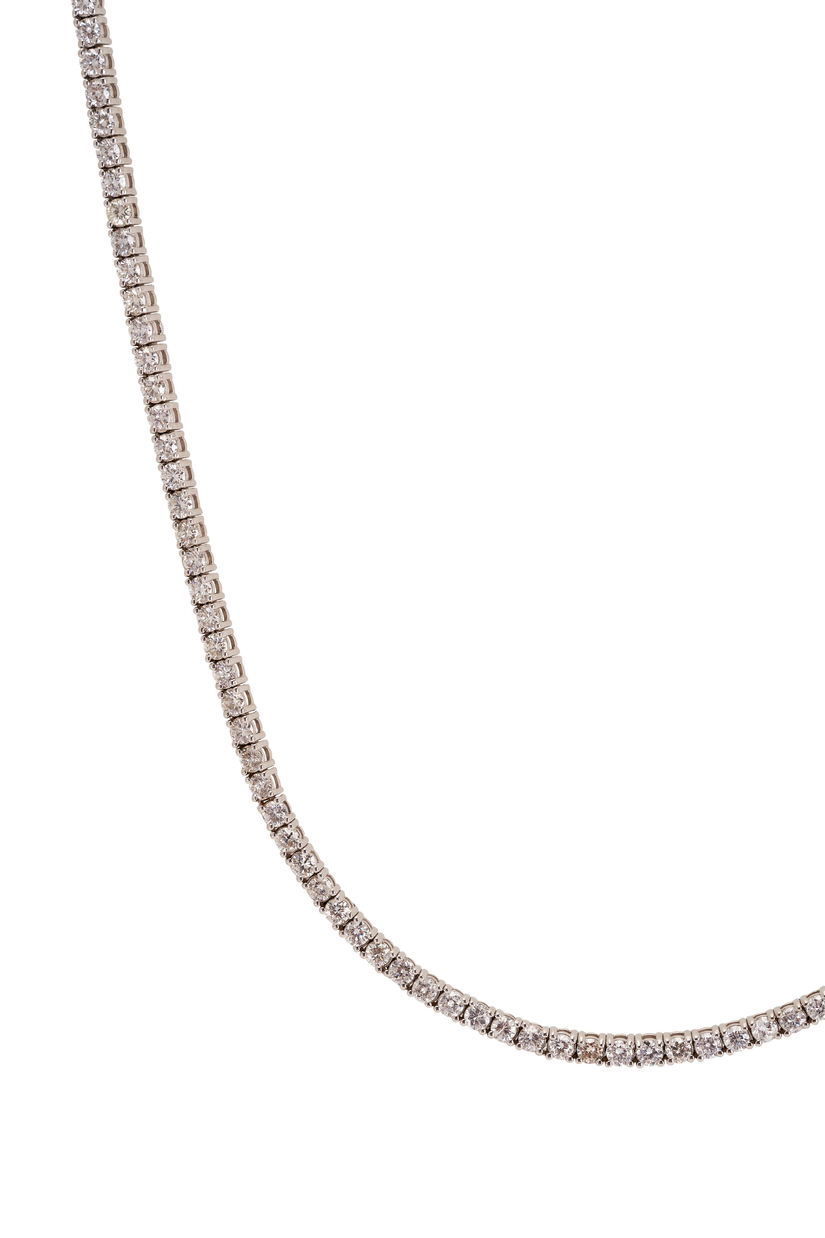 18K White Gold. 177 Round Cut Brilliant Diamond: 4.86 tcw. 4 Prong Basket Setting. Color: G. Clarity: SI. Secure Box Clasp.