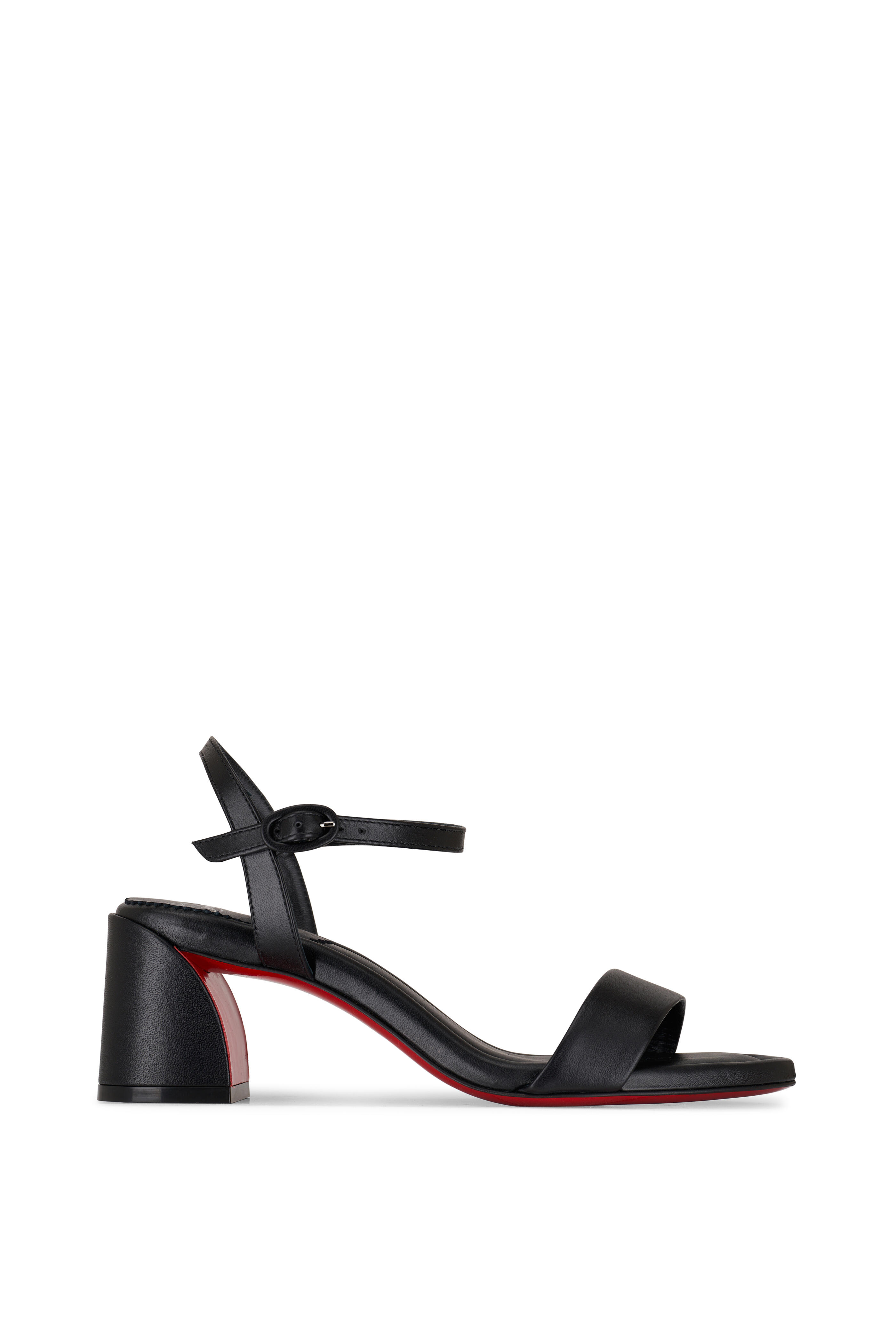 Leather upper. Open, round toe. Adjustable buckle ankle strap. Leather lining. Self-covered block heel. Signature red lacquer sole. Made in Italy. Heel height: 55mm (2.16").
