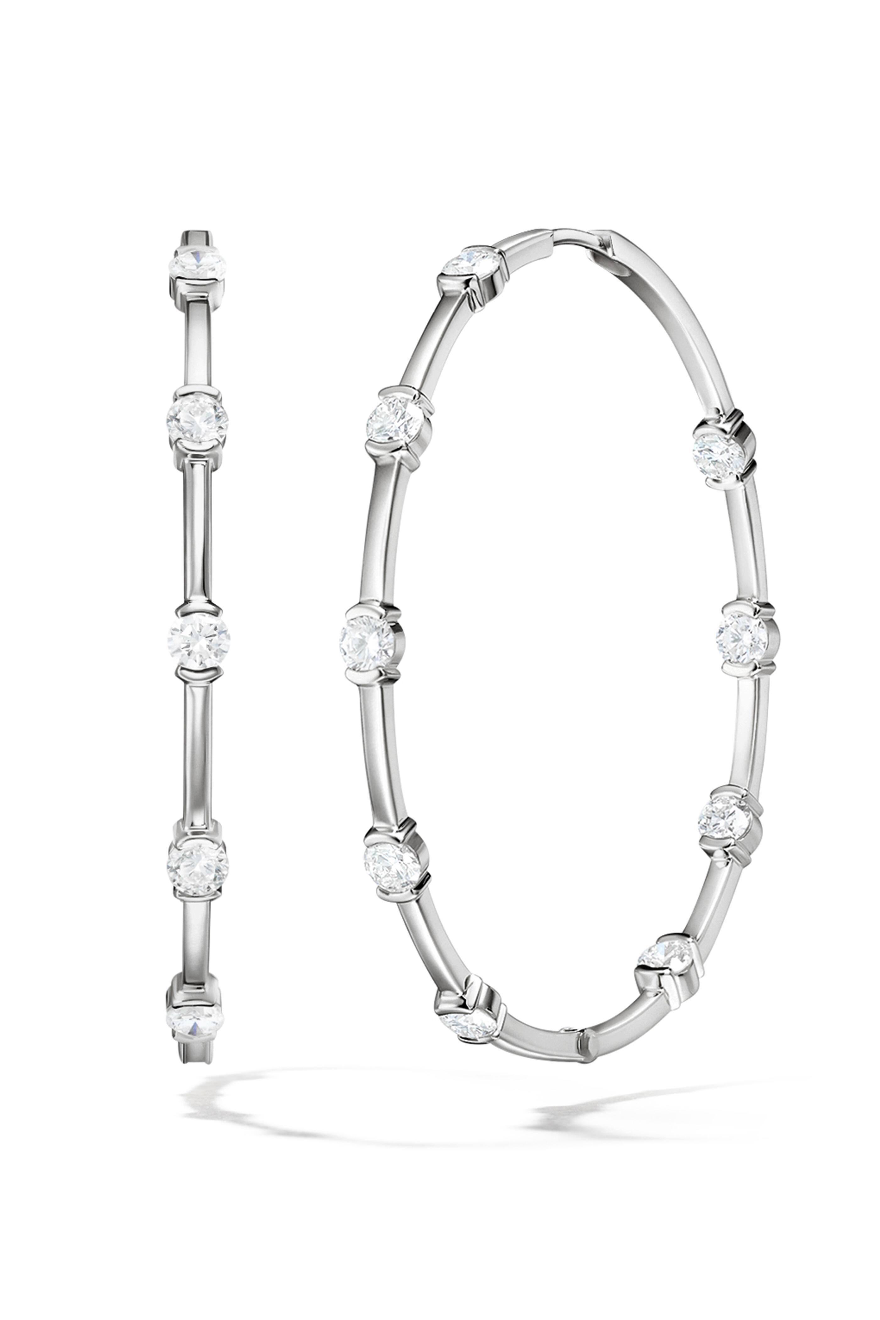 18K White Gold. Brilliant White Diamond: 1.89CT. Hinged Post Back. 40mm Diameter.