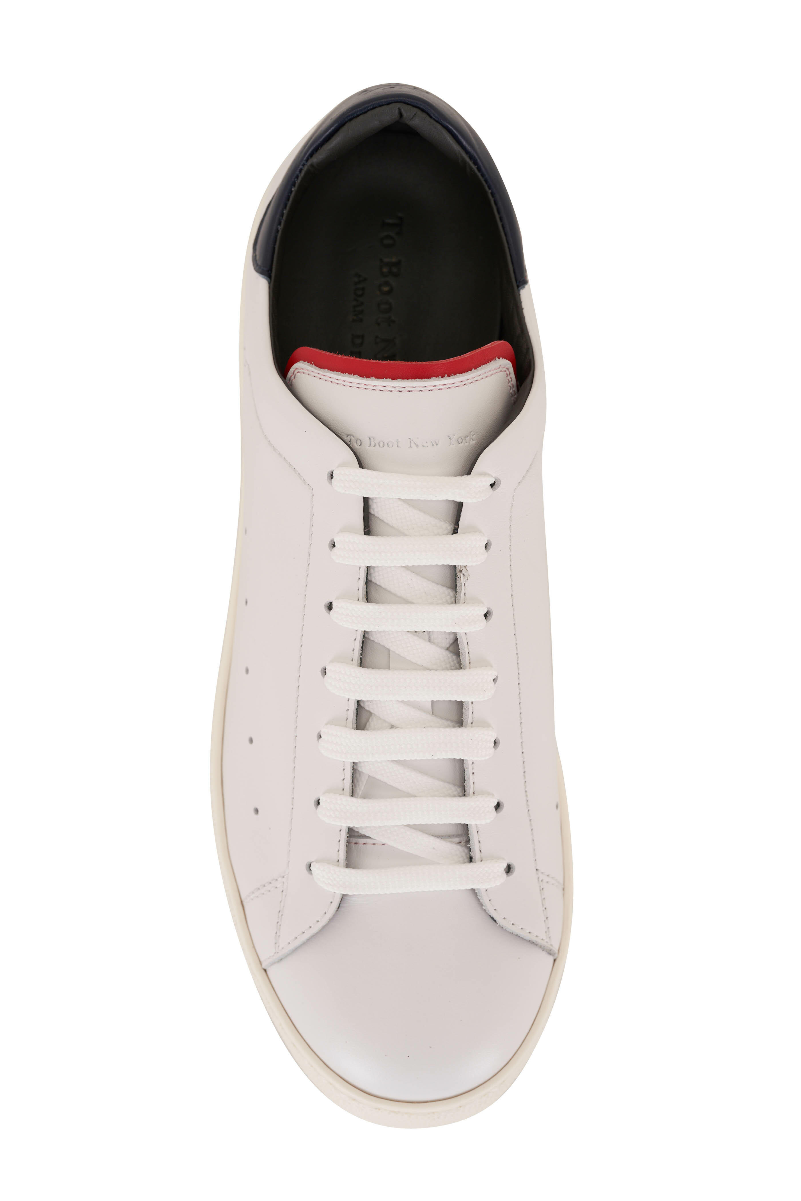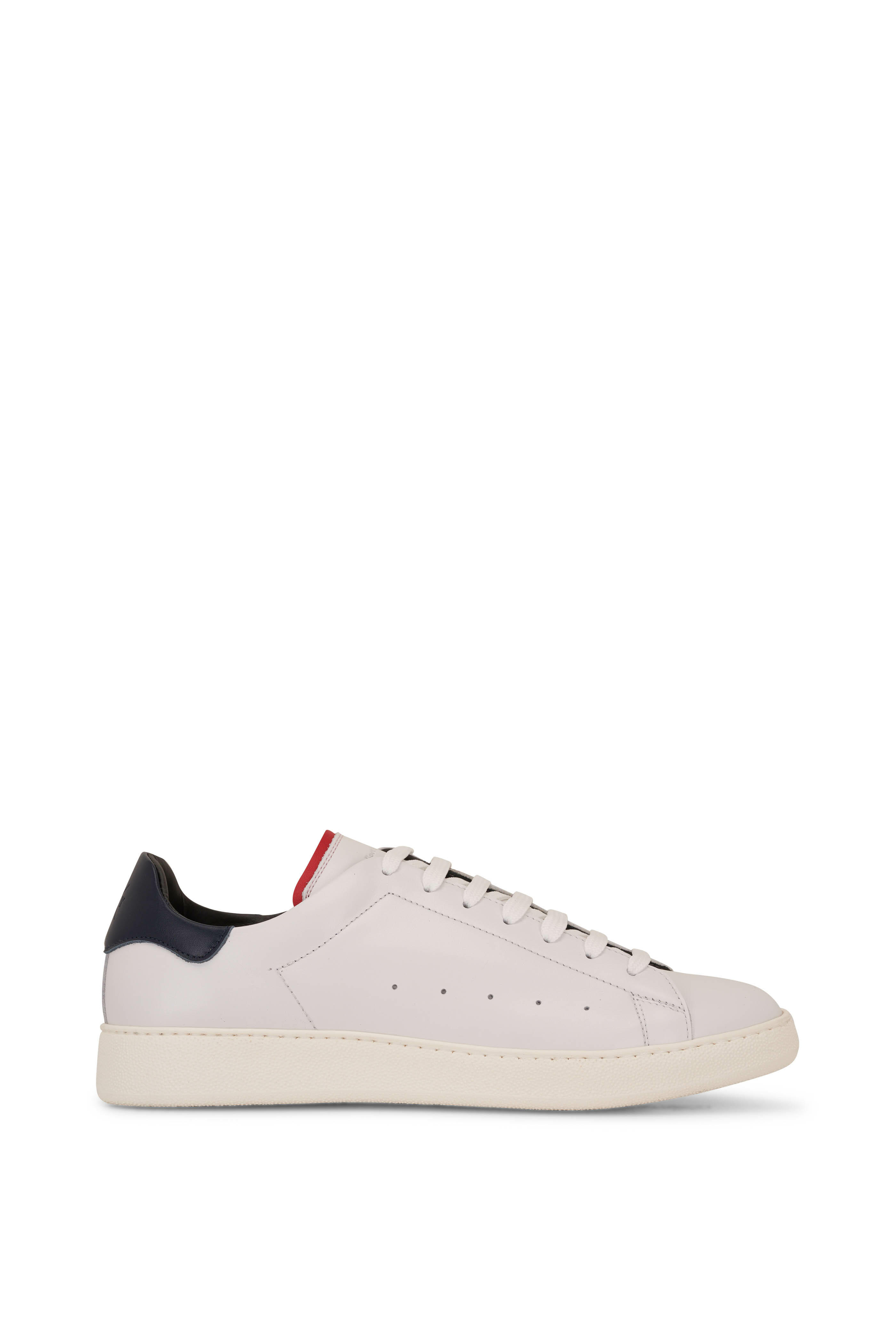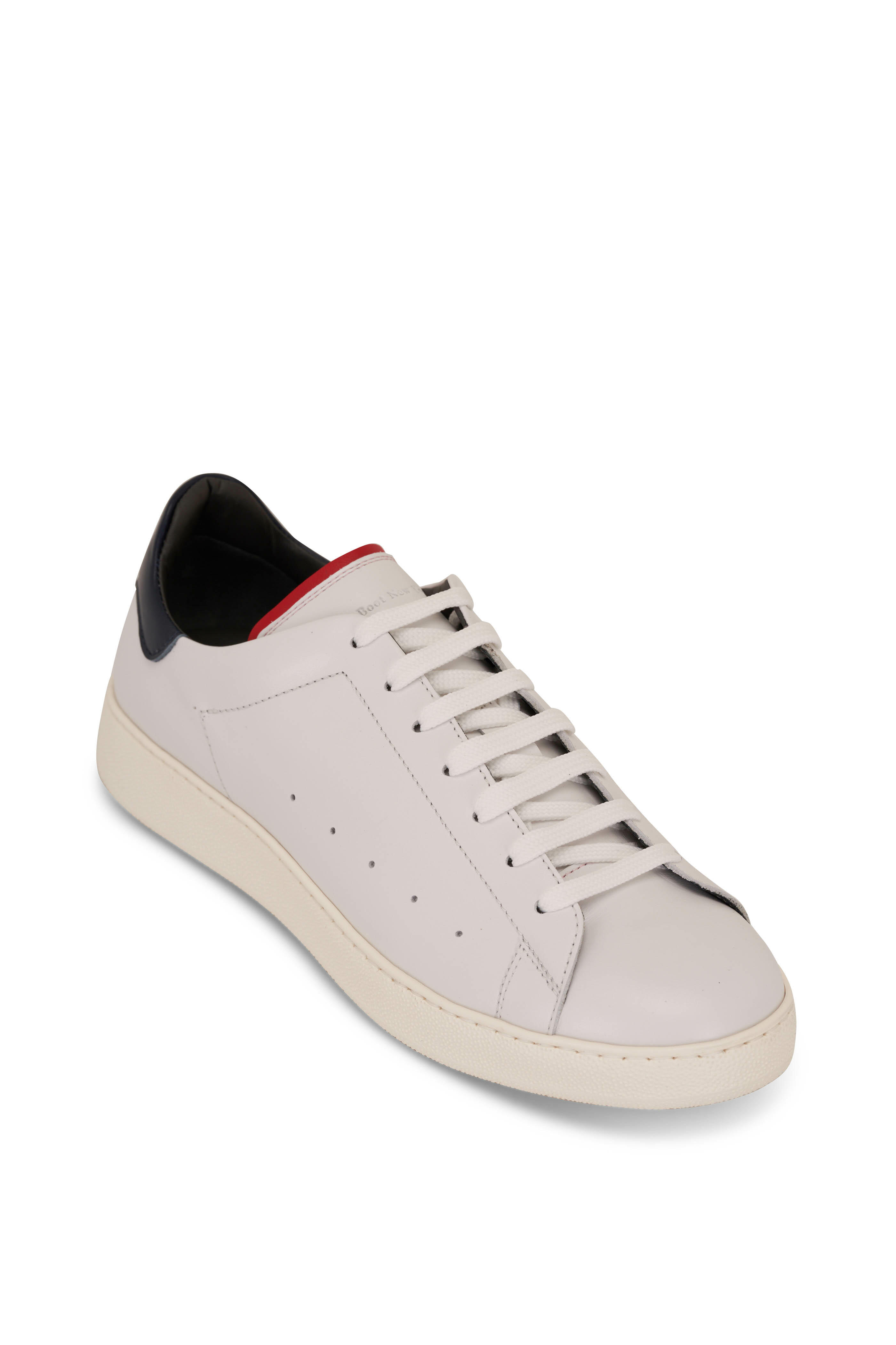 Leather upper. Round toe. Lace-up closure. Red and navy trims. Leather lining and insole. Rubber sole. Made in Italy.
