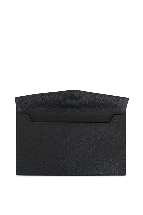 Uptown Pouch Black Grained Leather Envelope Clutch