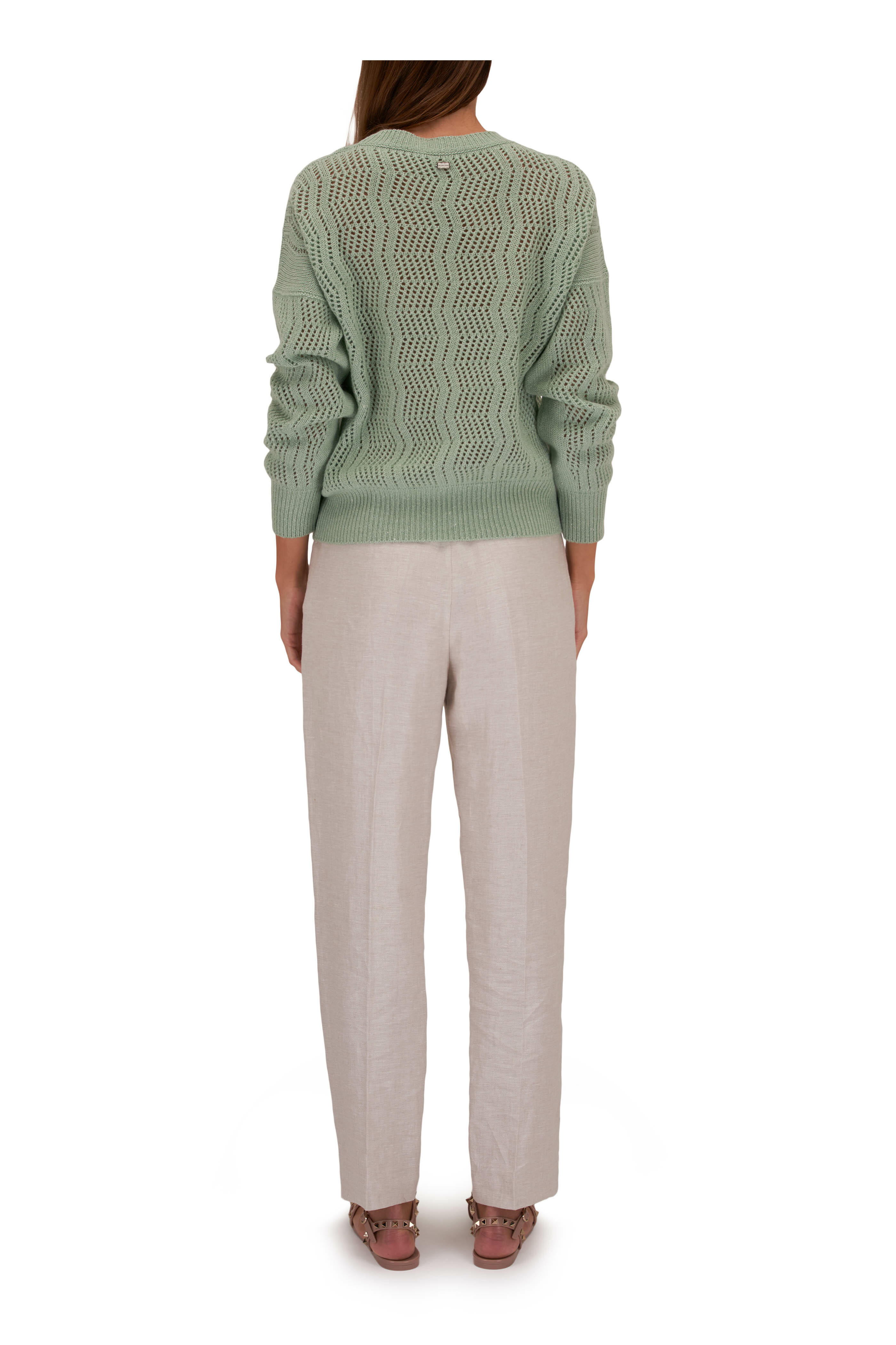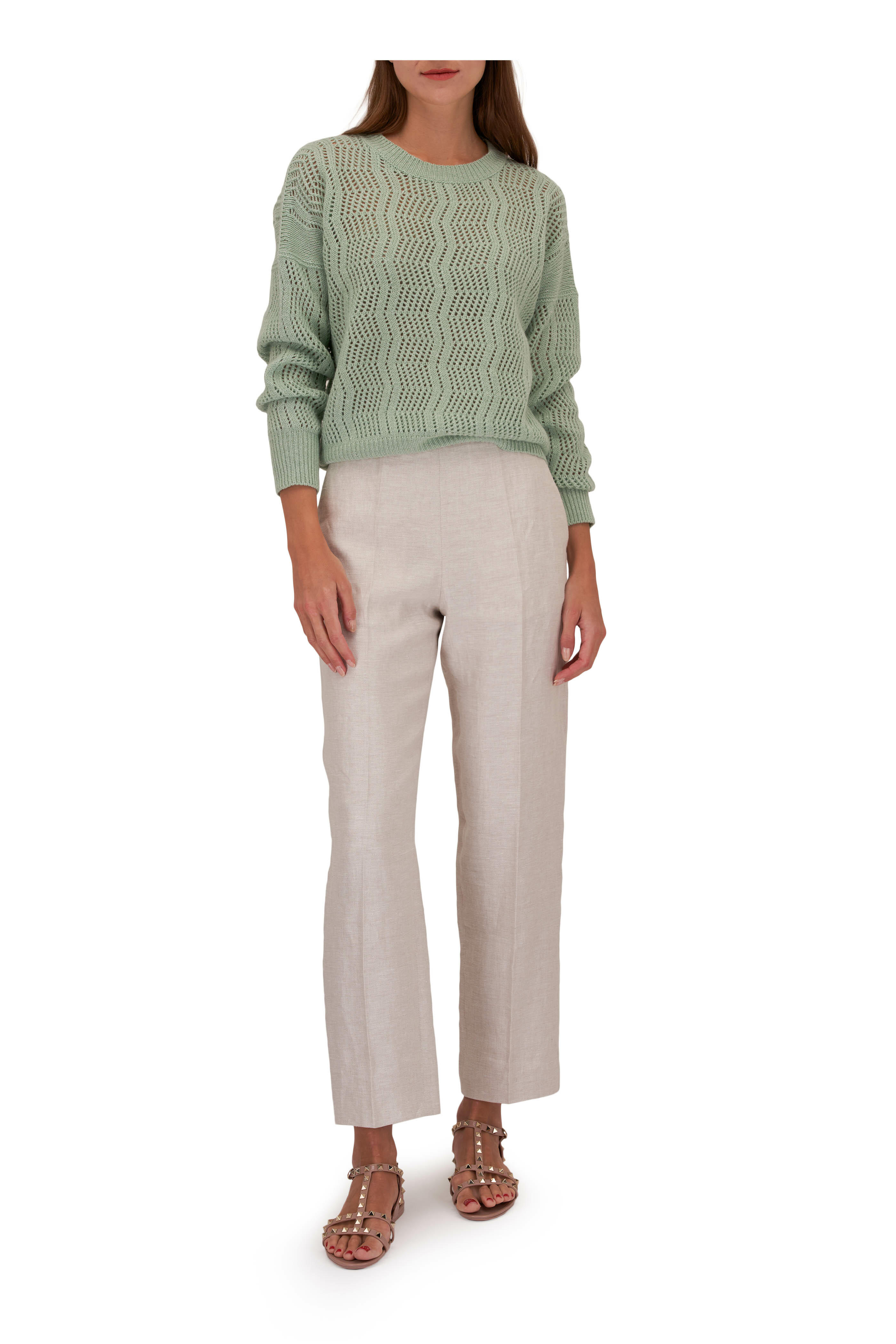 Crew neckline. Slip-on style. Ribbed trims. Made in Italy. 70% cashmere, 30% linen. Dry clean.