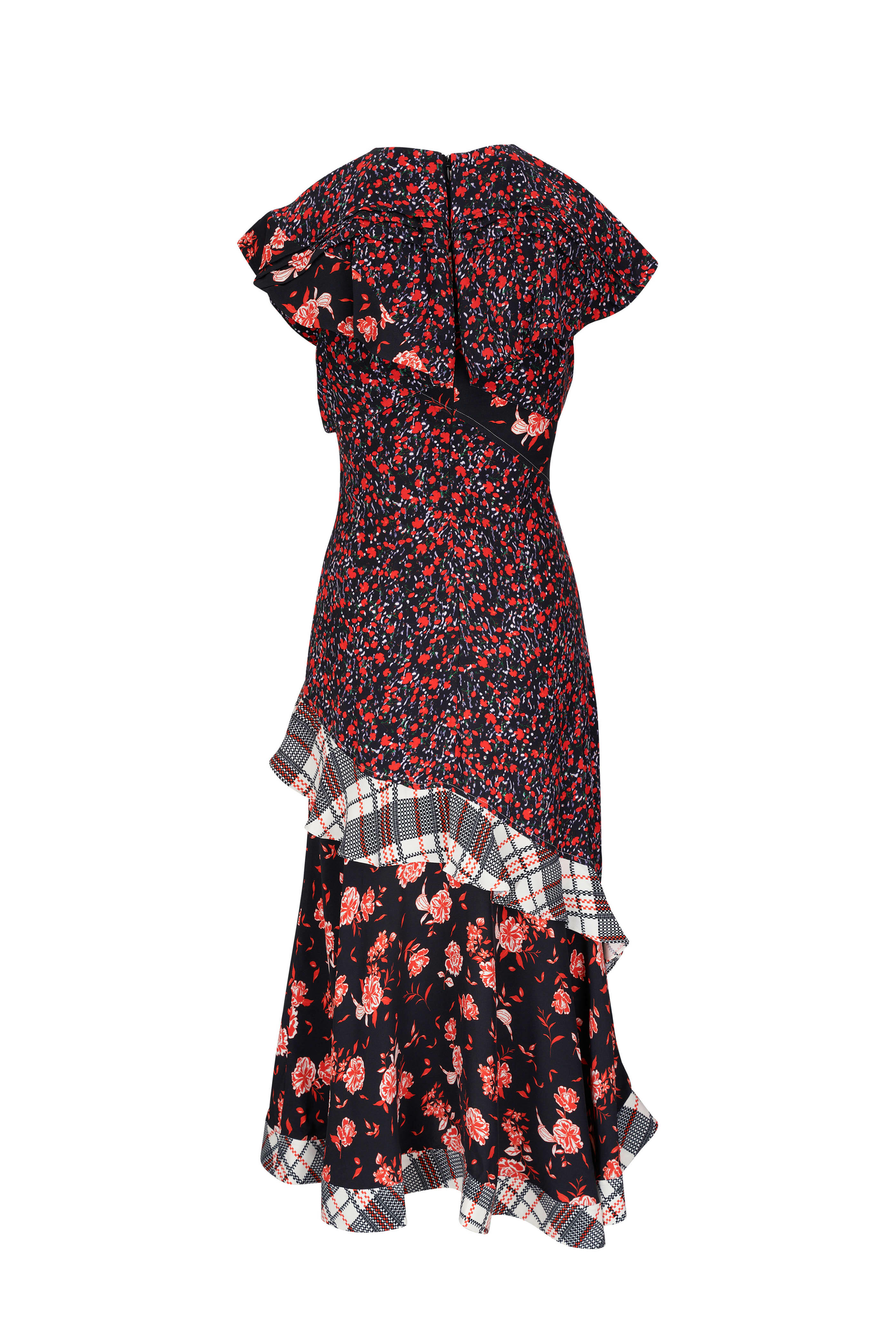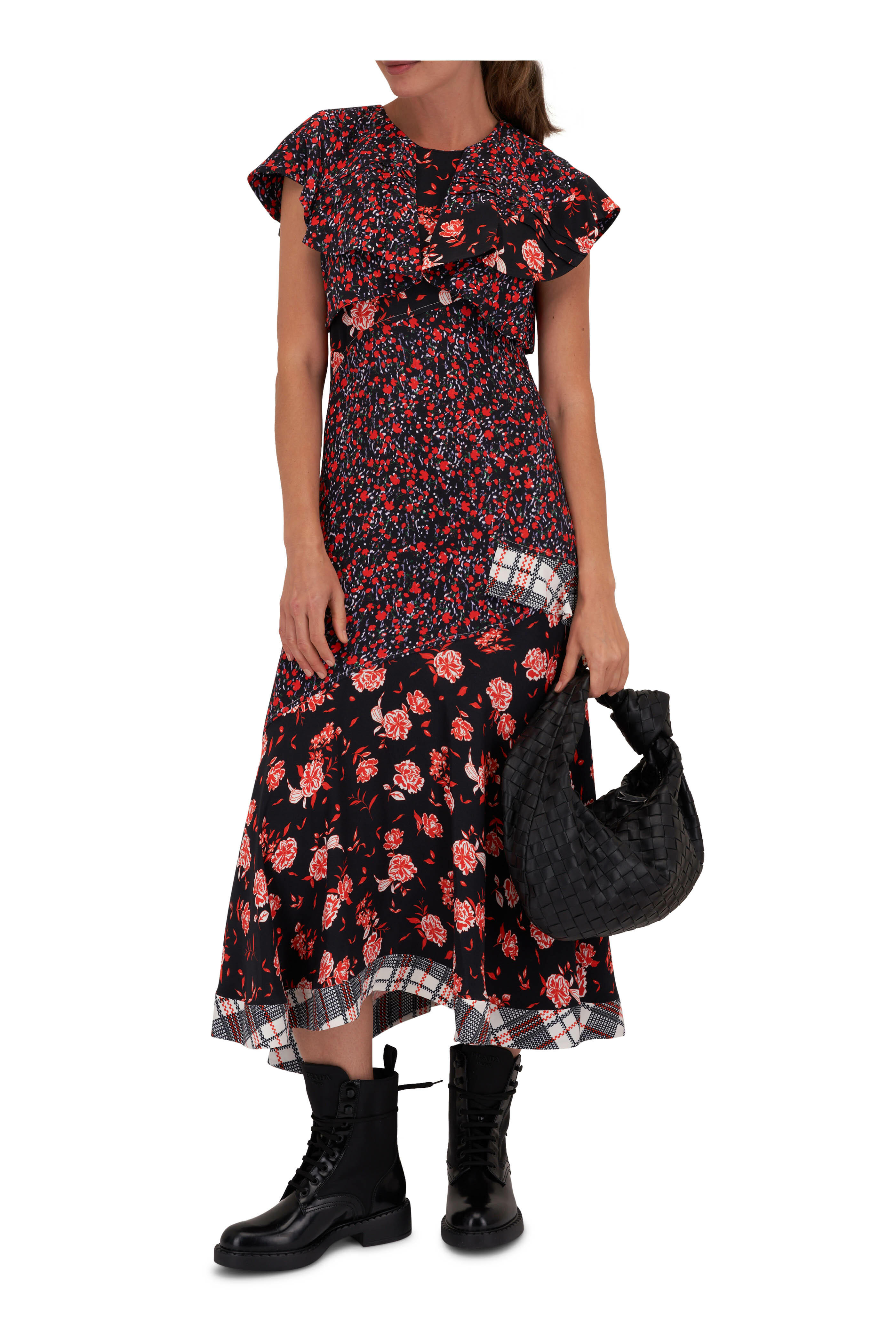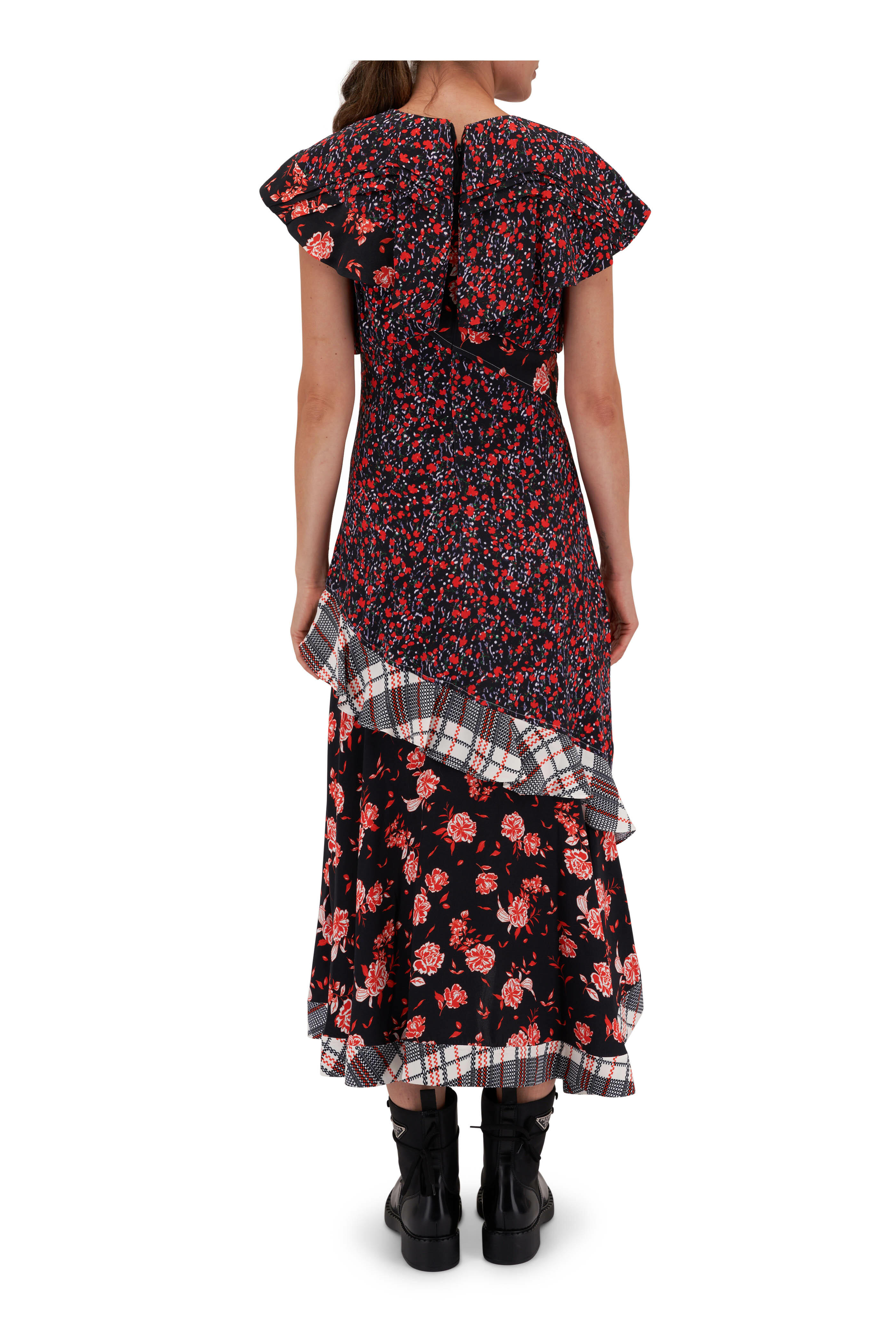 Black Multi Floral Collage Ruffle Midi Dress