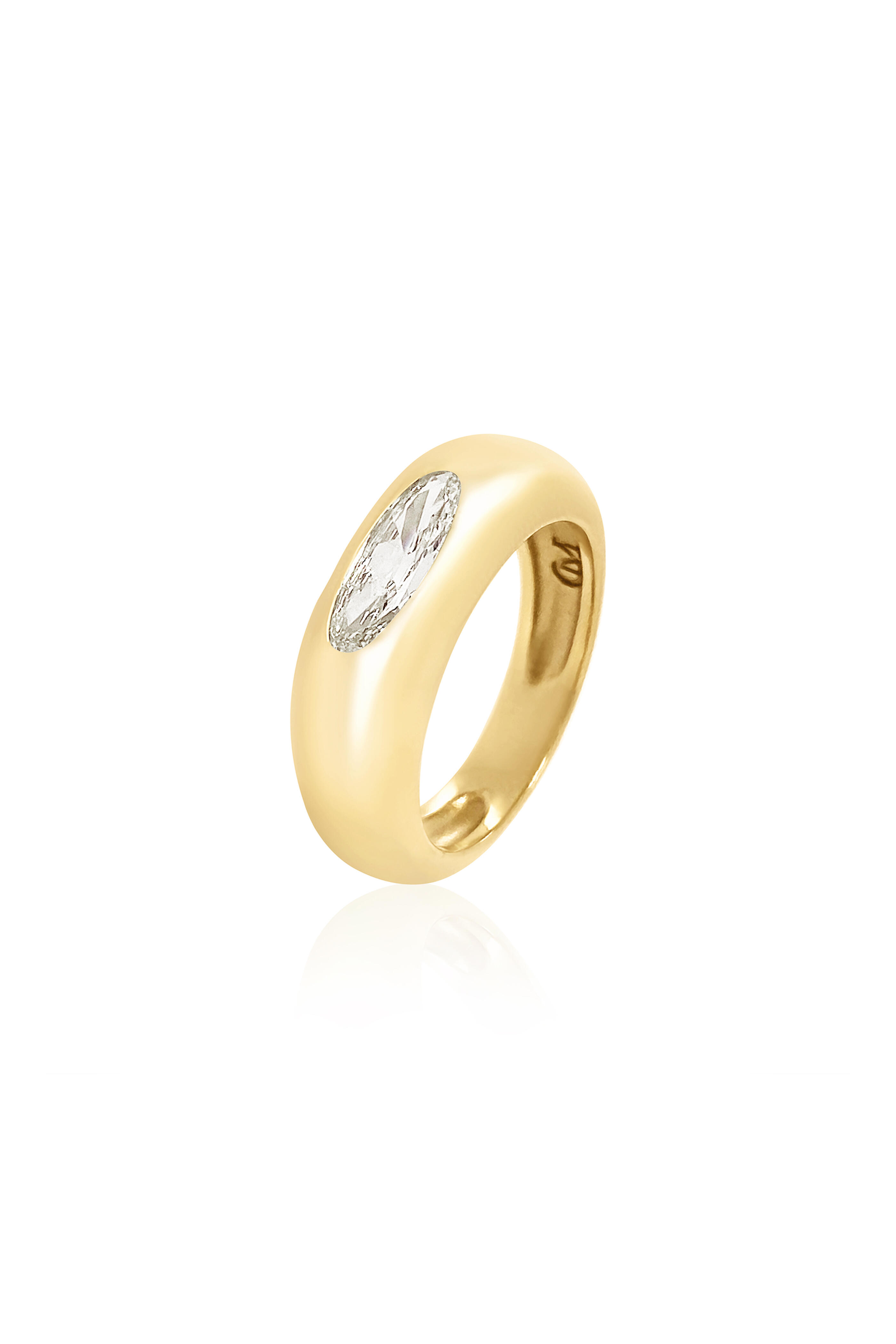 Handcrafted in 14k Yellow Gold. Diamond 0.53 tcw. 7.5mm wide. Size 7.