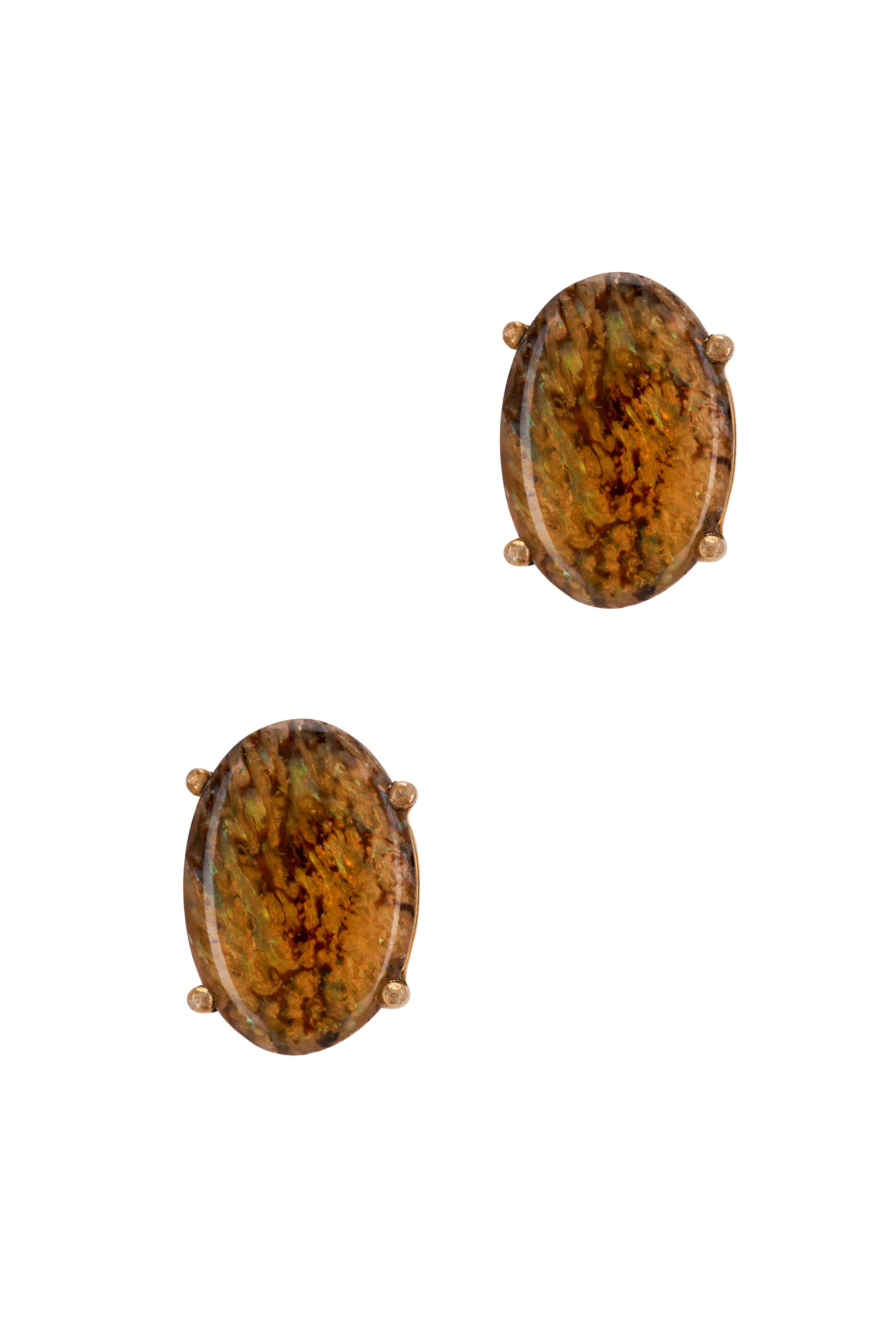 Yellow Abalone. Basket Setting. Post Back. Measures: .50 inches.. Hand-made in New York.