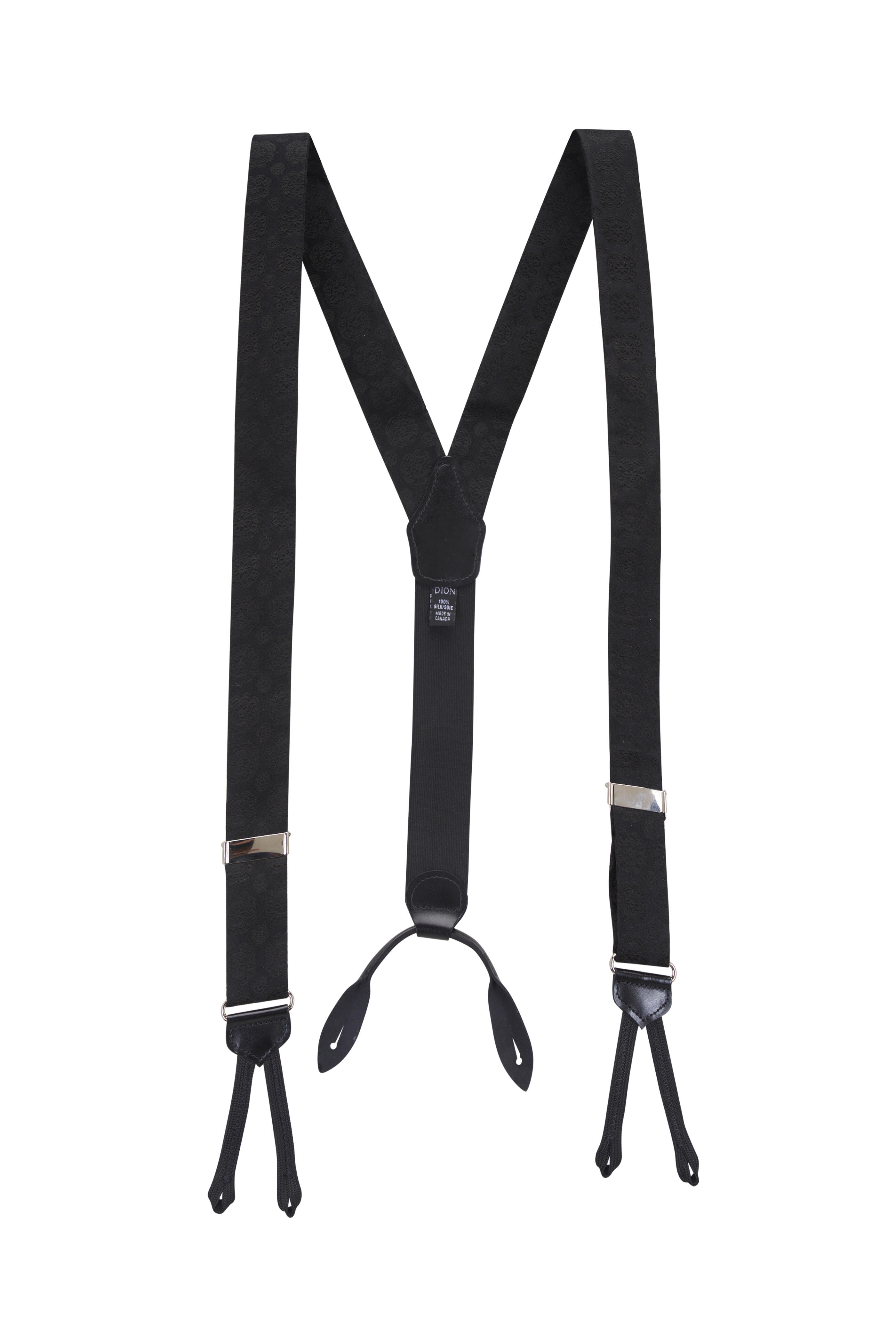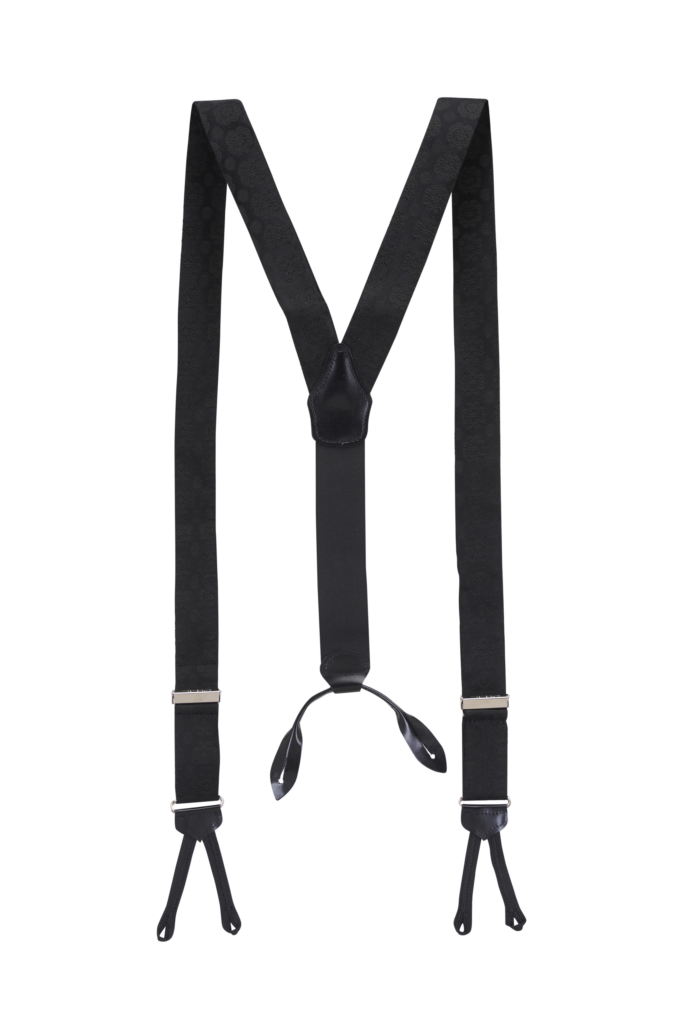 Silk and leather. Spot clean. Medallion print. Adjustable. Made in Canada.