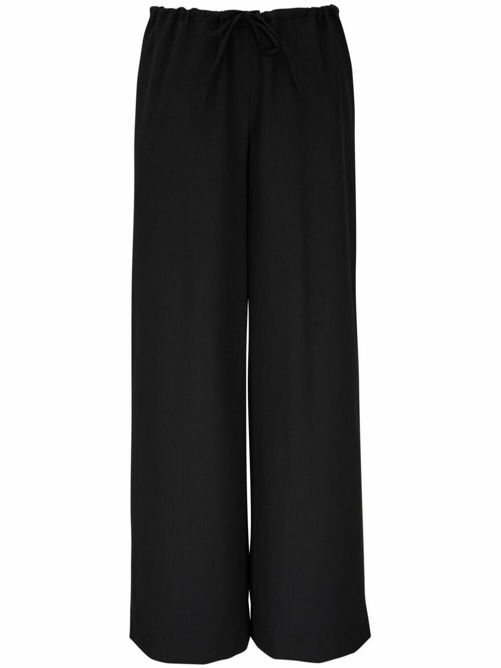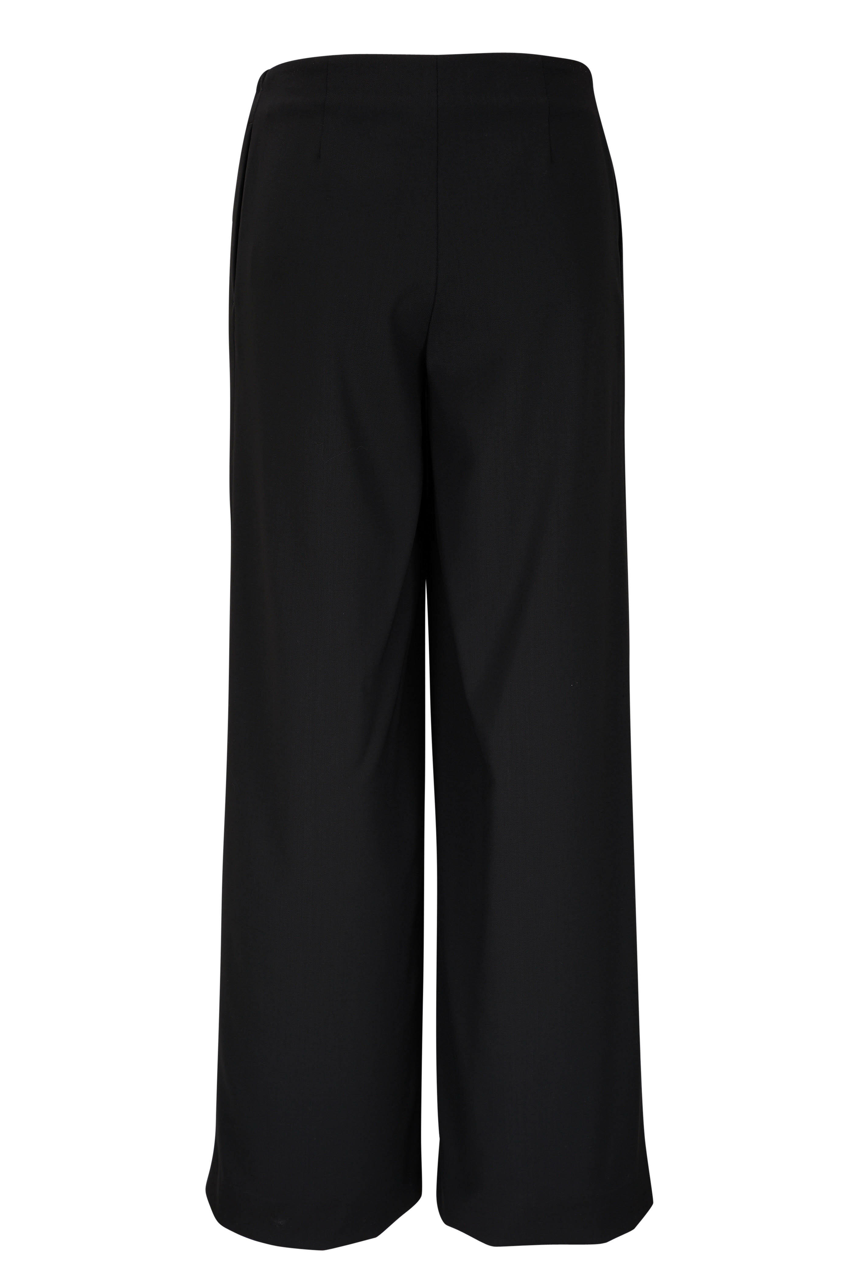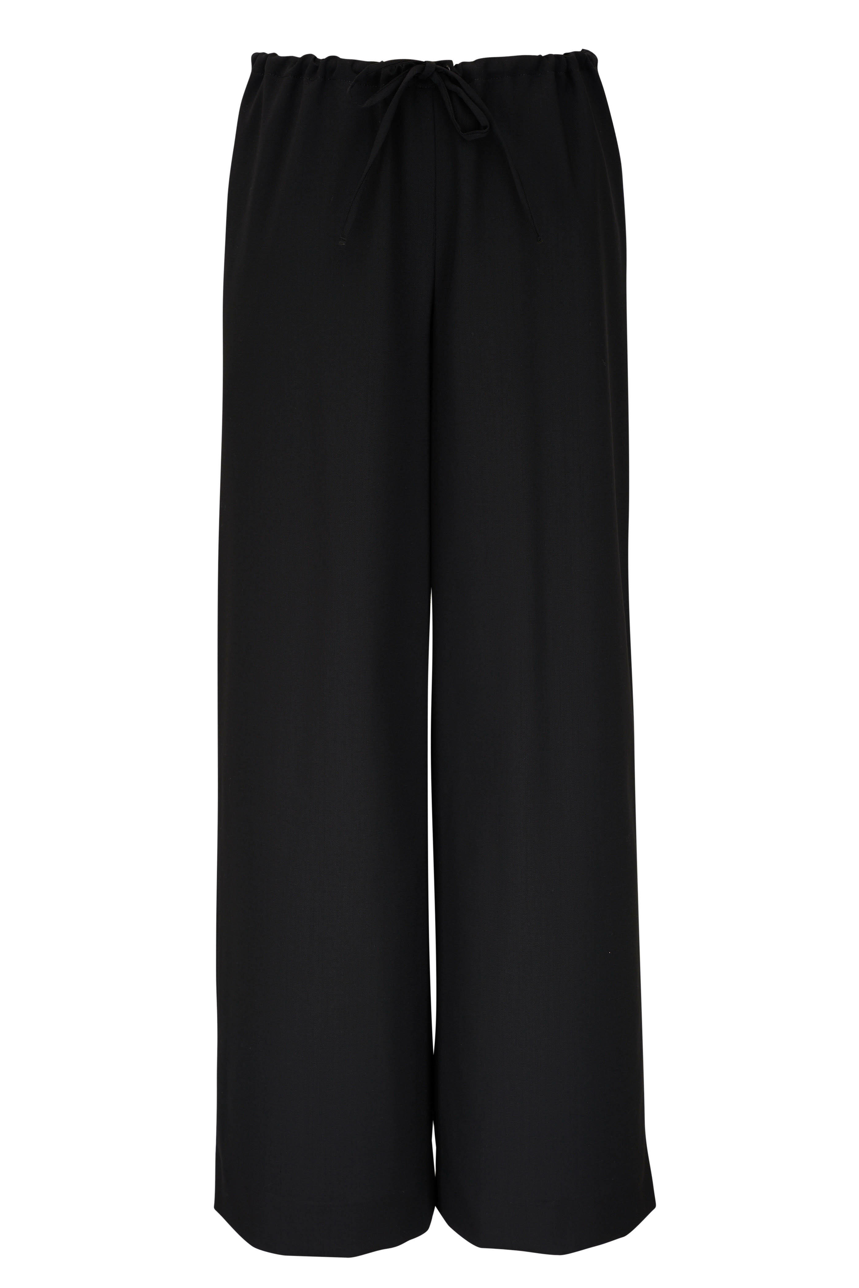 Internal waist drawstring. Pull-on style. Made in the USA. Approx. 29" inseam. 98% wool, 2% elastane. Dry clean.