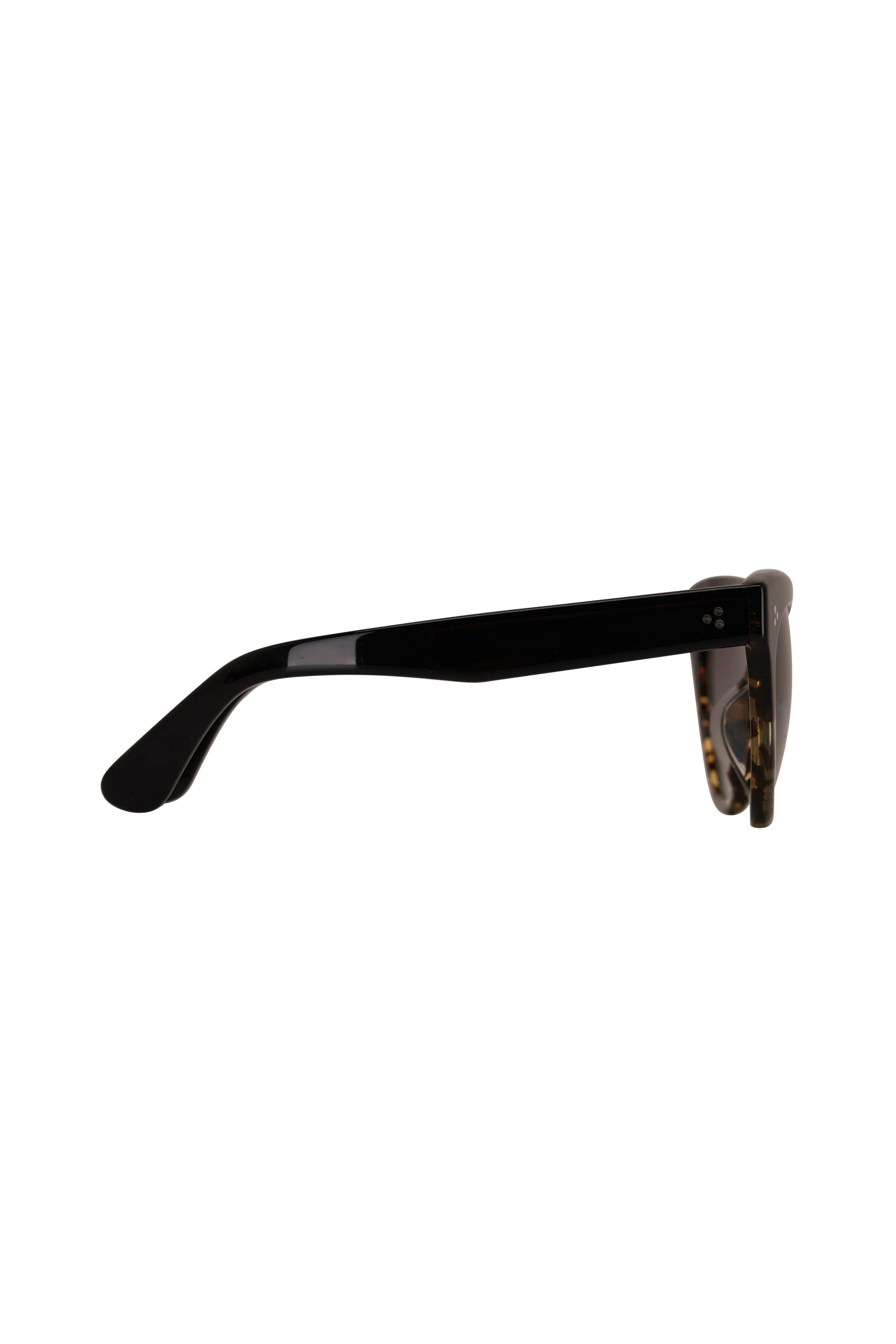 Frame material: acetate. Frame color: black/ dtbk gradient. Frame fit: traditional frame. Lens type: glass. Lens color: gray gradient. Made in Italy. 100% UV protection.