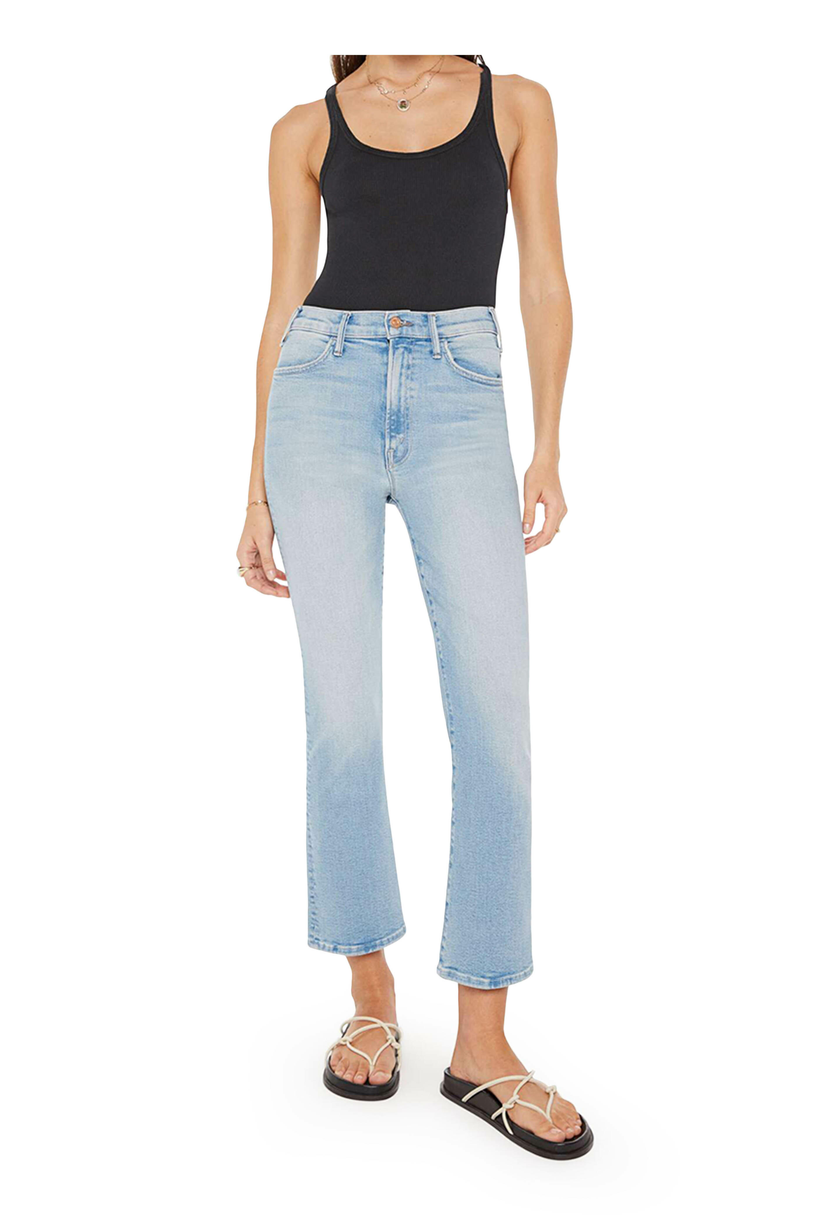 Zip fly with button closure. Five pocket styling. High-low raw edge hem. Made in the USA. 9 3/4" Rise. 31" Inseam. 17 1/2" Leg Opening. 78% cotton, 16% modal, 4% polyester, 2% elastane. Machine wash.