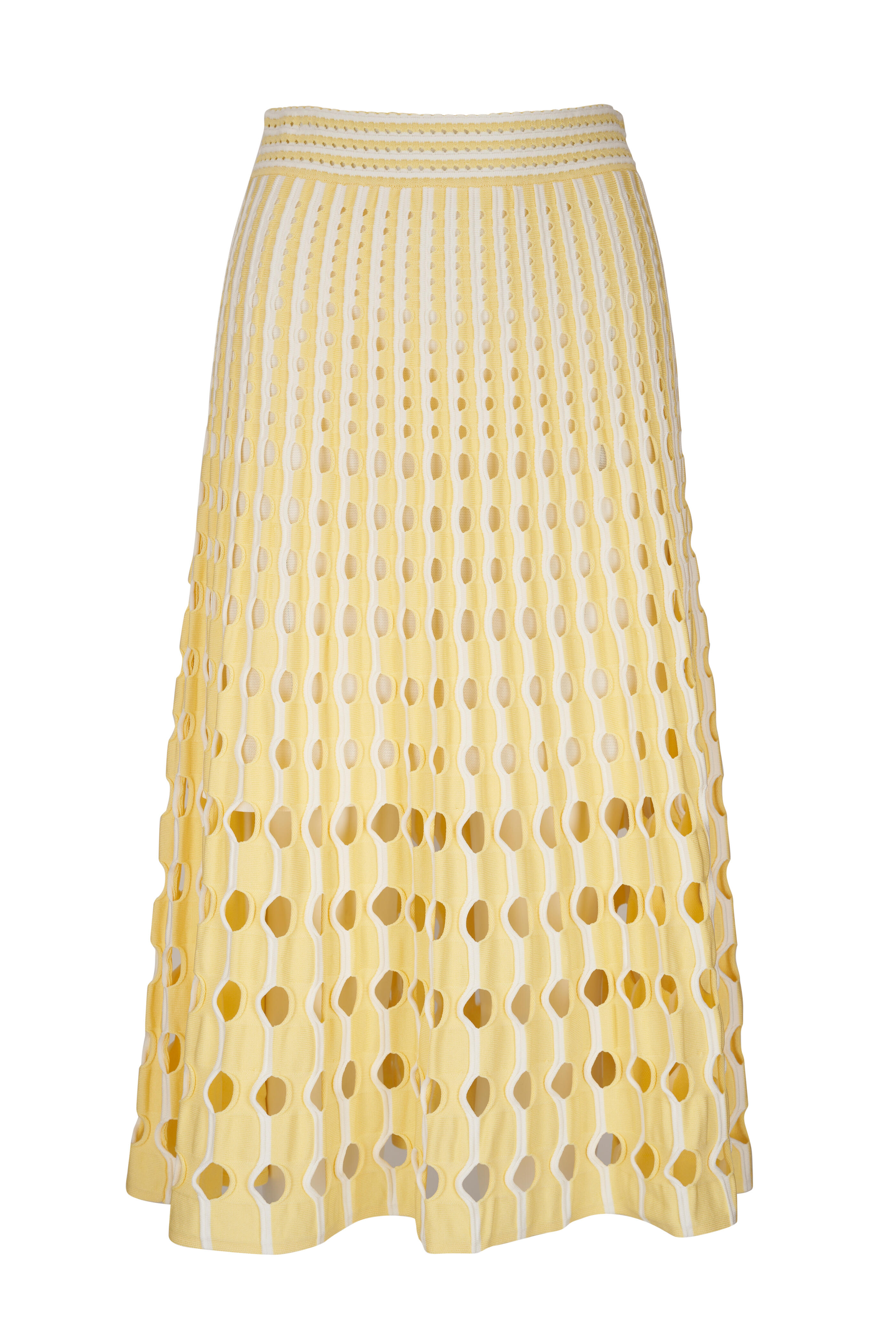 Partial lining. Pull-on style. Banded, elasticized waistband. Imported. A-line silhouette. Approx. 32 ½" length. 83% rayon, 17% polyester. Dry clean.