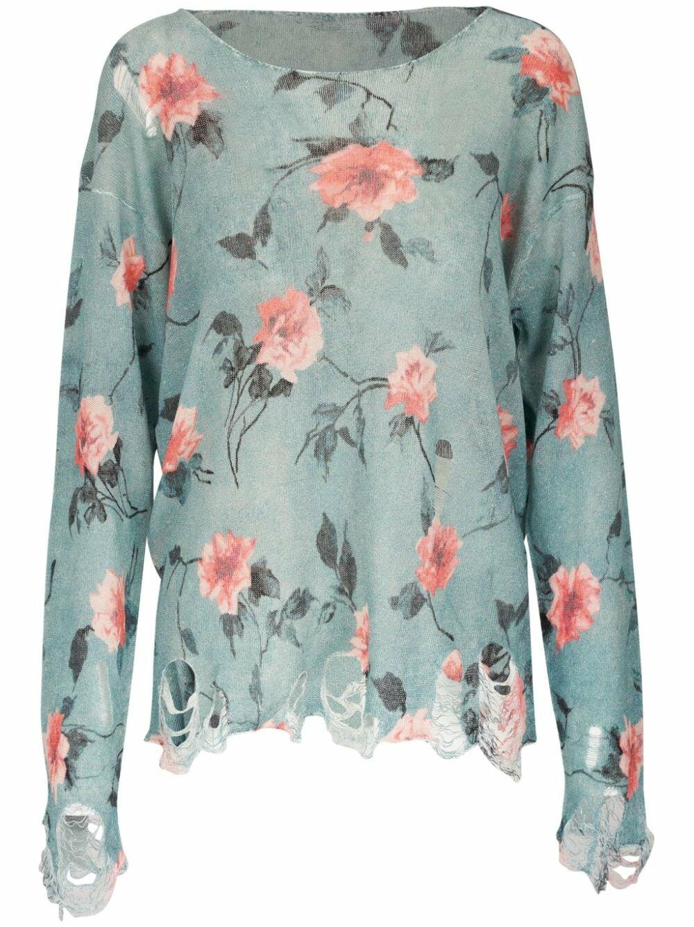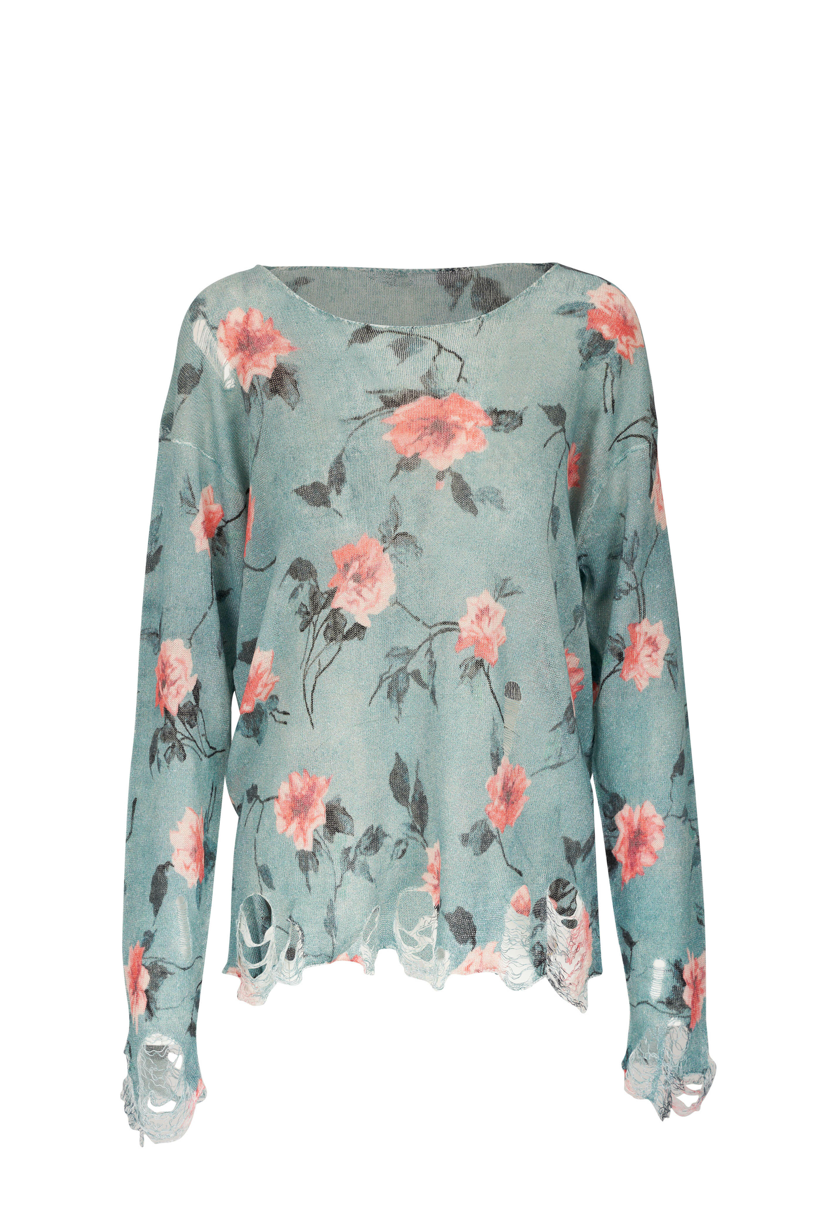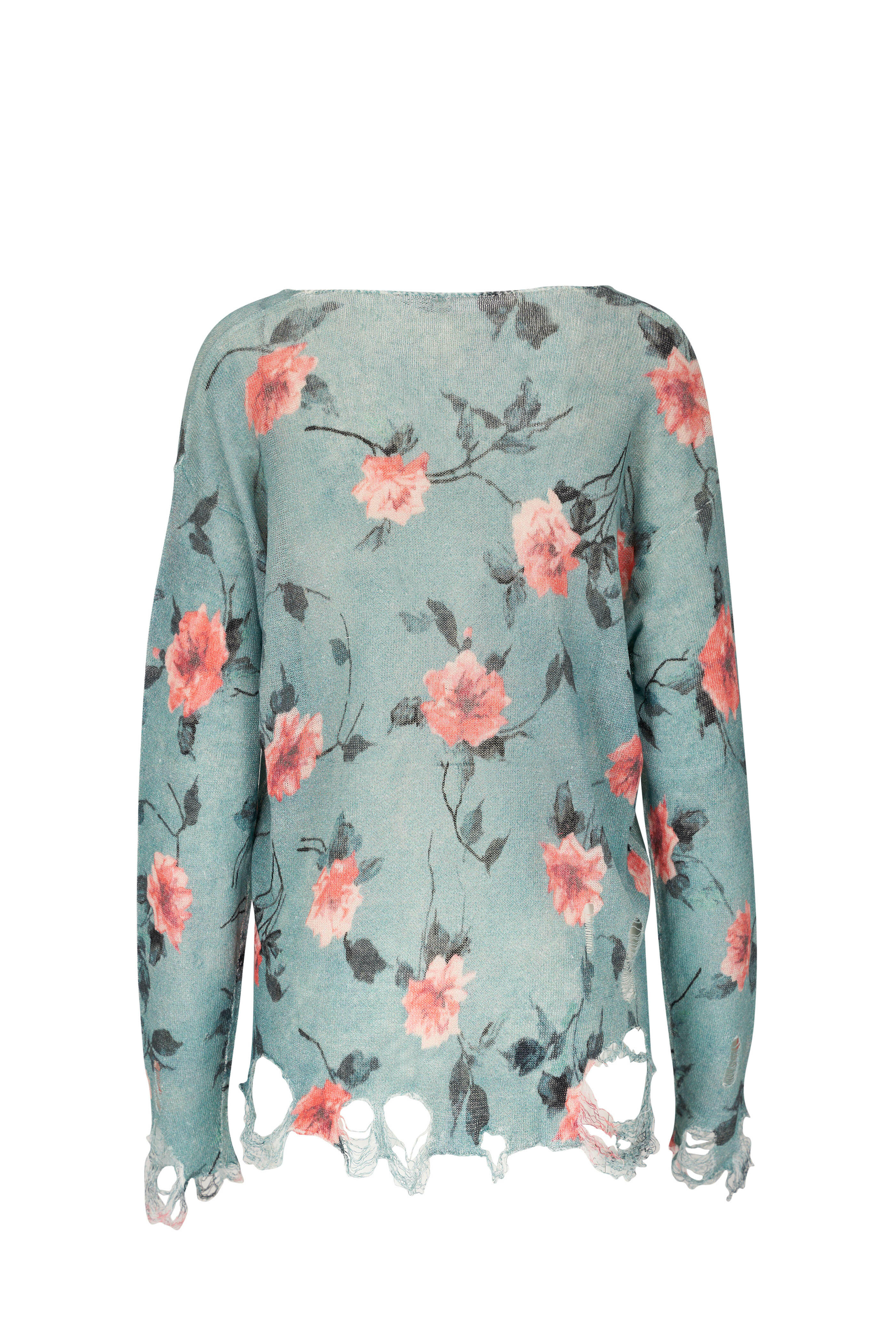 • R13 - Boyfriend Blue Floral Distressed Linen Sweater