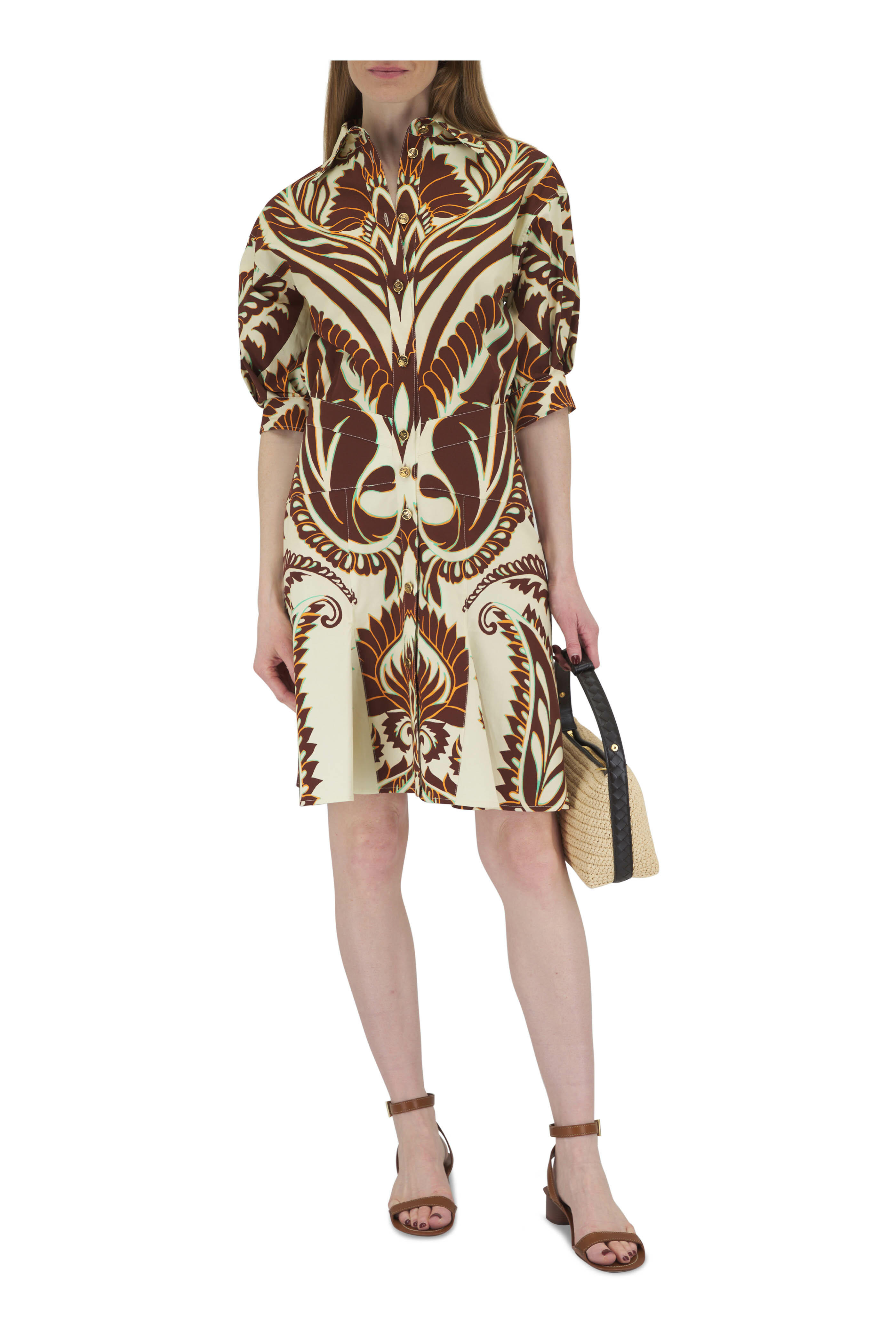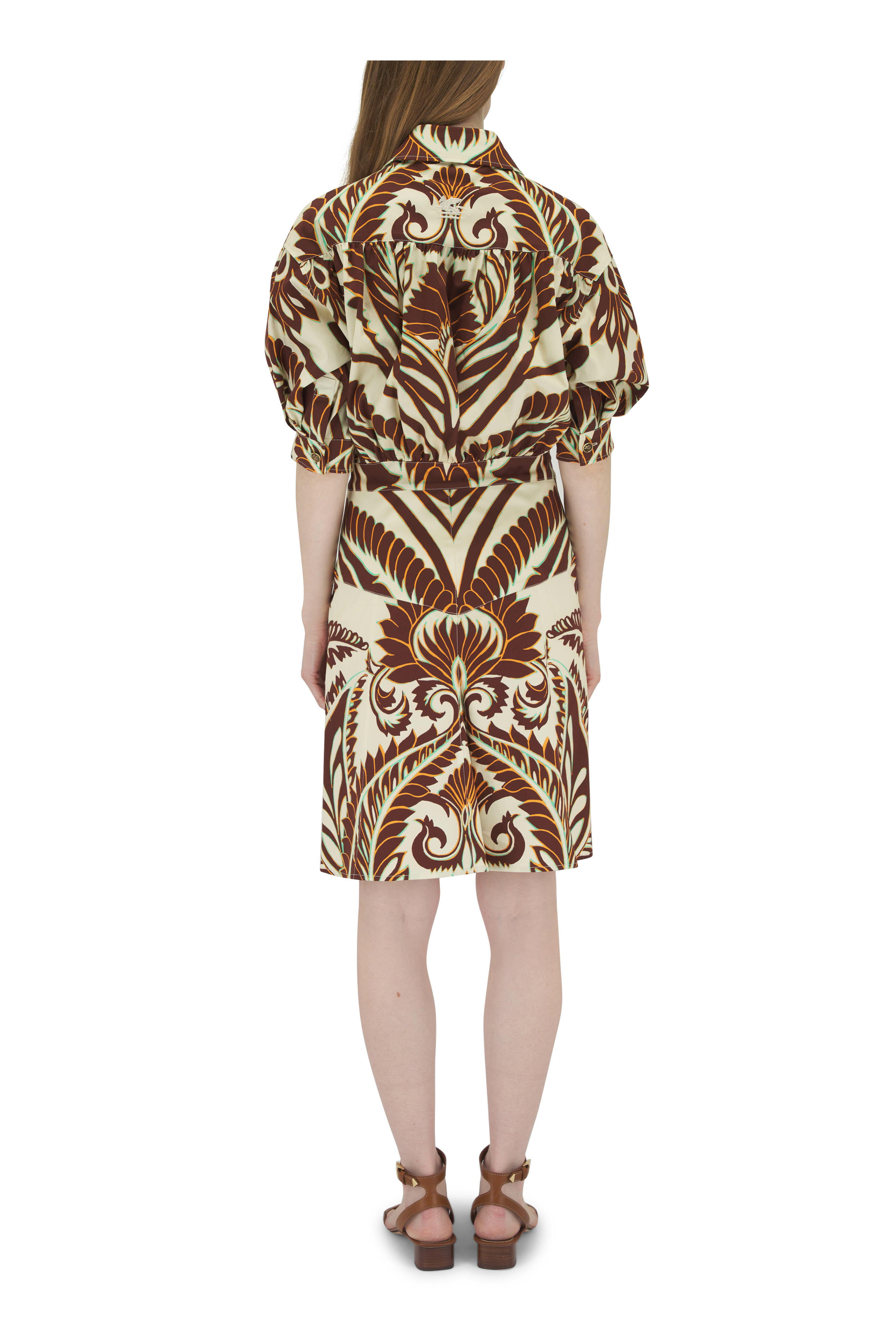 Brown & Green Printed Stretch Cotton Dress