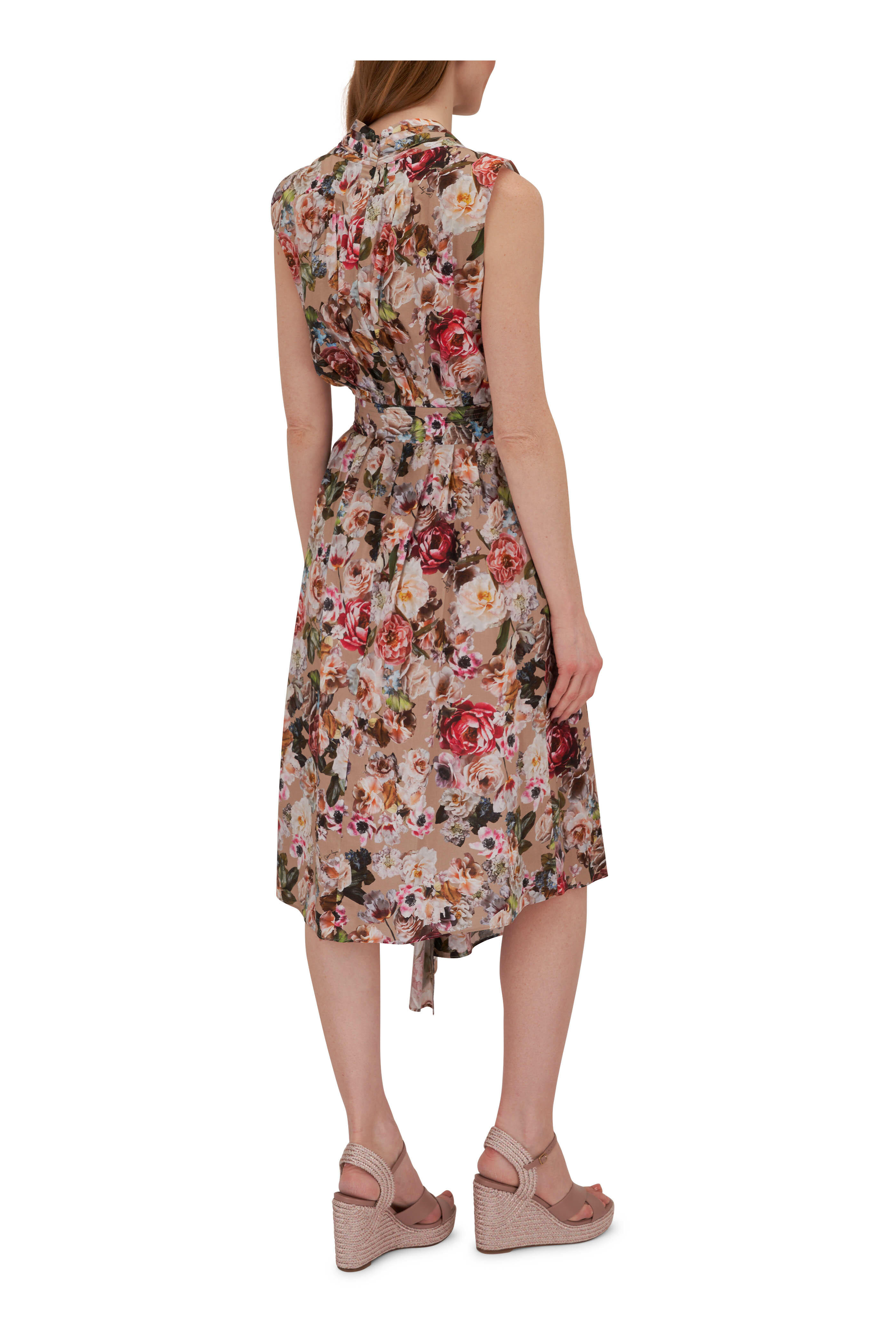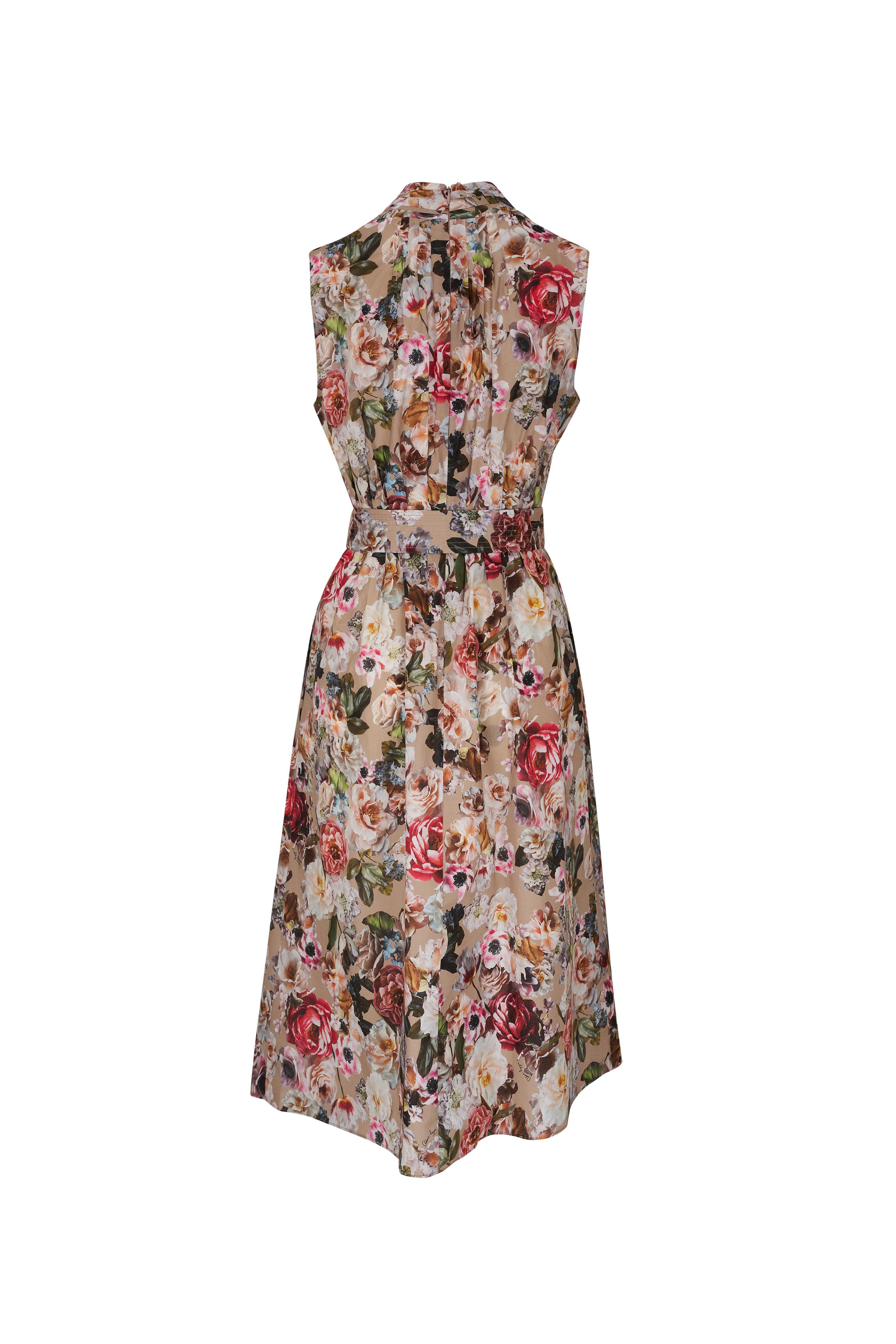 - Concealed back zip; Self-tie waist belt