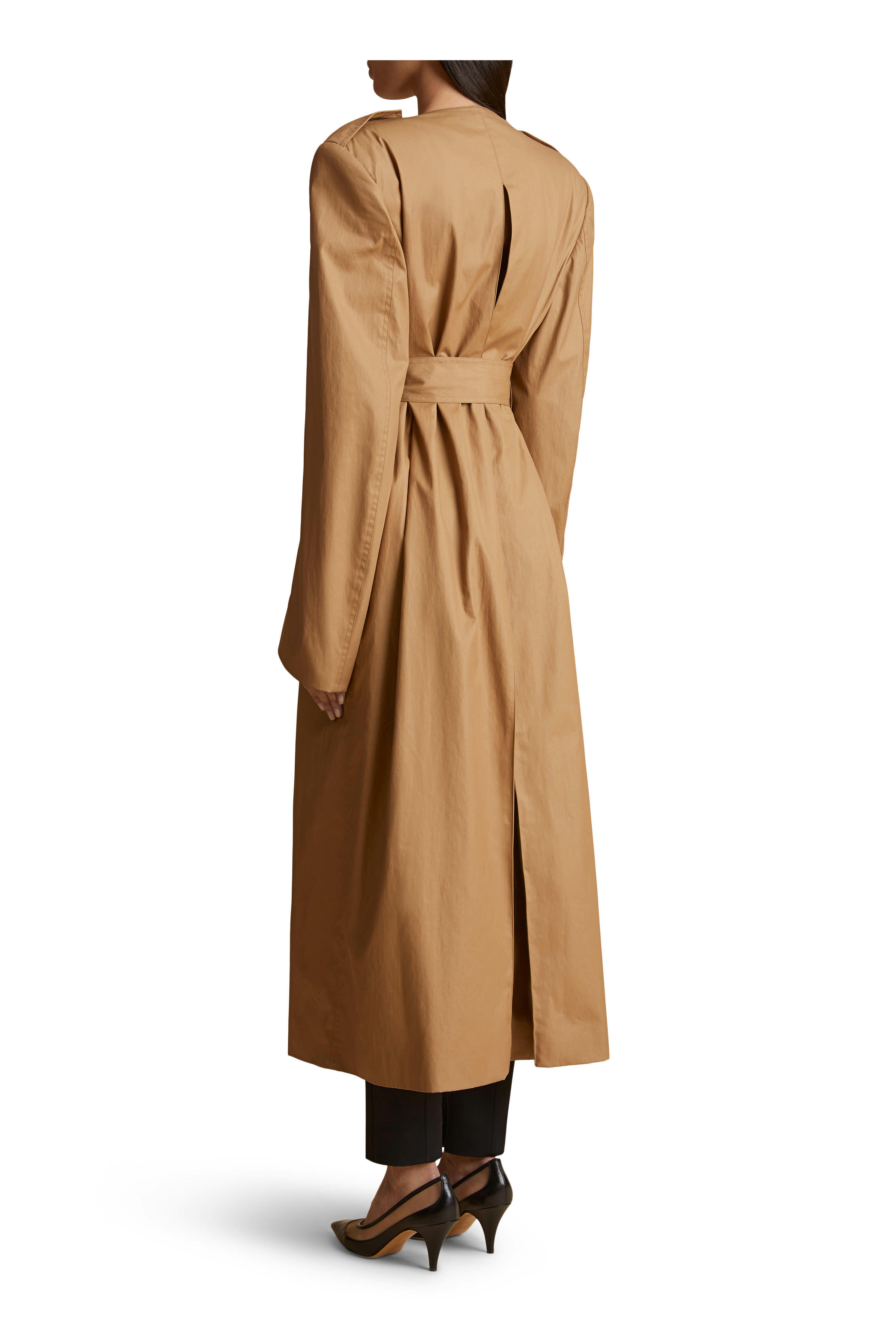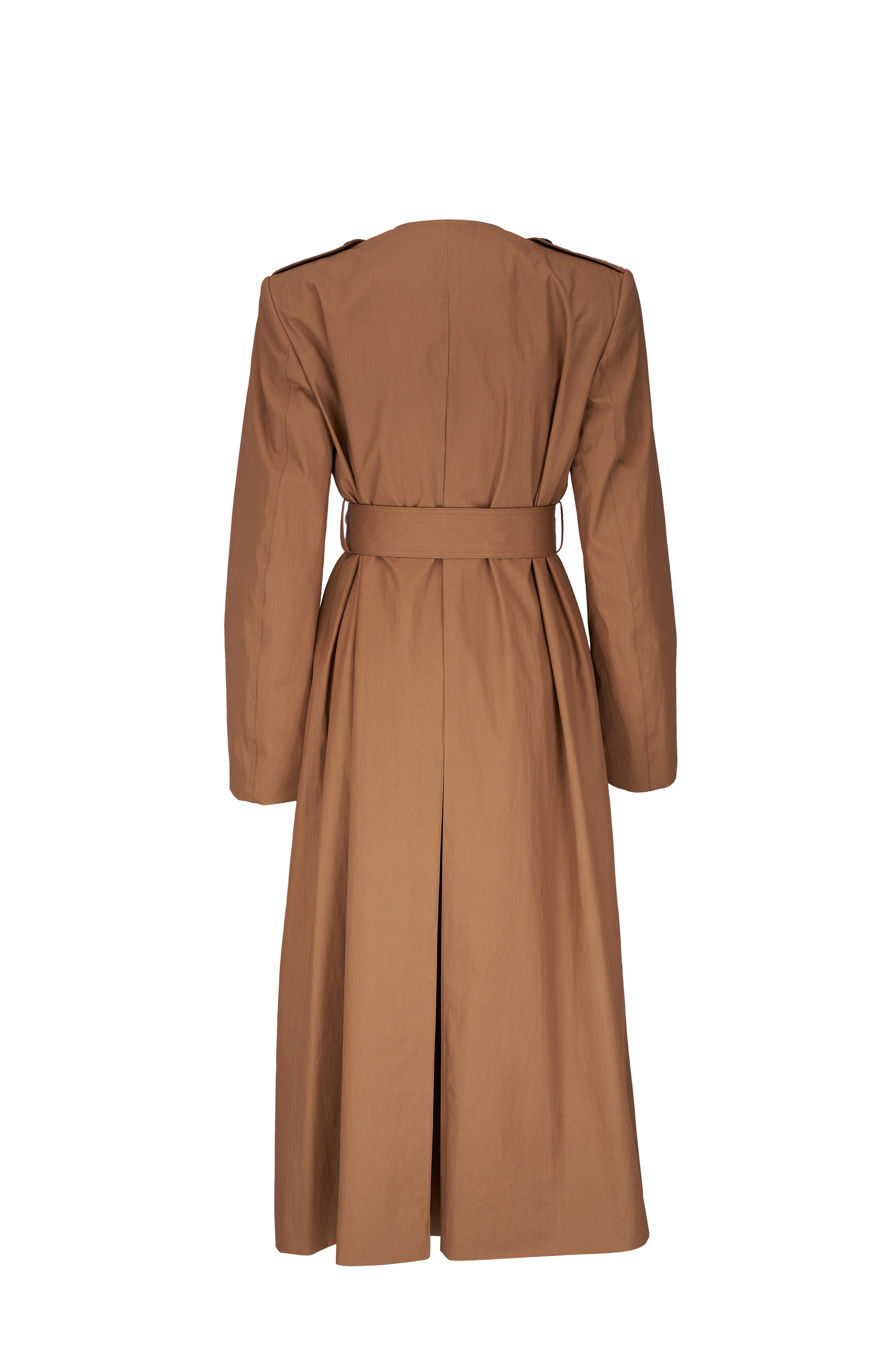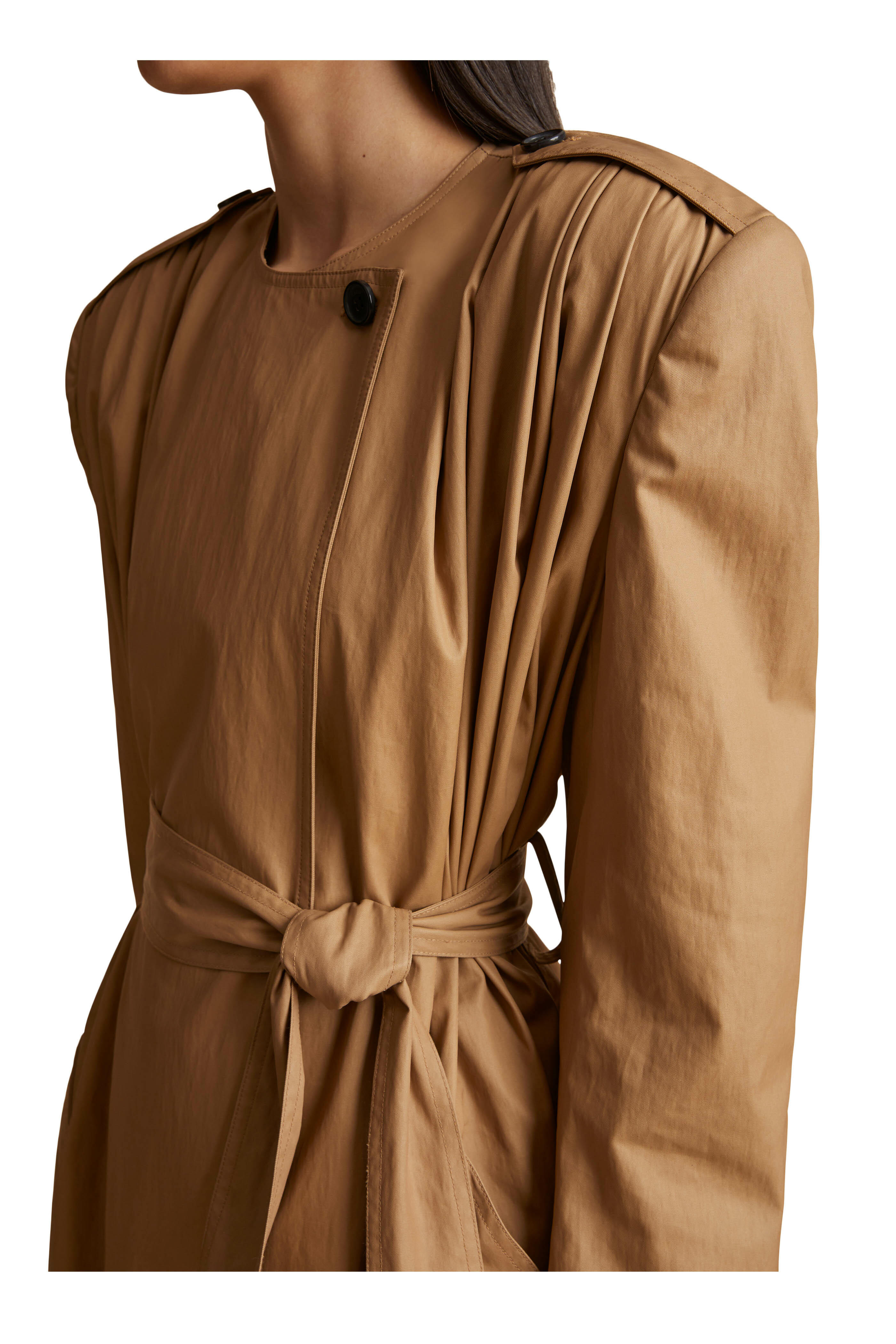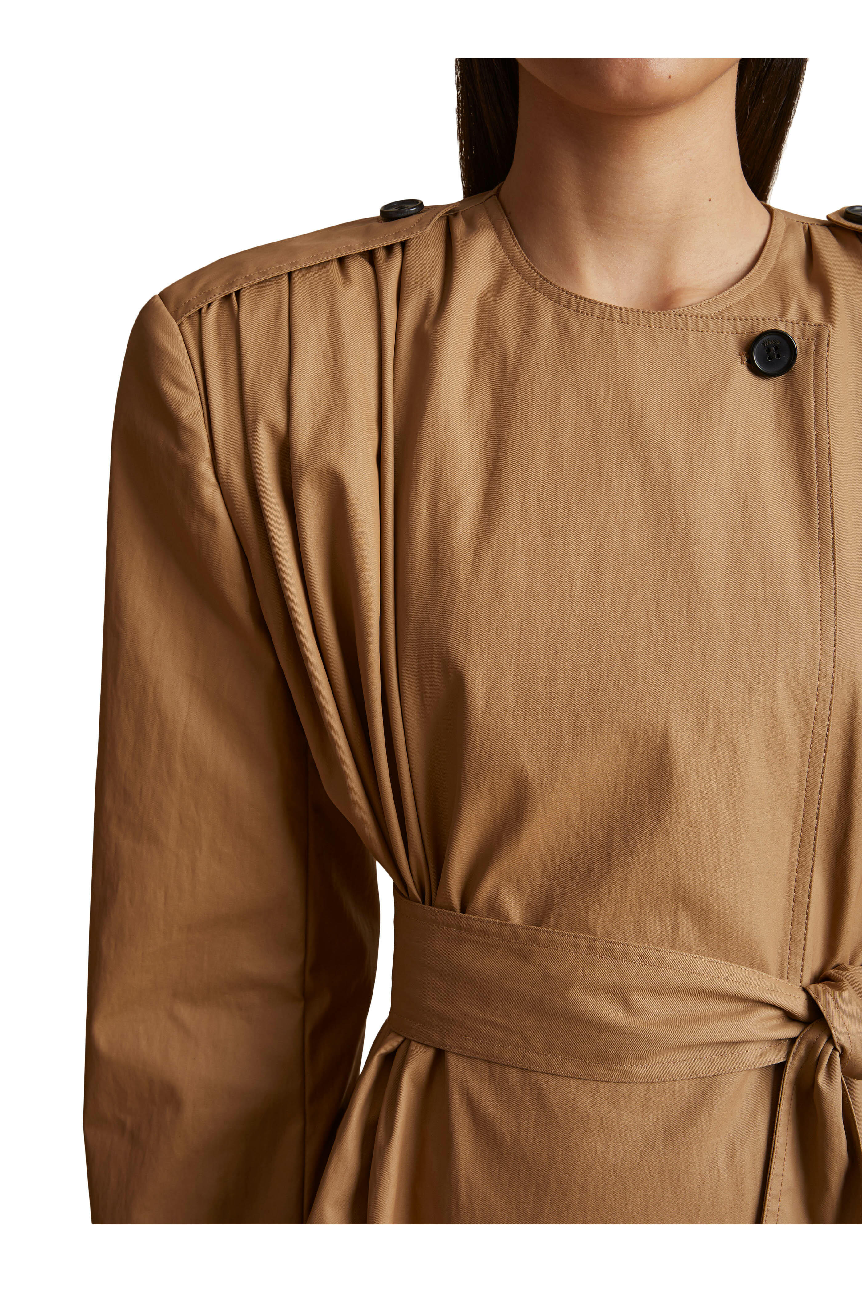 Round neckline. Single button closure. Self-covered sash tie belt. Shoulder epulates. Lower waist pockets. Made in Italy. Designed for an oversized fit. Recommended to take your normal size, or size down for a closer fit.. Falls just above the ankles.. 69% cotton, 31% polyamide. Dry clean.
