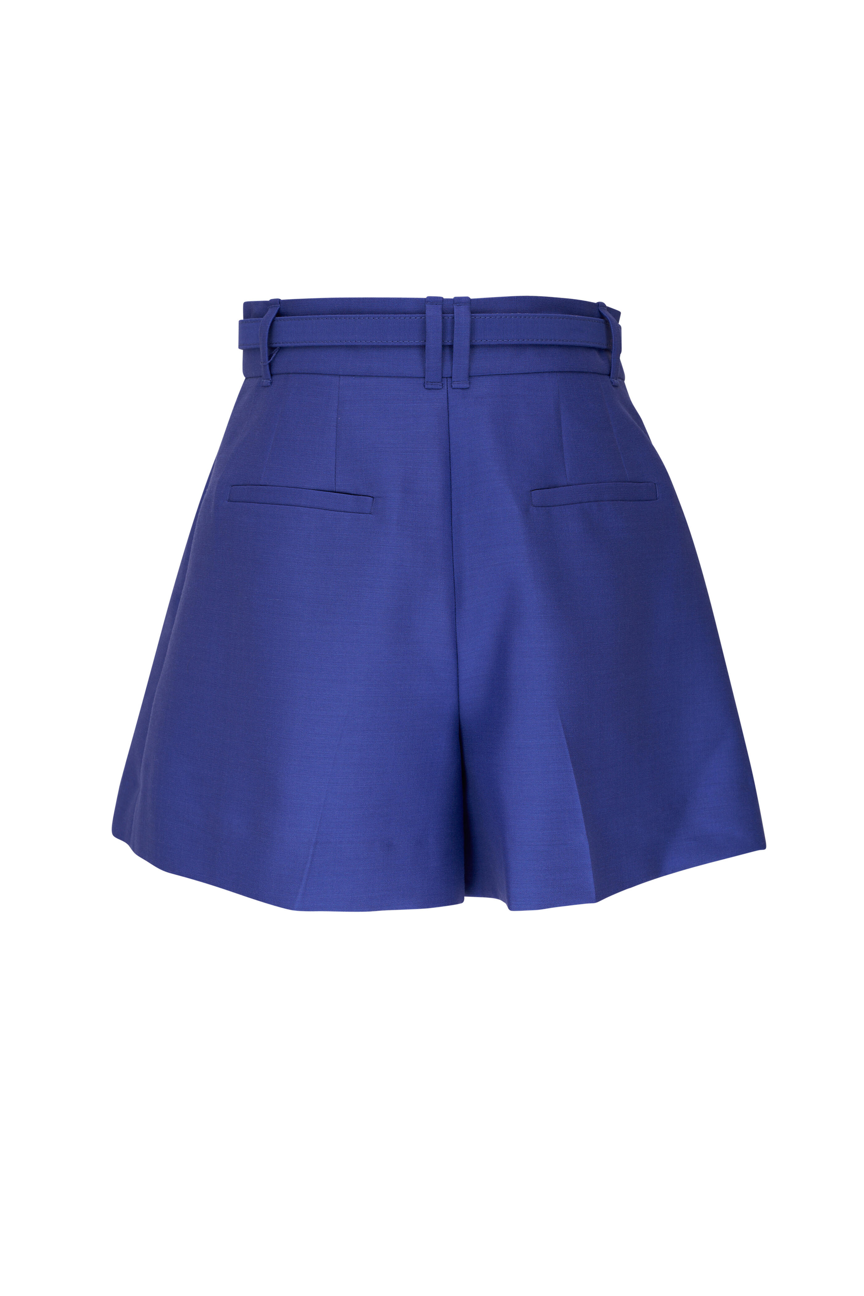 Zip and hook closure. Removable and adjustable belt. Pleated. Imported. Tailored fit. 92% wool, 8% silk. Dry clean.